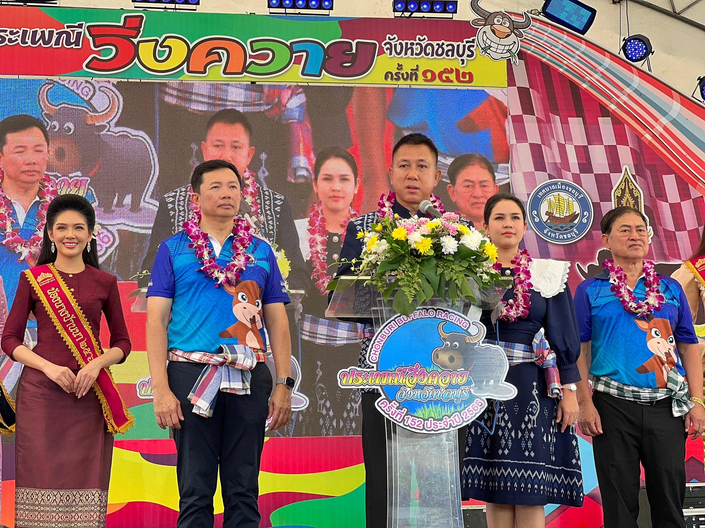 เมื่อเวลา 08.30น. วันที่ 28 ตุลาคม 2566 บริเวณหน้าศาลากลางจังหวัดชลบุรีนายธวัชชัย ศรีทอง ผู้ว่าราชการจังหวัดชลบุรี นายวิทยา คุณปลื้ม นายกอบจ. ชลบุรี นายสุติกรณ์ จำเริญพานิช นายกเทศมนตรีเทศบาลเมืองชลบุรี พร้อมข้าราชการ องค์การปกครองท้องถิ่น เทศบาล อบต.ในพื้นที่11 อำเภอ ในจังหวัดชลบุรี ได้ร่วมขบวนแห่เกวียนกัณฑ์ รอบตลาดเขตเทศบาลเมืองชลบุรี โดยใช้ควายเทียมเกวียน เพื่อเป็นการแสดงความกตัญญูรู้คุณต่อควาย ที่เป็นสัตว์มีบุญคุณต่อชาวนาชาวไร่ อีกทั้งเป็นประเพณีที่สืขทอดกันมายาวนานกว่า 100 ปี และยังเป็นการส่งเสริมการท่องเที่ยวของจังหวัดชลบุรี