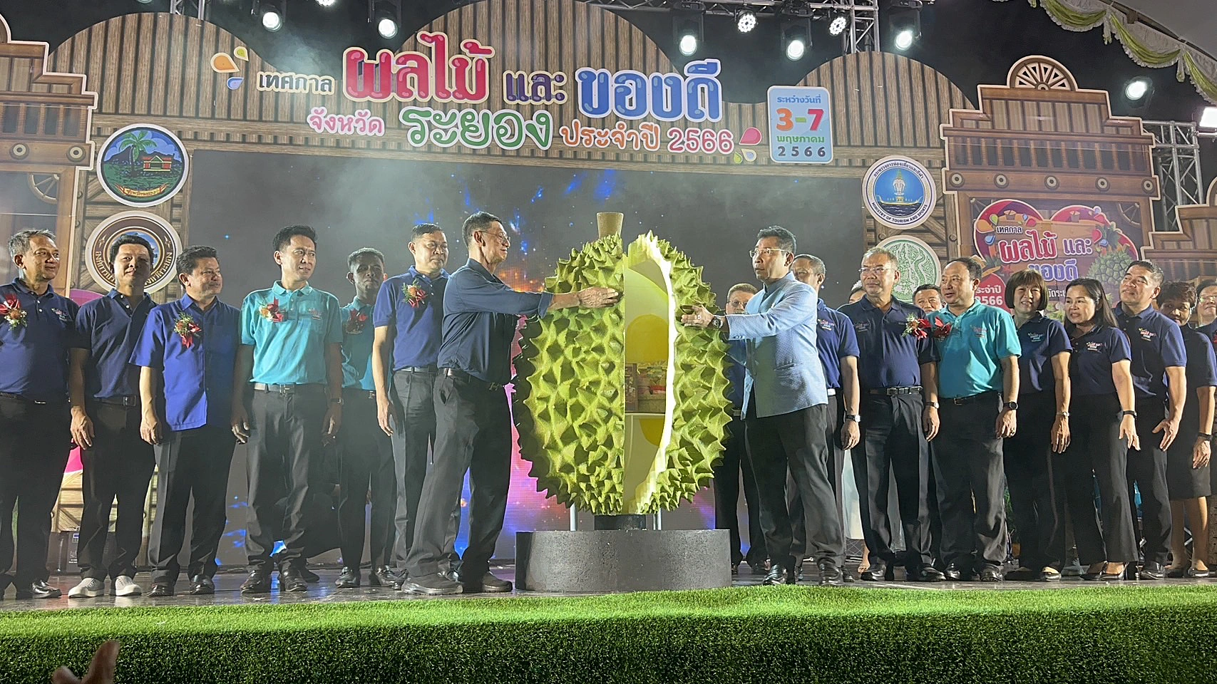 เมื่อวันที่ 3 พ.ค.2566 ที่สนามกีฬากลางจังหวัดระยอง ต.เนินพระ อ.เมืองระยอง จ.ระยอง นายไตรภพ วงศ์ไตรรัตน์ ผวจ.ระยอง เป็นประธานเปิดงานเทศกาลผลไม้และของดีจังหวัดระยอง ประจำปี 2566 มีว่าที่ ร.ต.พิรุณ เหมะรักษ์ นายอนันต์ นาคนิยม นายสุพจน์ ต่ออาจหาญ รอง ผวจ.ระยอง นายปิยะ ปิตุเตชะ นายก อบจ.ระยอง นายประสานต์ พฤกษชาติ รองนายก อบจ.ระยอง หน.ส่วนราชการ ผู้นำ อปท.และประชาชนในพื้นที่ ร่วมงานจำนวนมาก ซึ่งจัดขึ้นระหว่างวันที่ 3-7 พ.ค.นี้ ที่สนามกีฬากลางจังหวัดระยอง ต.เนินพระ อ.เมืองระยอง
