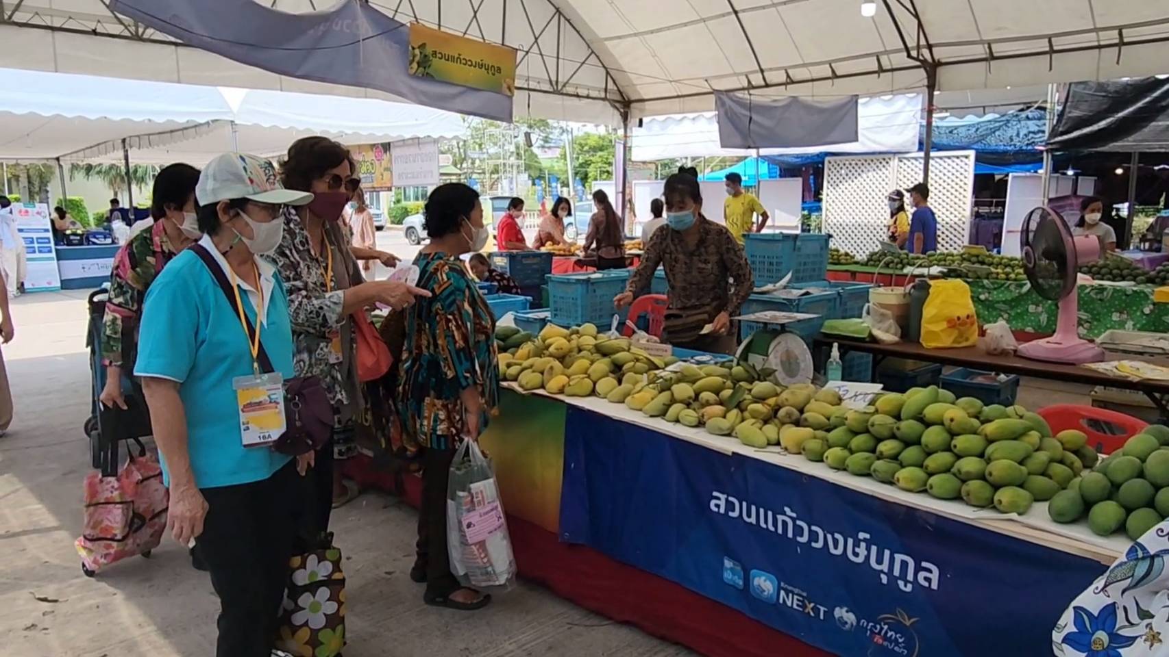 โดยช้อปและชมมะม่วงขึ้นชื่อหลากหลายสายพันธุ์ของจังหวัดฉะเชิงเทรา ซึ่งเป็นผลิตผลคุณภาพดี เกรดส่งออก ที่มีรสชาติเฉพาะจากทำเลที่ตั้งของแหล่งเพาะปลูกเป็นเมืองสามน้ำ คือ น้ำจืด น้ำเค็ม และน้ำกร่อย รวมถึงสินค้าทางการเกษตรอื่นๆอีกมากมาย ก่อนที่จะเดินทางไปยังตลาดบ้านใหม่ 100 ปี ตลาดเก่าแก่แห่งจังหวัดฉะเชิงเทรา และเดินทางไปยังวัดวีระโชติธรรมารามต่อไป