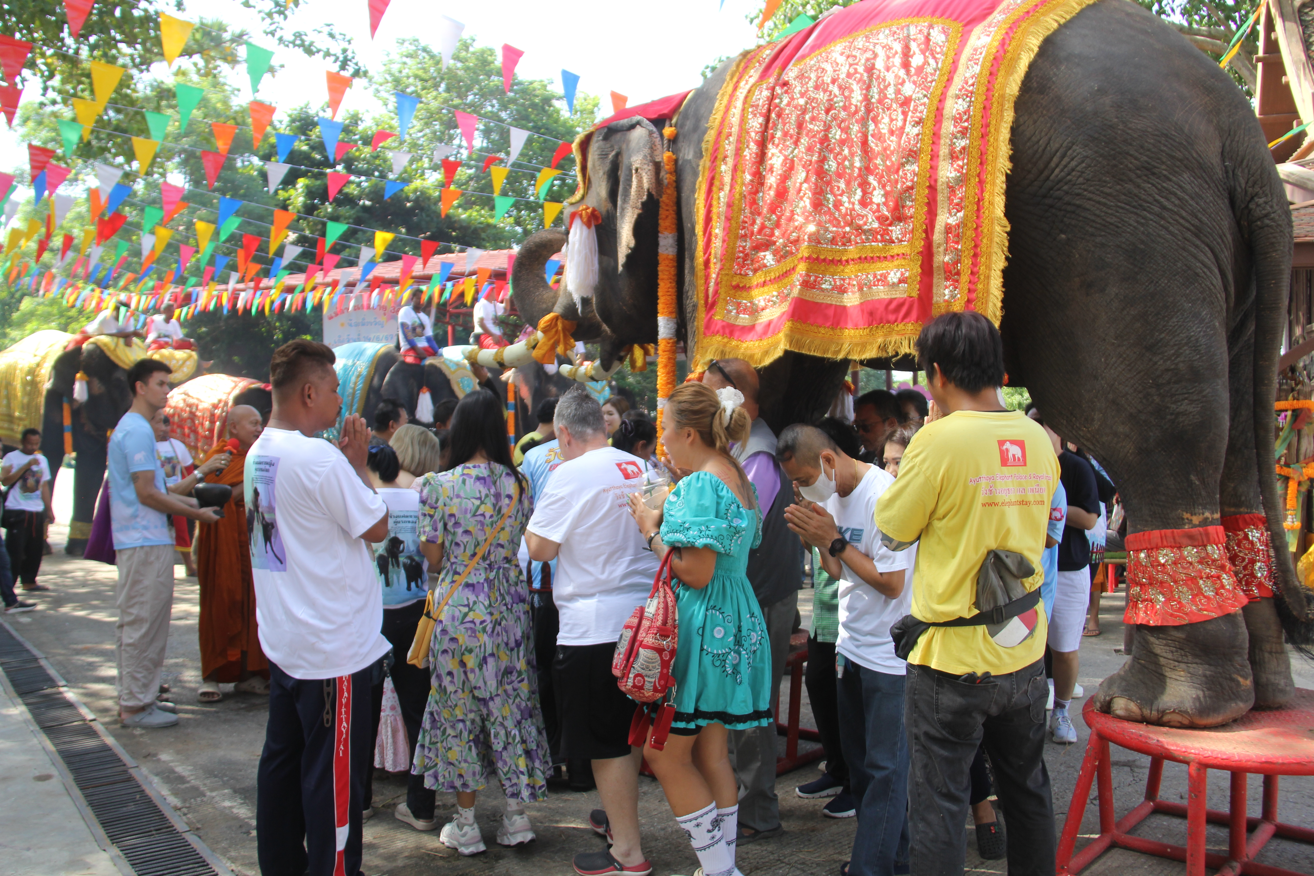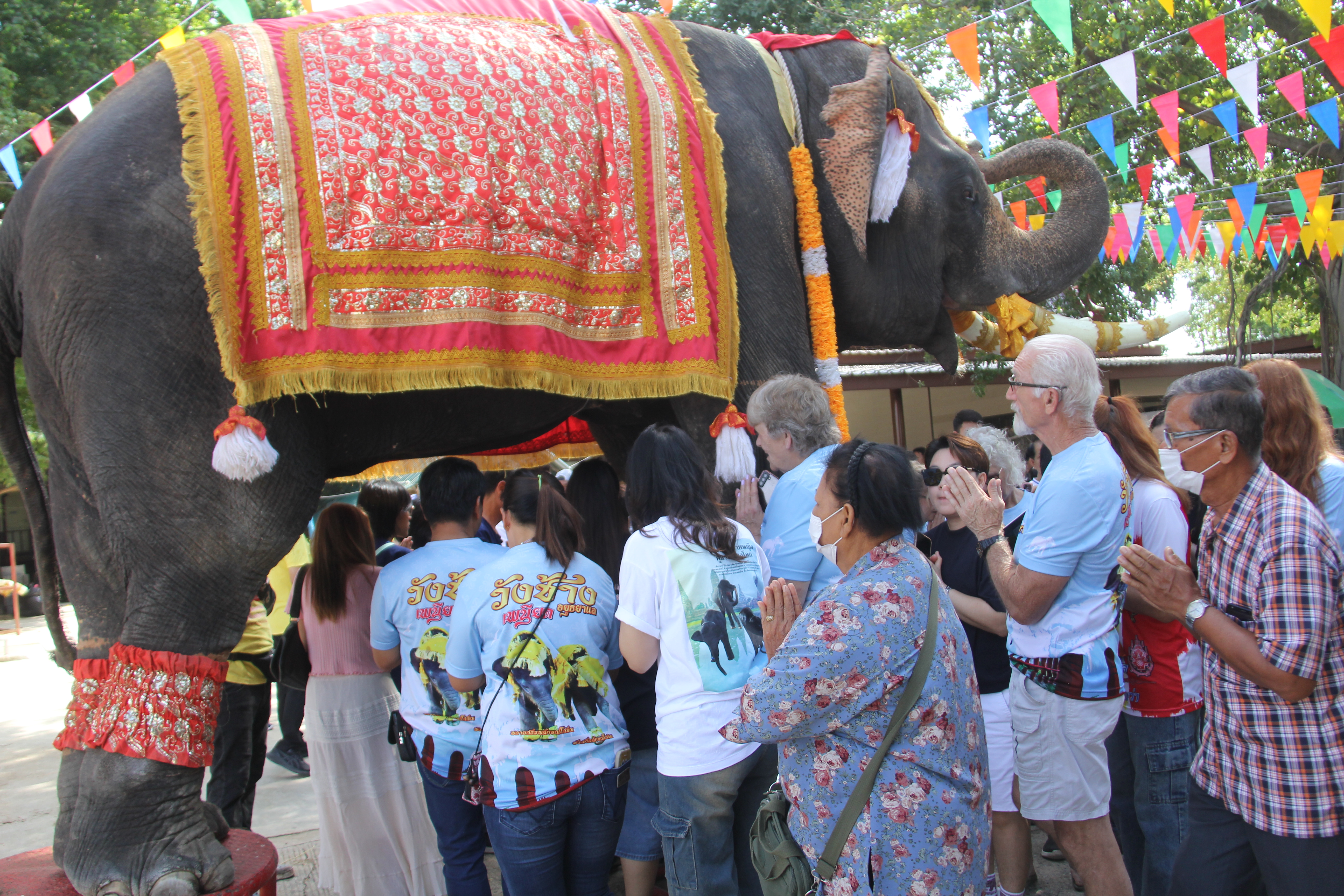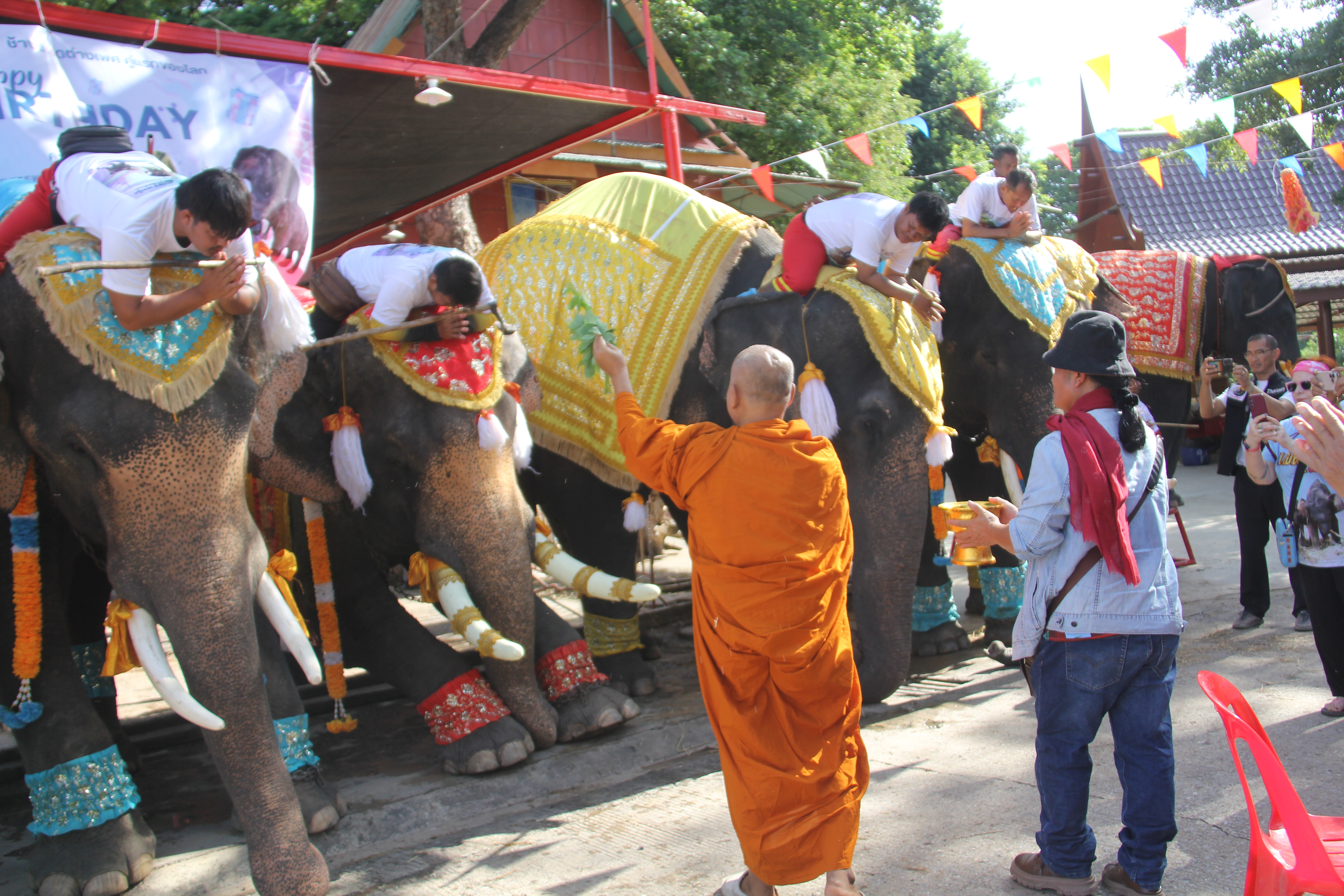 วังช้างอยุธยาแลเพนียด ทำบุญครบรอบ 1 ปีให้กับช้างแฝดคู่ประวัติศาสตร์ เพศผู้และเพศเมียคู่แรกของโลก พลายสรรพลักษณ์โสภณ พังสรรพลักษณ์โสพิศ จากแม่พังจามจุรี ณ หมู่บ้านช้างอยุธยาเพนียดหลวง