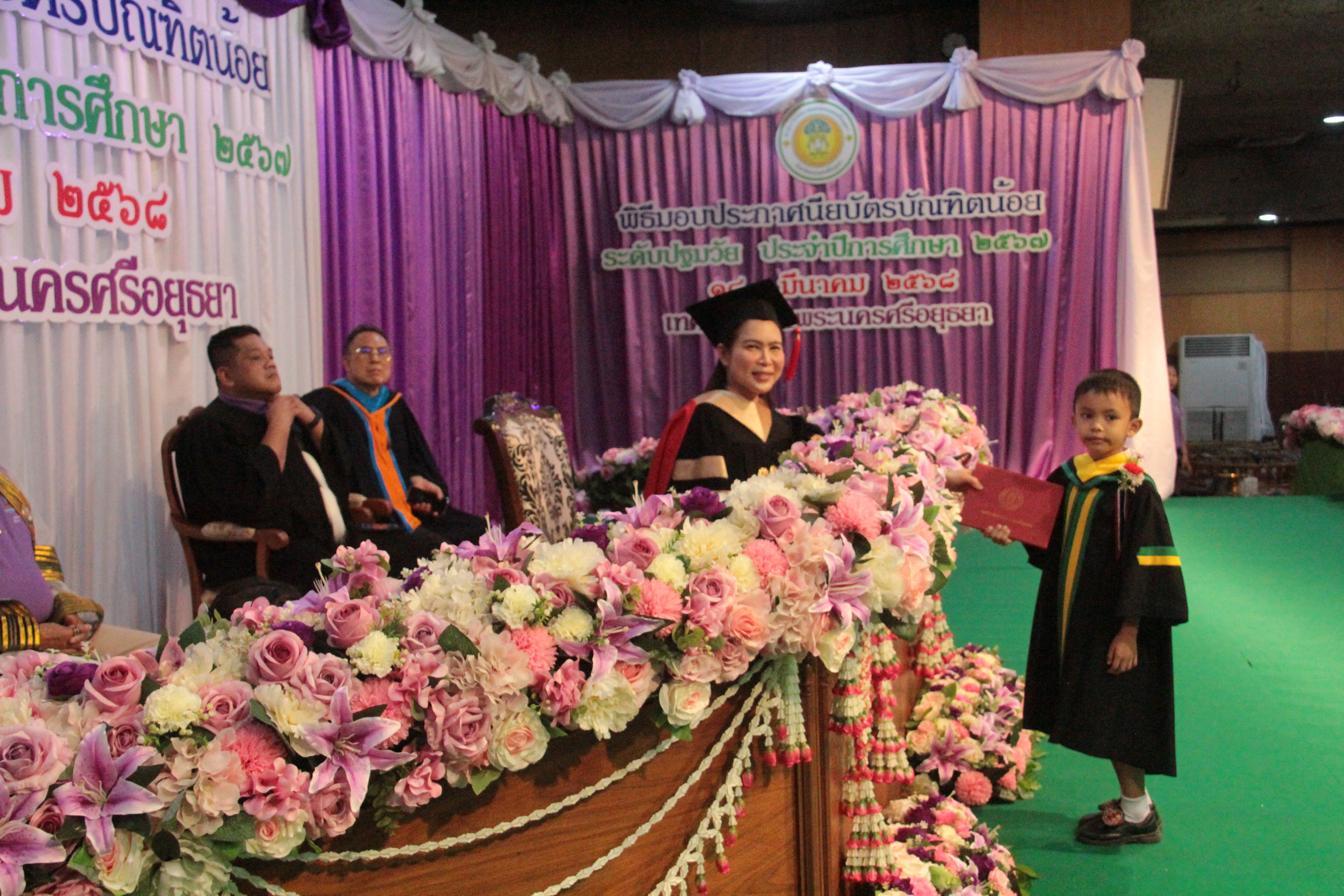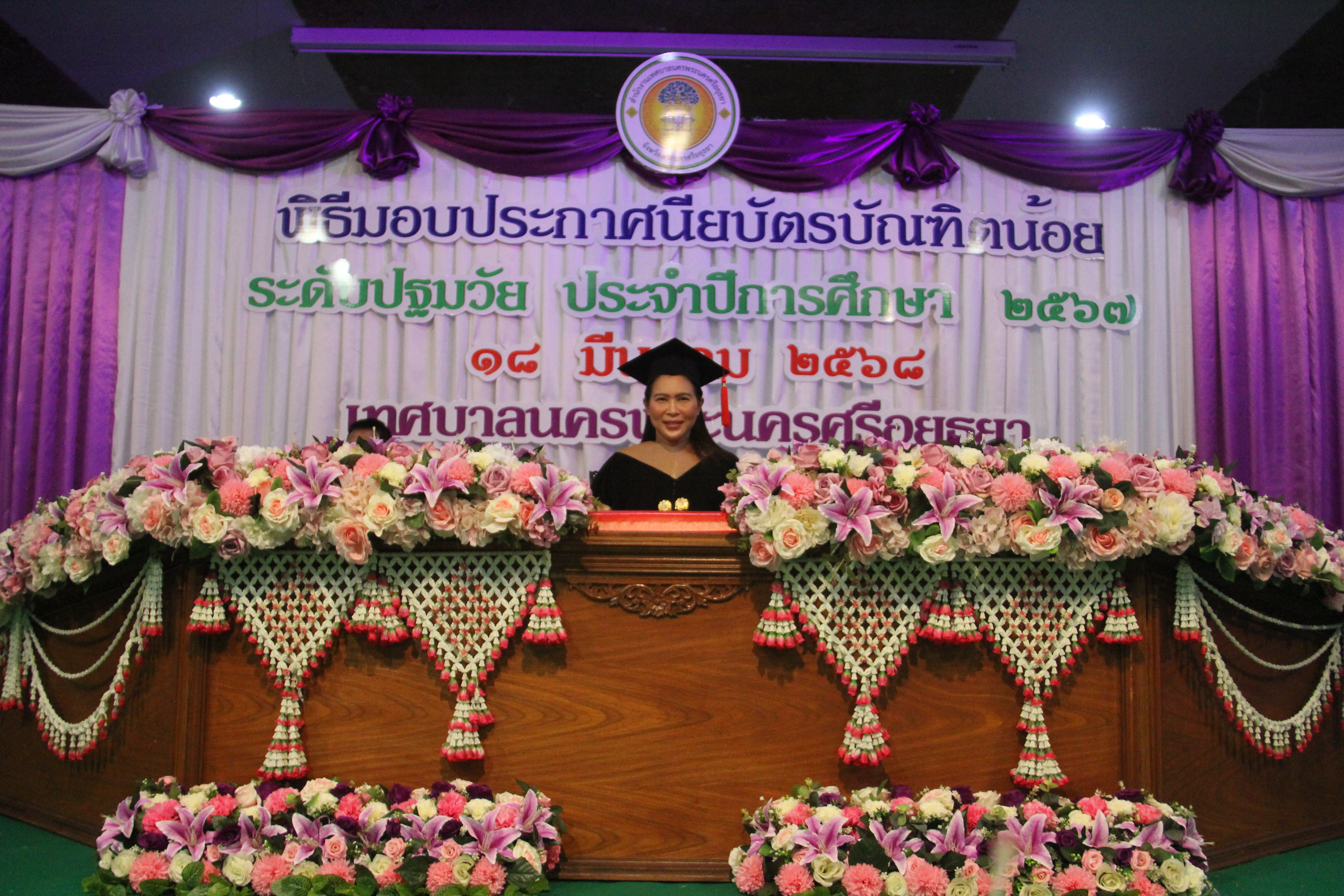 วันที่ 18 มีนาคม 2568 ที่ หอประชุมมหาวิทยาลัยราชภัฎพระนครศรีอยุธยา จ.พระนครศรีอยุธยา ว่าที่ร้อยตรี ดร.สมทรง สรรพโกศลกุล นายกเทศมนตรีนครพระนครศรีอยุธยา ประธานในพิธีมอบประกาศนียบัตรให้แก่นักเรียนระดับอนุบาลที่สำเร็จการศึกษา ประจำปี 2567 โดยมี นางรุ่งรัศมี สรรพโกศลกุล ด.ต.สุรินทร์ ผดุงเพียร พ.อ.อ.สุวัฒน์ สรรพโกศลกุล นายกฤษณ์ เถี่ยนมิตรภาพ รองนายกเทศมนตรีนครพระนครศรีอยุธยา คณะผู้บริหารเทศบาลนครพระนครศรีอยุธยา คณะผู้บริหารสถานศึกษา ครู ผู้ปกครองนักเรียน เด็กนักเรียนระดับชั้นอนุบาล กว่า 300 คน เข้าร่วมพิธี