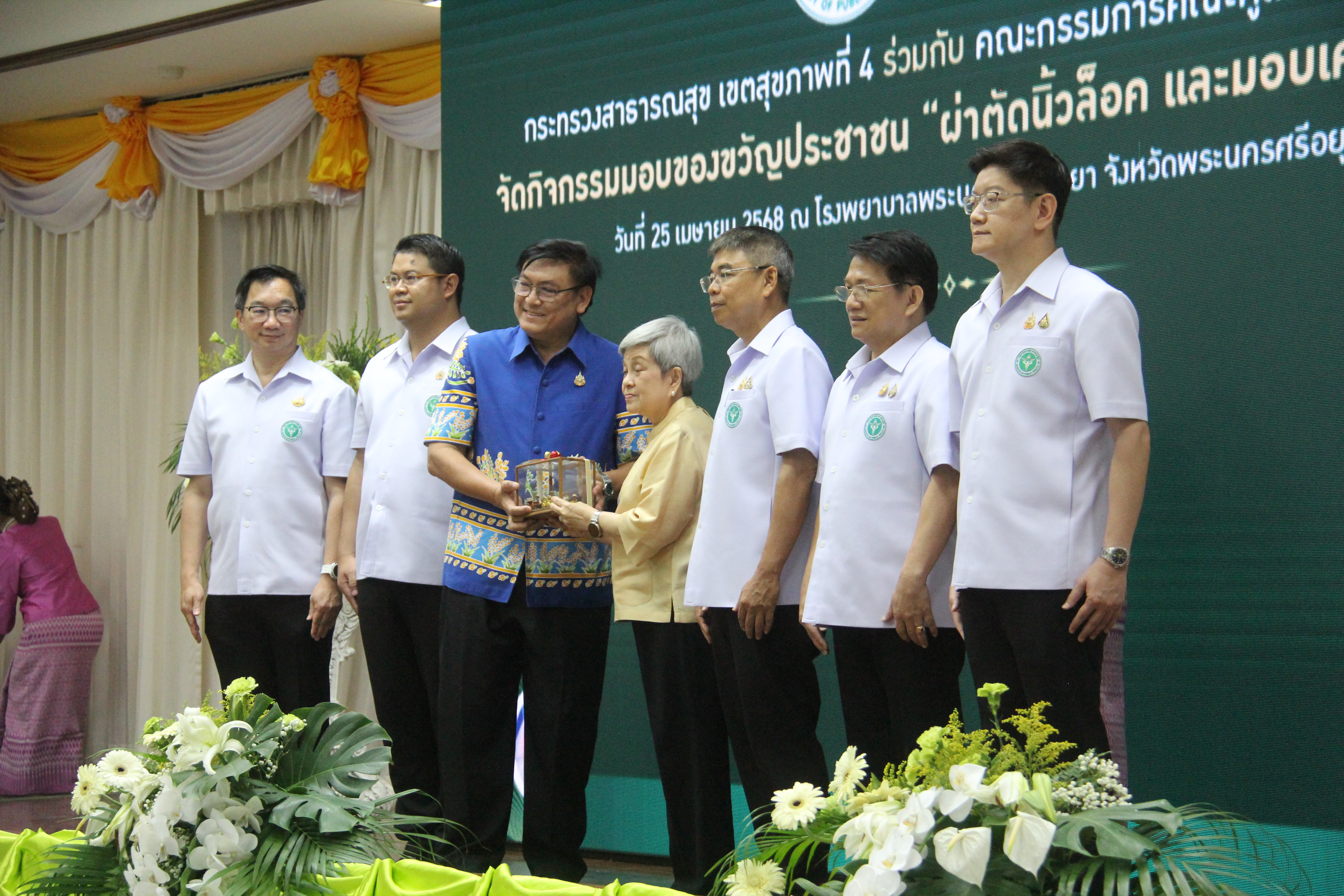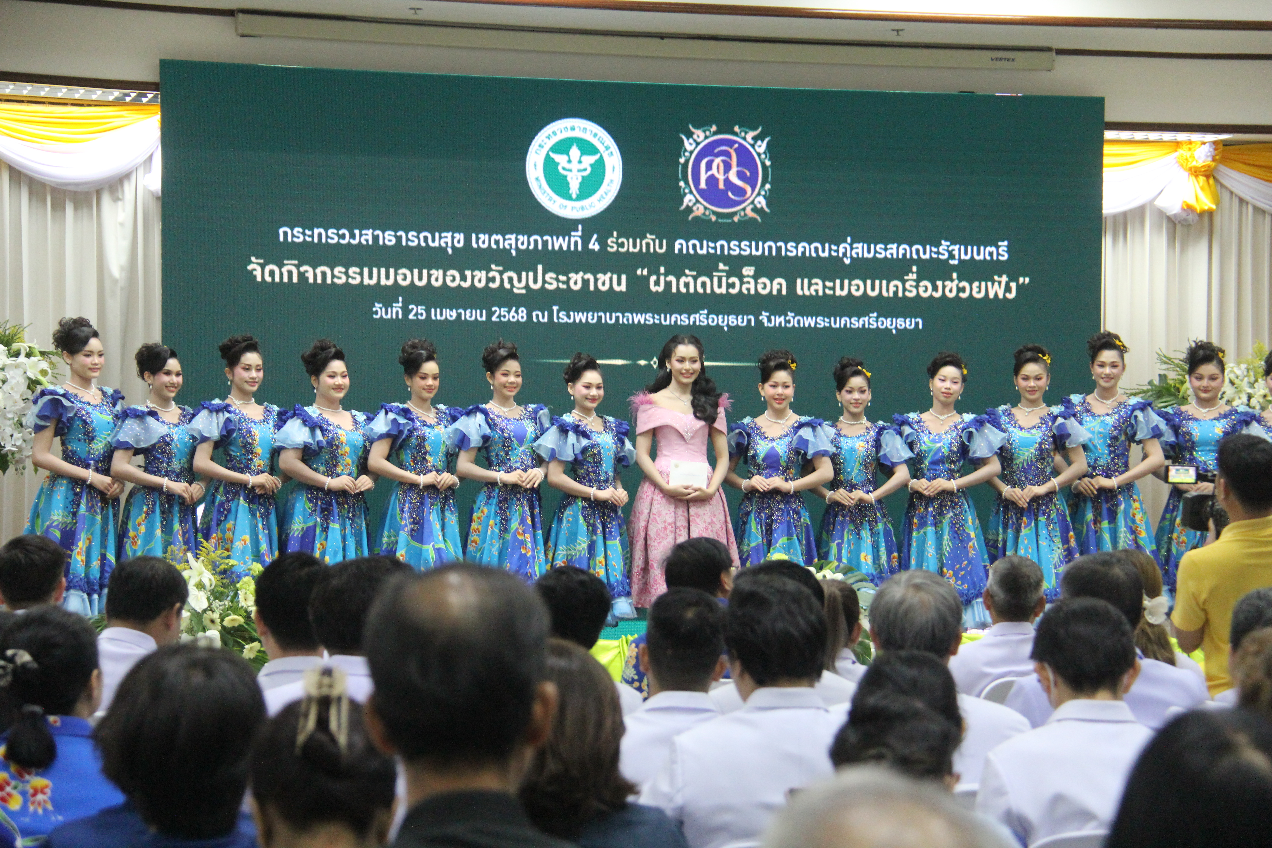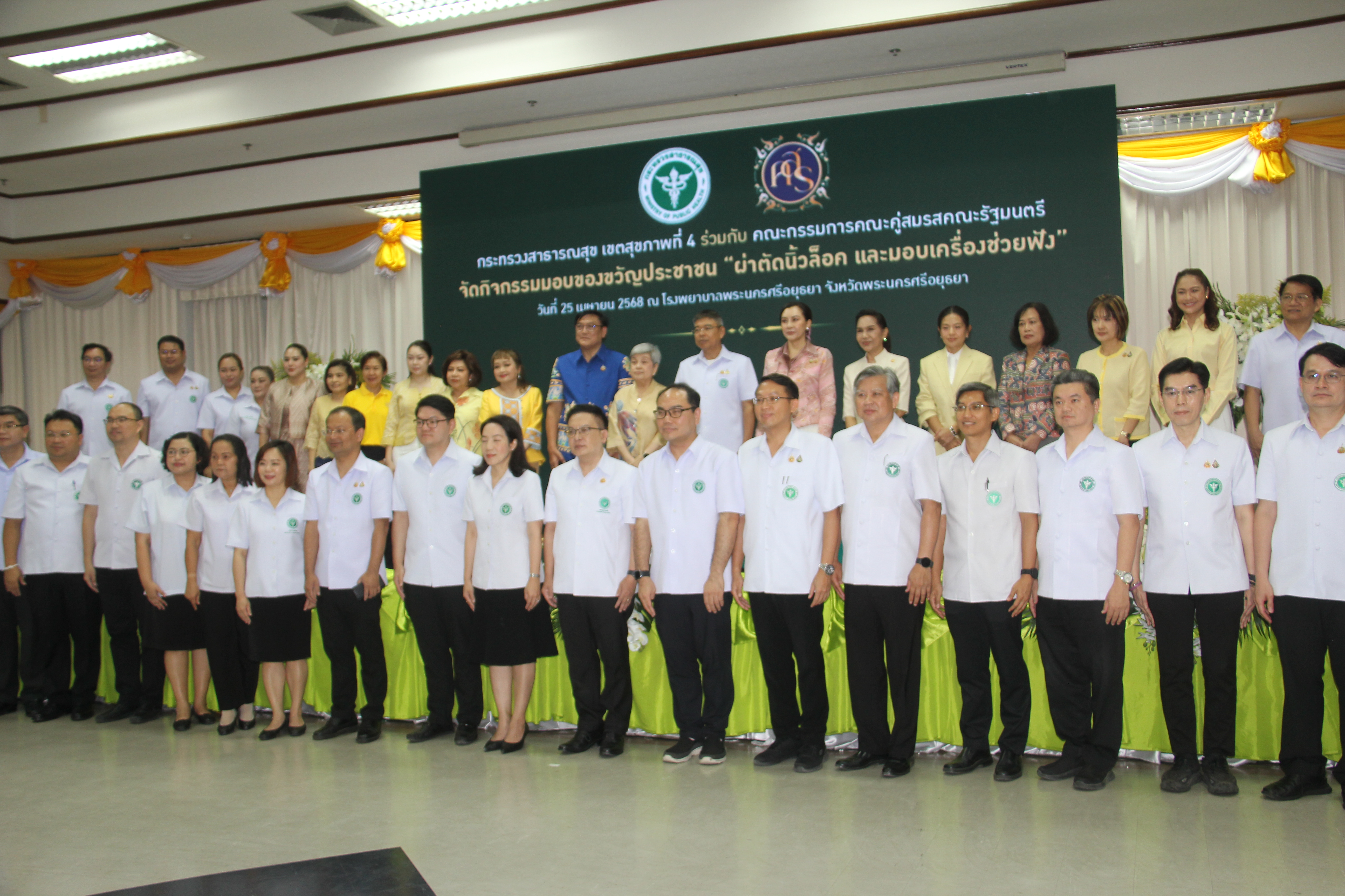 วันที่ 25 เมษายน 2568 เวลา 09.30 น. ณ ห้องประชุมอู่ทอง ชั้น 5 อาคารเฉลิมพระเกียรติ โรงพยาบาลพระนครศรีอยุธยา นางอภิญญา เวชยชัย รองประธานคณะกรรมการคณะคู่สมรสคณะรัฐมนตรี เป็นประธาน เปิดกิจกรรมของขวัญประชาชน ครั้งที่ 1โดยมีคณะกรรมการคณะคู่สมรสคณะรัฐมนตรี พ.ศ.2568 ประกอบด้วยนางสุริสา จึงรุ่งเรืองกิจ, นางอนงค์วรรณ เทพสุทิน, น.ส.สุภาพร กำเนิดผล, น.ส.สุทธาสินี สกุลคู, นางก่อกาญจน์ เสงี่ยมพงษ์, นางญาณิกา เทียนทอง, นางธัญยธรณ์ นริพทะพันธุ์, นางสุนีย์ สอดส่อง, นางวนิดา นาคพาณิชย์,นางวรัญญา โรจนสกุล, นางวีณา ศรีสรรพางค์ และนางอิสสริยา พันธ์เจริญวรกุล นายธีรศักดิ์ โฉมศิริ รองผู้ว่าราชการจังหวัดพระนครศรีอยุธยา หัวหน้าส่วนราชการ บุคลากรสาธารณสุขจังหวัดพระนครศรีอยุธยา และประชาชน เข้าร่วมกิจกรรม