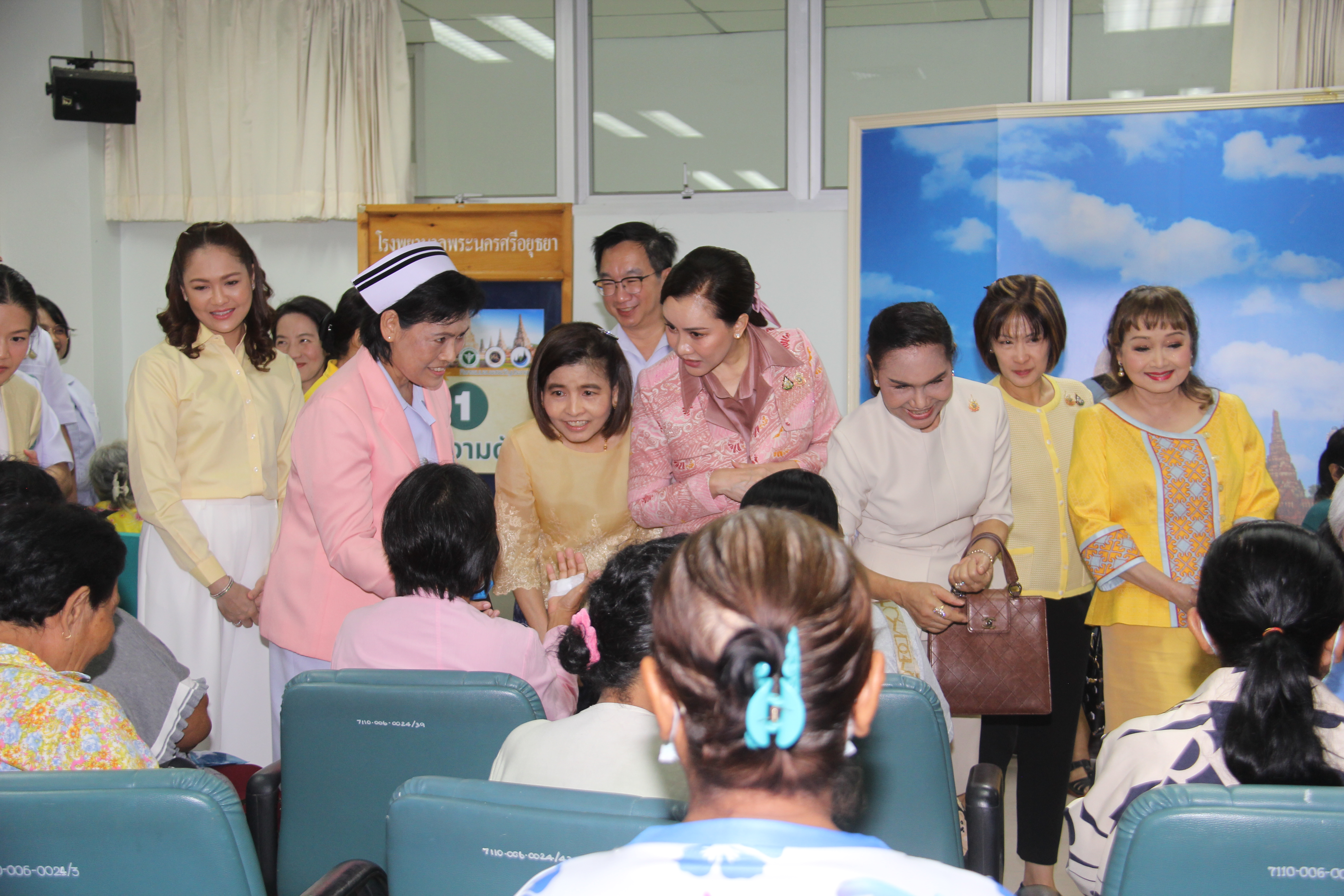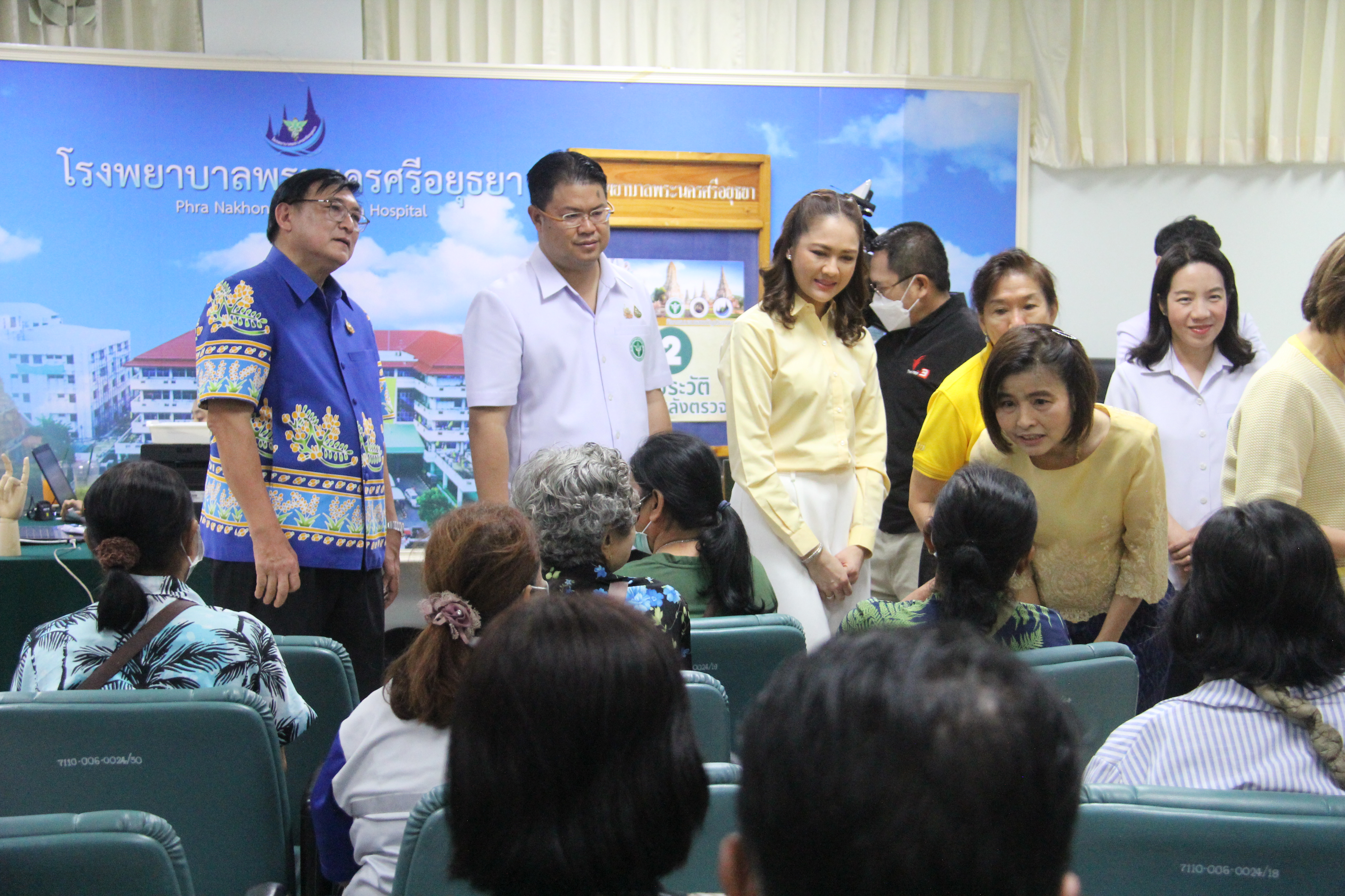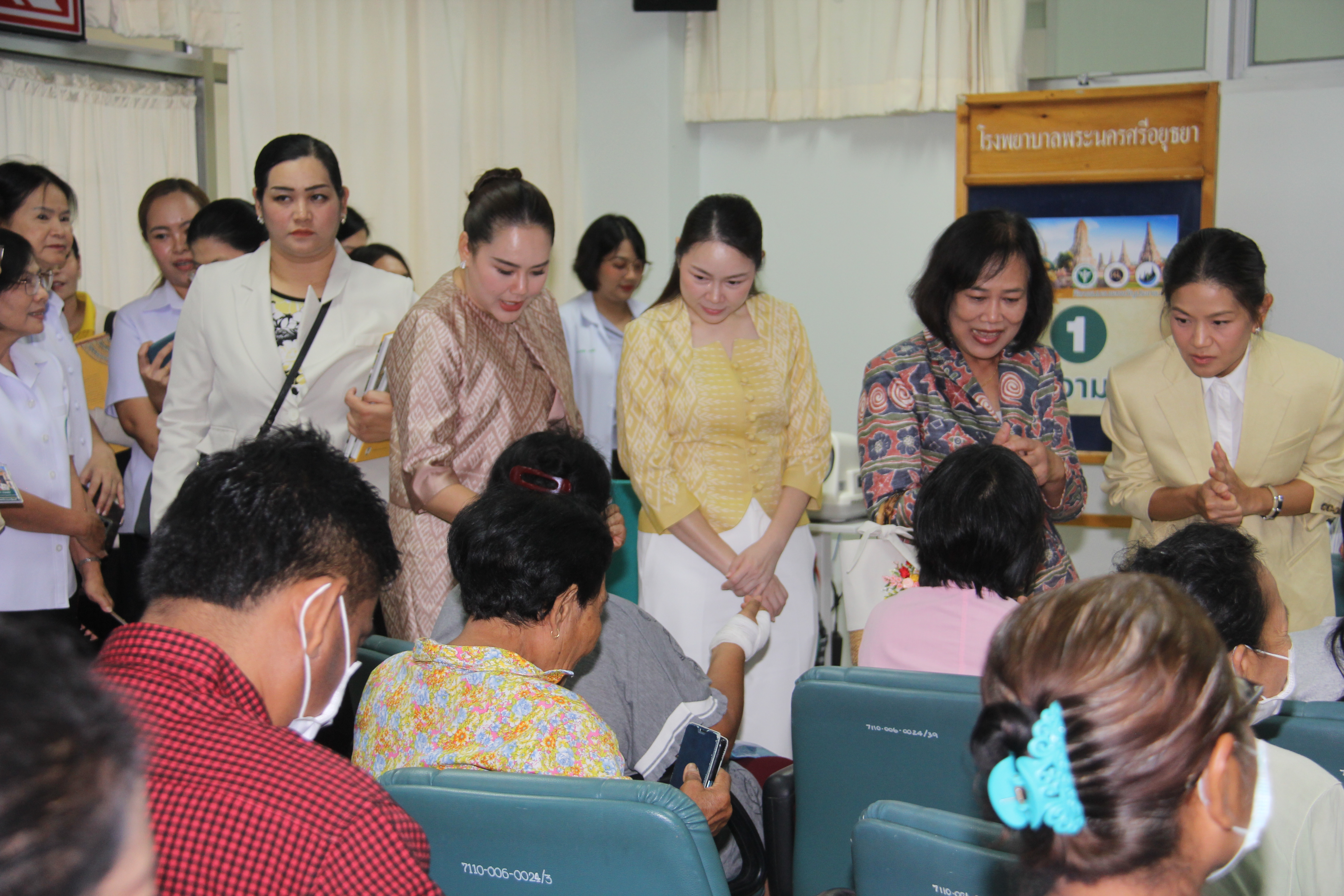 โดยมี นพ.ศักดา อัลภาชน์ รองปลัดกระทรวงสาธารณสุข กล่าวรายงานกิจกรรมของขวัญประชาชนของคณะกรรมการคณะคู่สมรสคณะรัฐมนตรี พร้อมด้วย นายธีรศักดิ์ โฉมศิริ รองผู้ว่าราชการจังหวัดพระนครศรีอยุธยา, หัวหน้าส่วนราชการจังหวัดพระนครศรีอยุธยา, นพ. ปรีชา เปรมปรี ผู้ตรวจราชการกระทรวงสาธารณสุข เขตสุขภาพที่ 4, นางสาวณัฐณิชา บุรณศิริ ประจำสำนักเลขาธิการนายกรัฐมนตรี, นพ.อุดม อัศวุตมางกุร สาธารณสุขนิเทศก์ เขตสุขภาพที่ 4, คณะผู้บริหารระดับสูงกระทรวงสาธารณสุข, นพ.ชวนนท์ อิ่มอาบ นายแพทย์สาธารณสุขจังหวัดพระนครศรีอยุธยา, นพ.ธเนศ ดุสิตสุนทรกุล ผู้อำนวยการโรงพยาบาลพระนครศรีอยุธยา, คณะผู้บริหารและเจ้าหน้าที่ สังกัดสำนักงานสาธารณสุขจังหวัดพระนครศรีอยุธยา ให้การต้อนรับและเข้าร่วมกิจกรรม จากนั้นรับชมการสาธิตผ่าตัดนิ้วล็อคและกล่าวทักทายสอบถามอาการ และให้กำลังใจ ผู้ป่วยที่มาทำการรักษา ชมนิทรรศการทางการแพทย์ นโยบายสำคัญในการสร้างเสริมสุขภาพแก่ประชาชน พร้อมกับแจกเครื่องดื่ม ขนมให้กับผู้มารับบริการที่โรงพยาบาล และสักการะพระบรมราชานุสาวรีย์สมเด็จพระนเรศวรมหาราช เนื่องในโอกาสวันคล้ายวันสวรรคต สมเด็จพระนเรศวรมหาราช