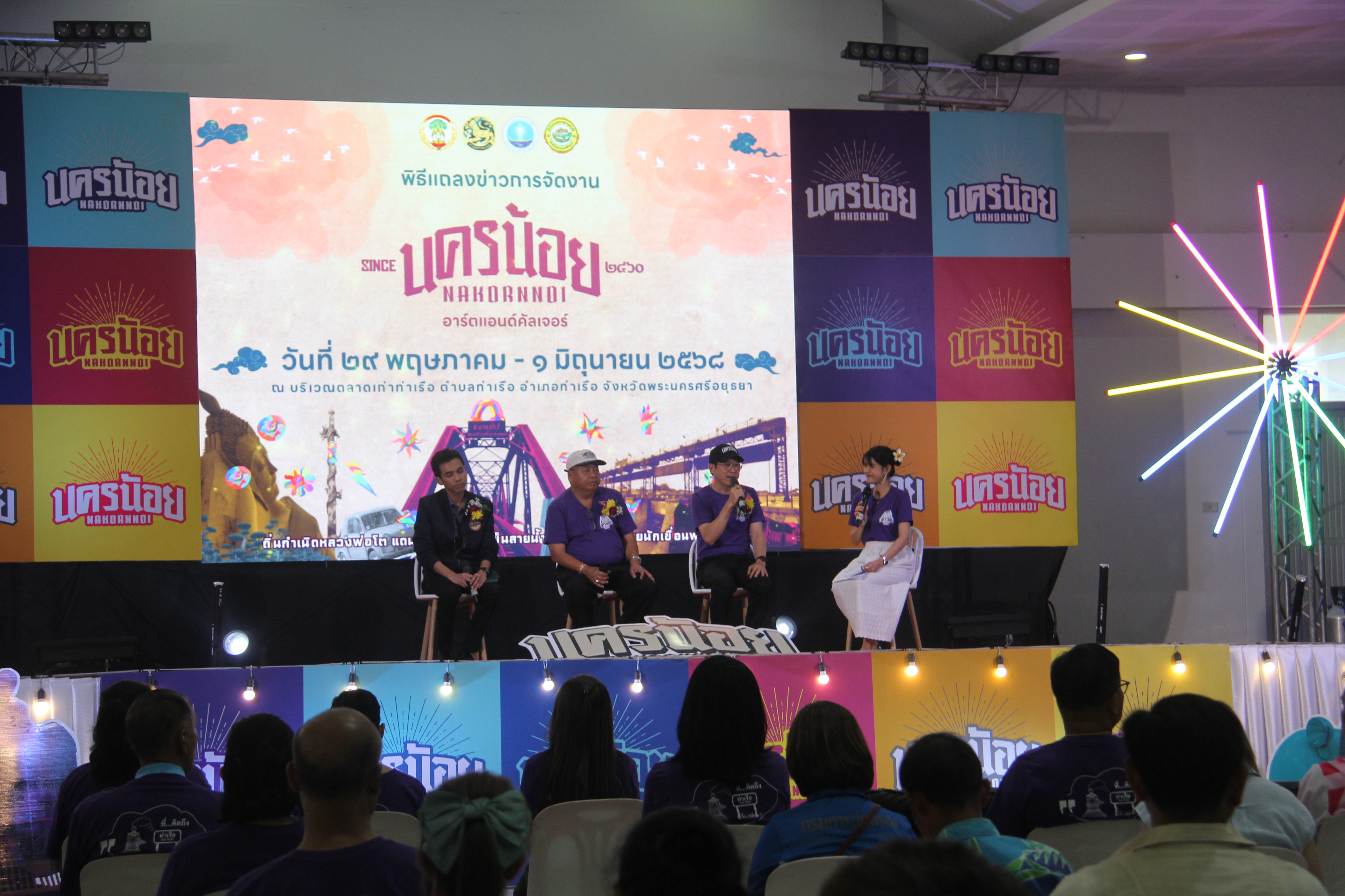 เมื่อวันที่ 16 พฤษภาคม 2568 ที่ หอประชุมอำเภอท่าเรือ จังหวัดพระนครศรีอยุธยา นายวิชาญ น้อยโต นายอำเภอท่าเรือ พร้อมด้วย นายนครินทร์ เลิศชุณหะเกียรติ รองปลัดเทศบาล รักษาราชการแทนปลัดเทศบาล ปฏิบัติหน้าที่นายกเทศมนตรีตำบลท่าเรือ นายกฤษฎา บัวรังษี หัวหน้ากลุ่มงานส่งเสริมและพัฒนาการท่องเที่ยว ท่องเที่ยวและกีฬาจังหวัดพระนครศรีอยุธยา ร่วมกันจัดการแถลงข่าวเตรียมจัดงาน “ นครน้อย 2460 อาร์ตแอนด์คัลเจอร์ “ ที่จะจัดขึ้นในวันที่ 29 พฤษภาคม ถึง 1 มิถุนายน 2568 ตามแผนยุทธศาสตร์ส่งเสริมการพัฒนาจังหวัดและกลุ่มจังหวัดแบบบูรณาการ ตามแผนปฎิบัติราชการประจำปีงบประมาณ พ.ศ. 2568
