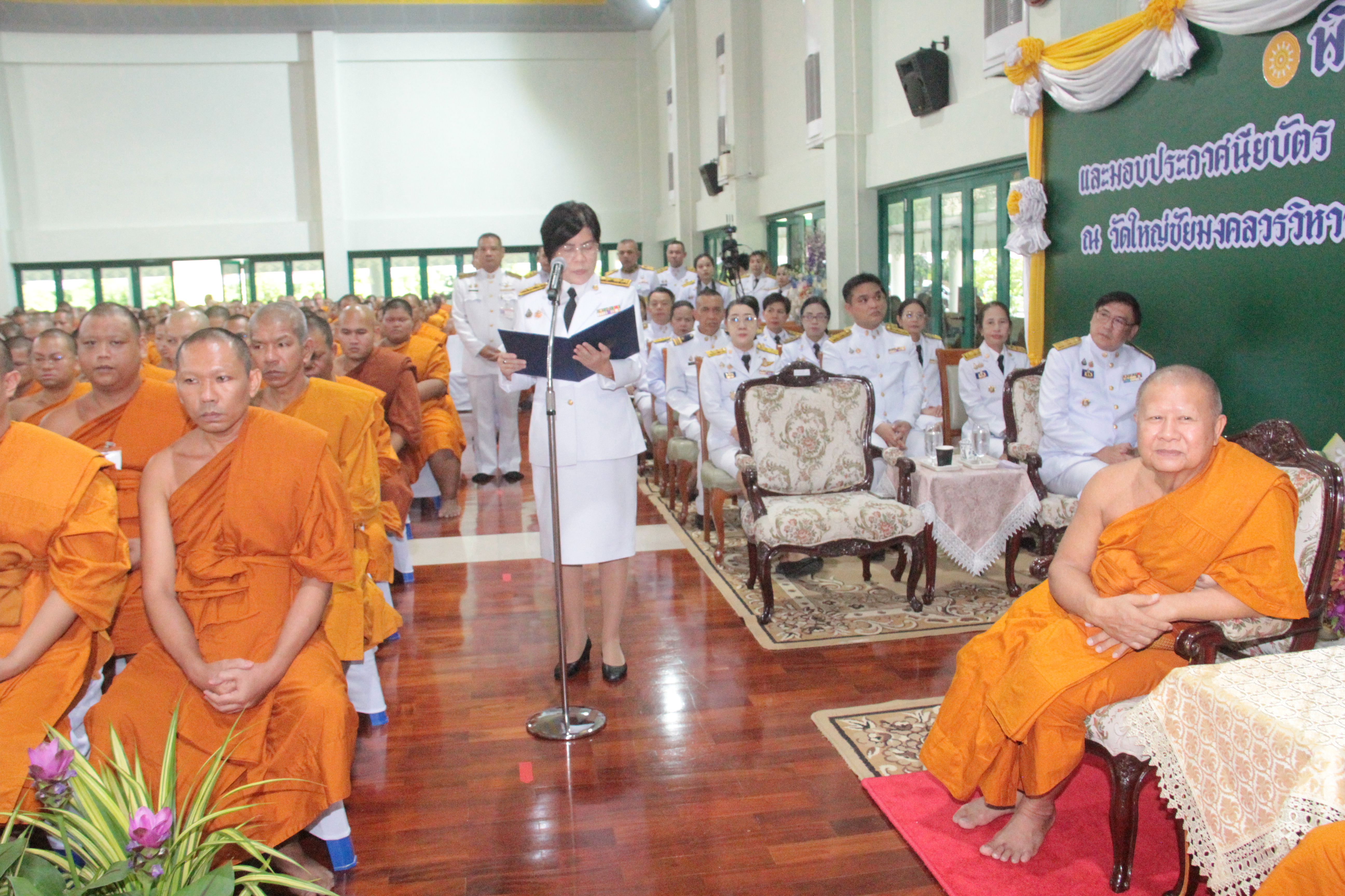 โดยมีนายธีรศักดิ์ โฉมศิริ รองผู้ว่าราชการจังหวัดพระนครศรีอยุธยา นางอมรรัตน์ กรึงไกร นายอำเภอพระนครศรีอยุธยา คณะสงฆ์จังหวัดพระนครศรีอยุธยา หัวหน้าส่วนราชการ ถวายการต้อนรับ และนางกณิกนันต์ ล้อสีทอง รองผู้อำนวยการ ปฏิบัติหน้าที่แทน ผู้อำนวยการสำนักงานพระพุทธศาสนาแห่งชาติ กล่าวถวายรายงาน โดยมี พระภิกษุสามเณรที่สอบได้เปรียญธรรม 3 ประโยค จำนวน 265 รูป และพระภิกษุสามเณรที่สอบได้ประโยค 1 – 2 จำนวน 366 รูป รวมทั้งสิ้น 631 รูป