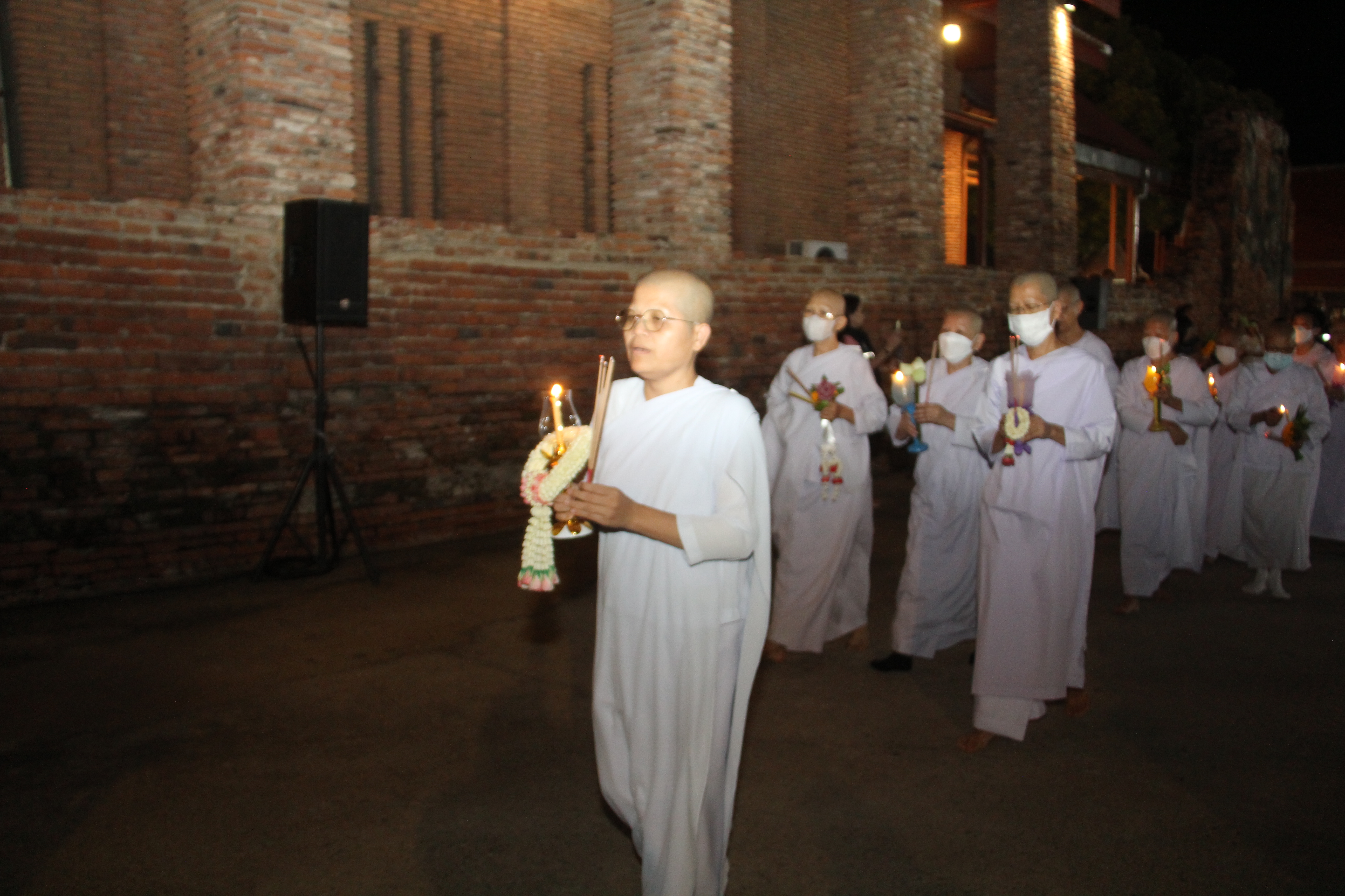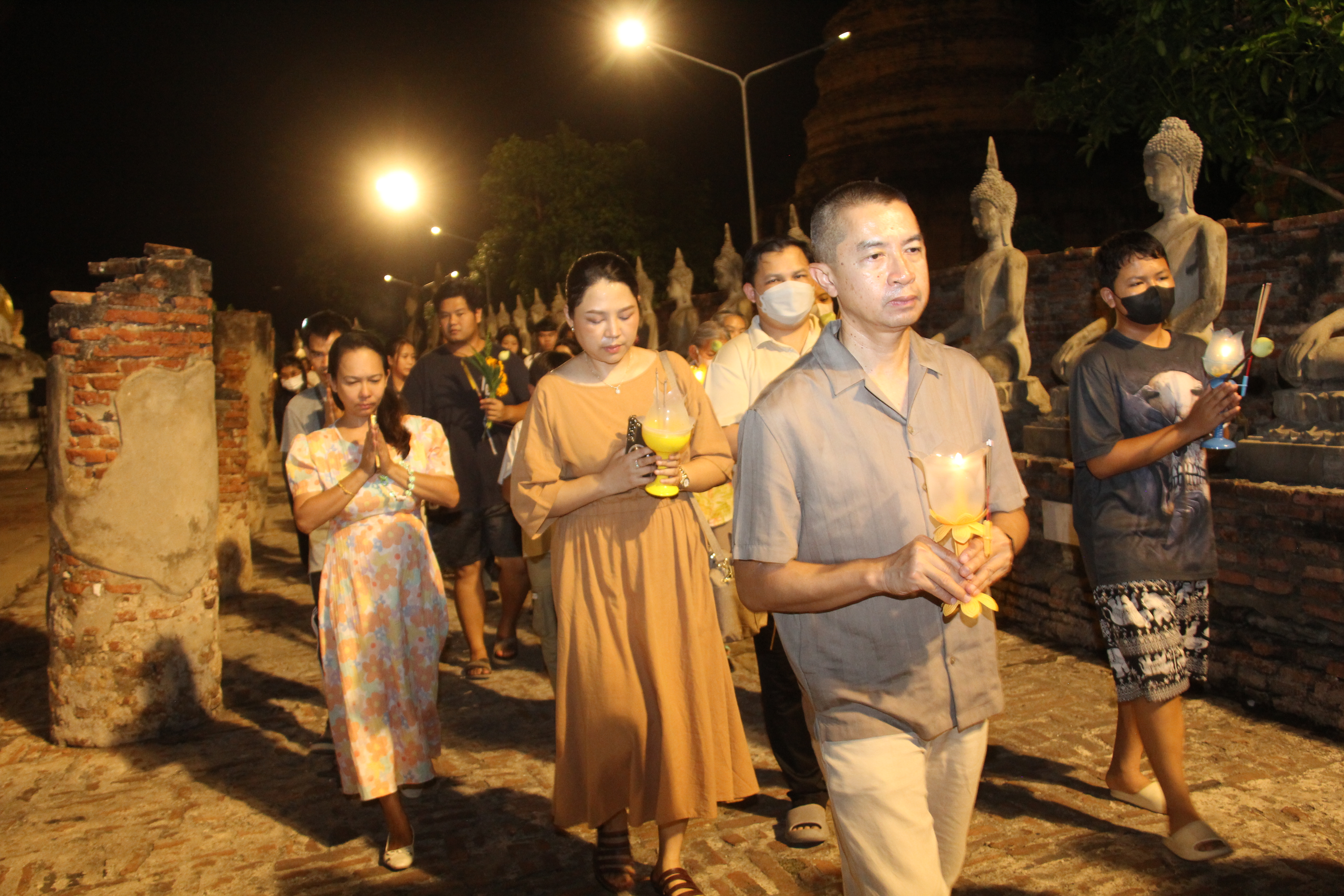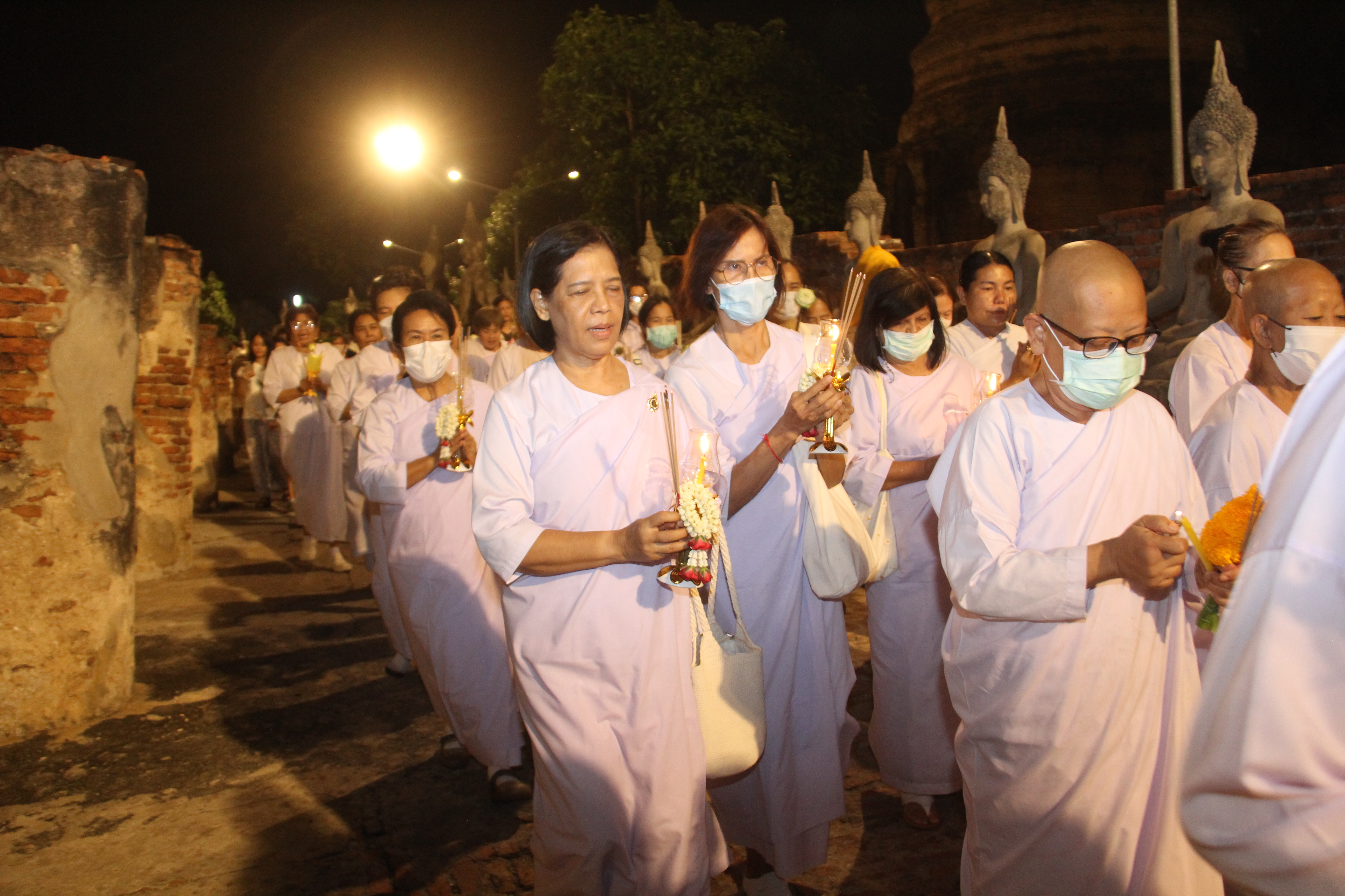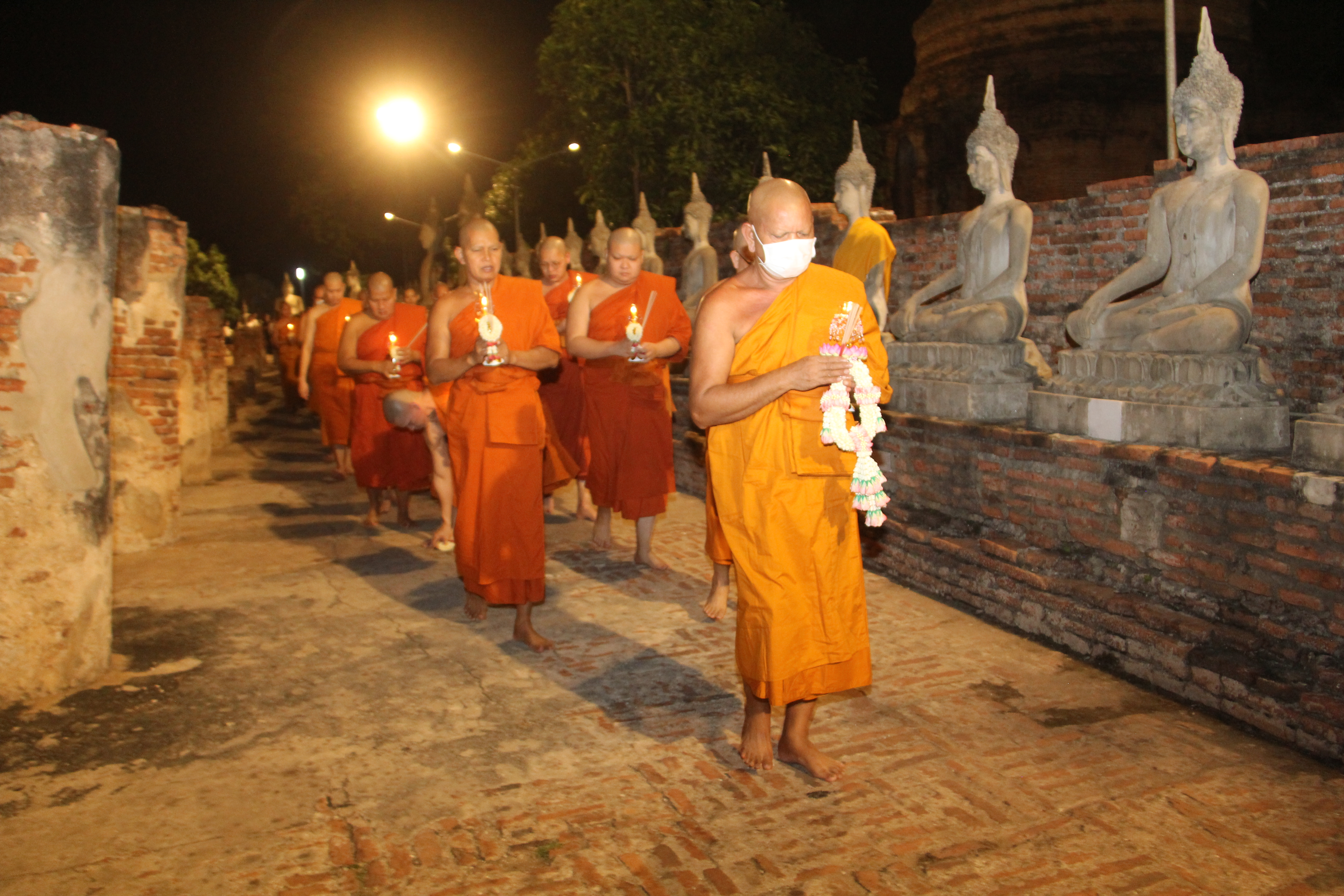 ในช่วงค่ำพระครูสิริชัยมงคล รองเจ้าคณะอำเภอพระนครศรีอยุธยา รักษาการเจ้าอาวาสวัดใหญ่ชัยมงคลวรวิหาร เป็นประธานในการประกอบพิธีทำวัตรสวดมนต์ และเวียนเทียนรอบพระอุโบสถและพระเจดีย์ชัยมงคล เพื่อเป็นการบูชารำลึกถึงพระรัตนตรัย อันประกอบด้วย พระพุทธ พระธรรม และพระสงฆ์ โดยมีพุทธศาสนิกชนจำนวนมากมาร่วมกันเวียนเทียนรอบพระอุโบสถและพระเจดีย์ชัยมงคล จำนวน 3 รอบ