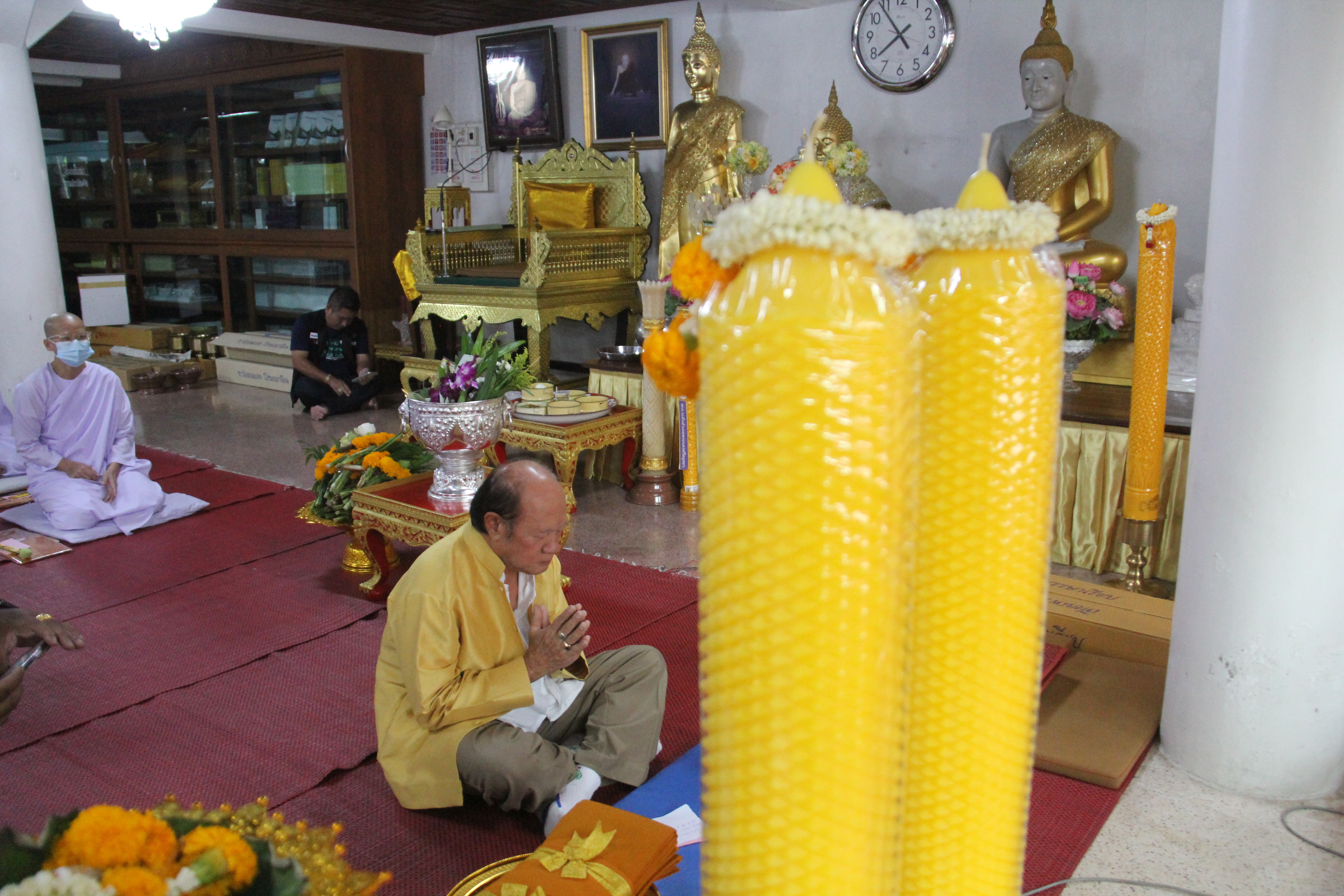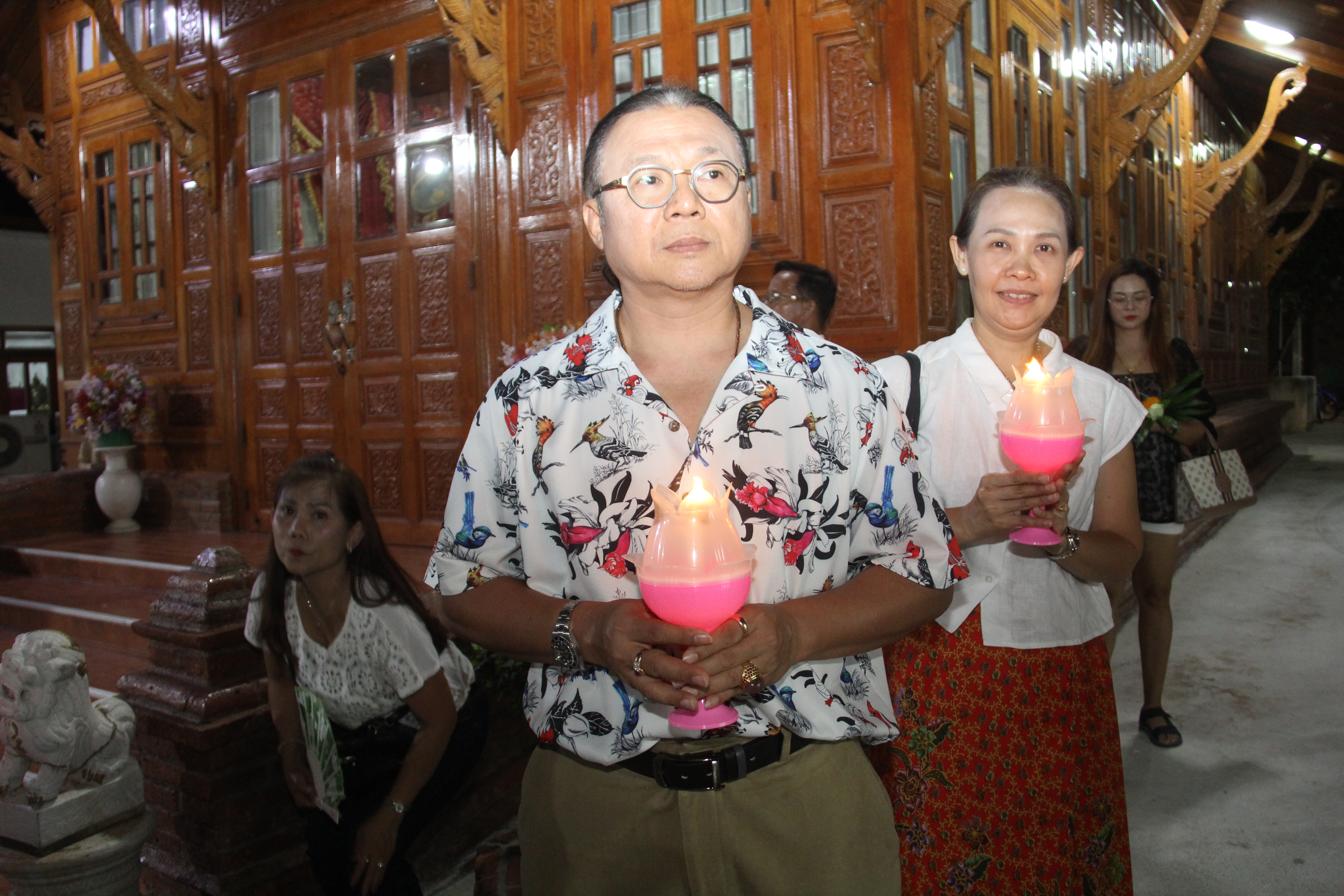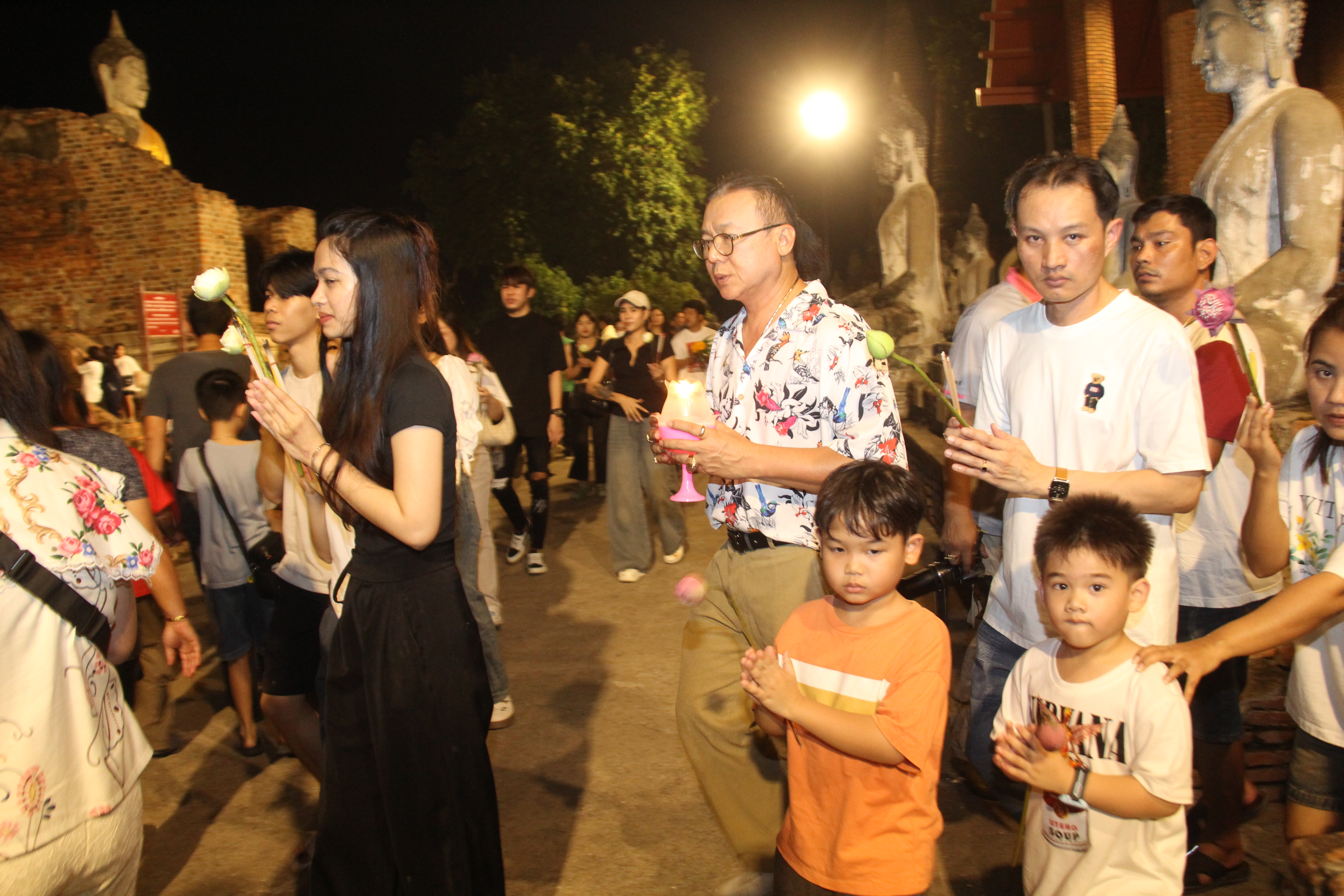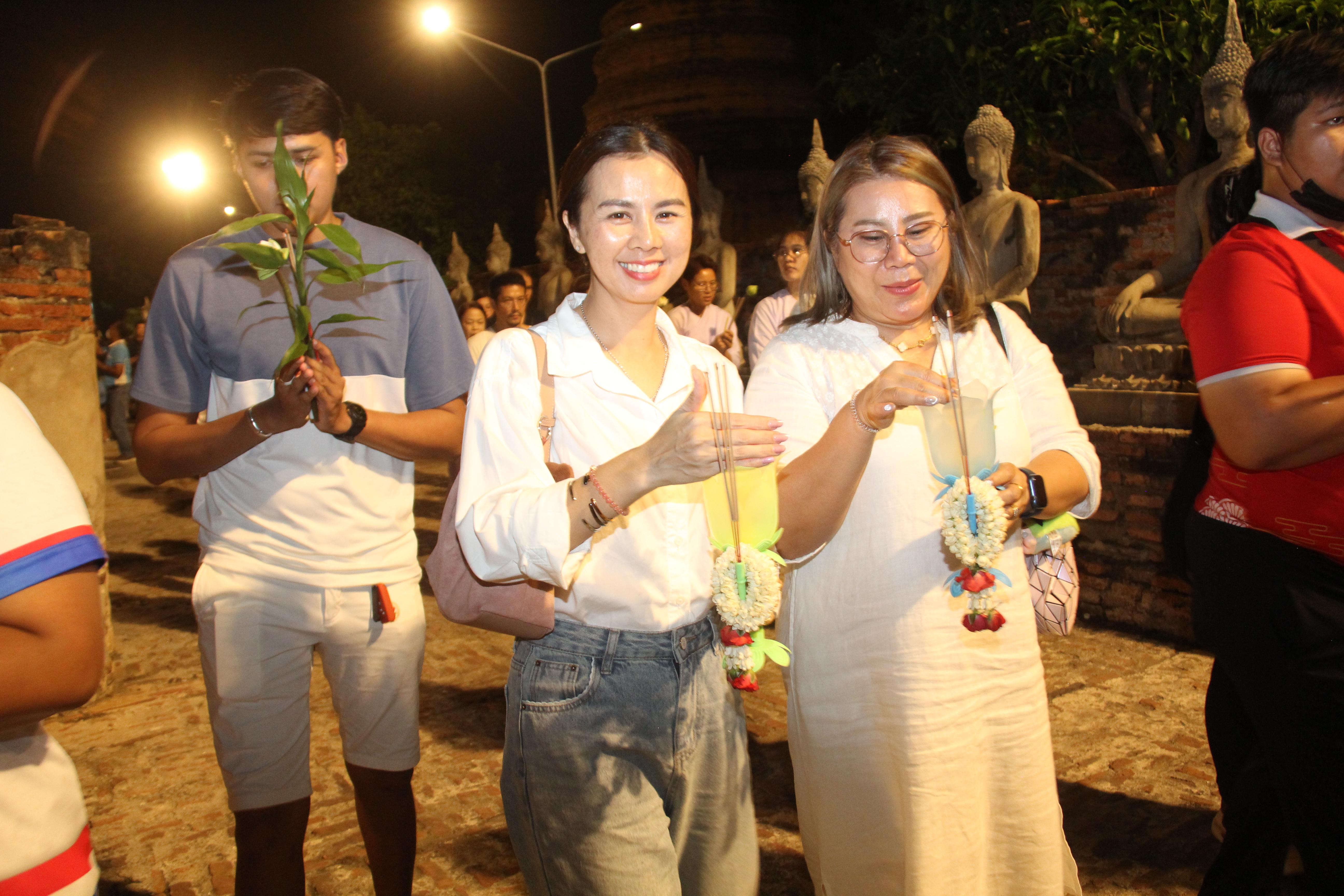 ในช่วงค่ำพระครูสิริชัยมงคล รองเจ้าคณะอำเภอพระนครศรีอยุธยา รักษาการเจ้าอาวาสวัดใหญ่ชัยมงคลวรวิหาร เป็นประธานในการประกอบพิธีทำวัตรสวดมนต์ และเวียนเทียนรอบพระอุโบสถและพระเจดีย์ชัยมงคล เพื่อเป็นการบูชารำลึกถึงพระรัตนตรัย อันประกอบด้วย พระพุทธ พระธรรม และพระสงฆ์ โดยมีพุทธศาสนิกชนจำนวนมากมาร่วมกันเวียนเทียนรอบพระอุโบสถและพระเจดีย์ชัยมงคล จำนวน 3 รอบ