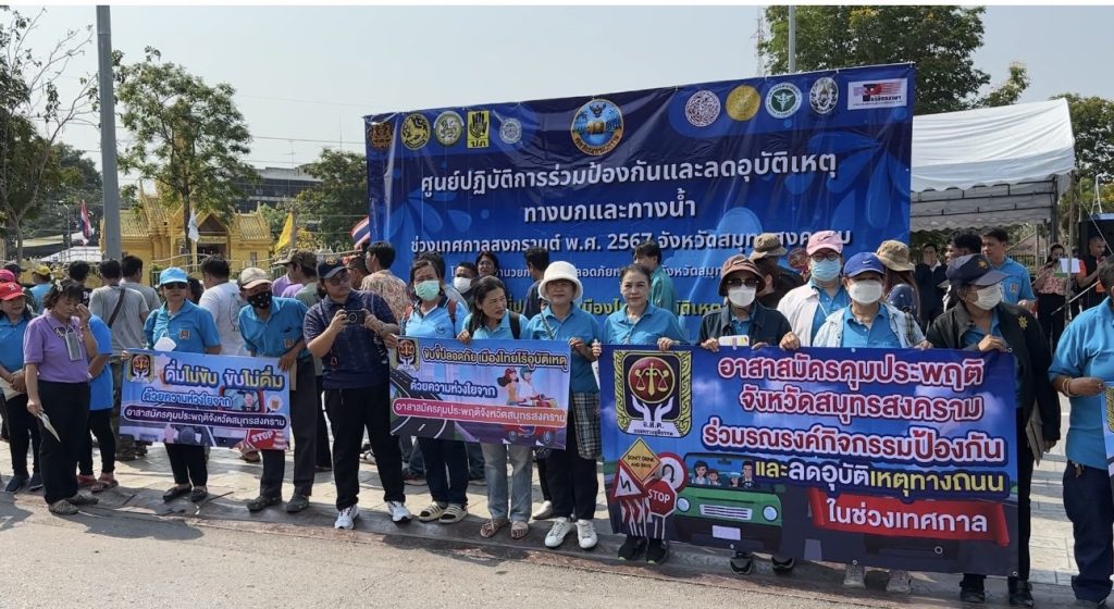 ที่ลานหน้าศาลากลาง นายศิริศักดิ์ ศิริมังคลา ผู้ว่าราชการจังหวัดสมุทรสงครามเป็นประธานเปิดศูนย์ปฏิบัติการร่วมป้องกันและลดอุบัติเหตุทางบกและทางน้ำช่วงเทศกาลสงกรานต์ 2567 ซึ่งจังหวัดร่วมกับภาครัฐ,เอกชน,องค์กรปกครองส่วนท้องถิ่น มูลนิธิและอาสากู้ภัยต่างๆกว่า 10 หน่วยงาน เตรียมป้องกันและลดอุบัติเหตุทางถนนและทางน้ำช่วง 7 วันอันตรายระหว่างวันที่ 11 ถึง17 เมษายนนี้ โดยกำหนดมาตรการในการป้องกันต่างๆ ตามมาตรการ 5 ด้าน ได้แก่ ด้านการบริหารจัดการ ด้านลดปัจจัยเสี่ยงของถนนและสภาพแวดล้อม ด้านลดปัจจัยเสี่ยงของยานพาหนะ ด้านผู้ใช้รถใช้ถนนปลอดภัย และด้าน