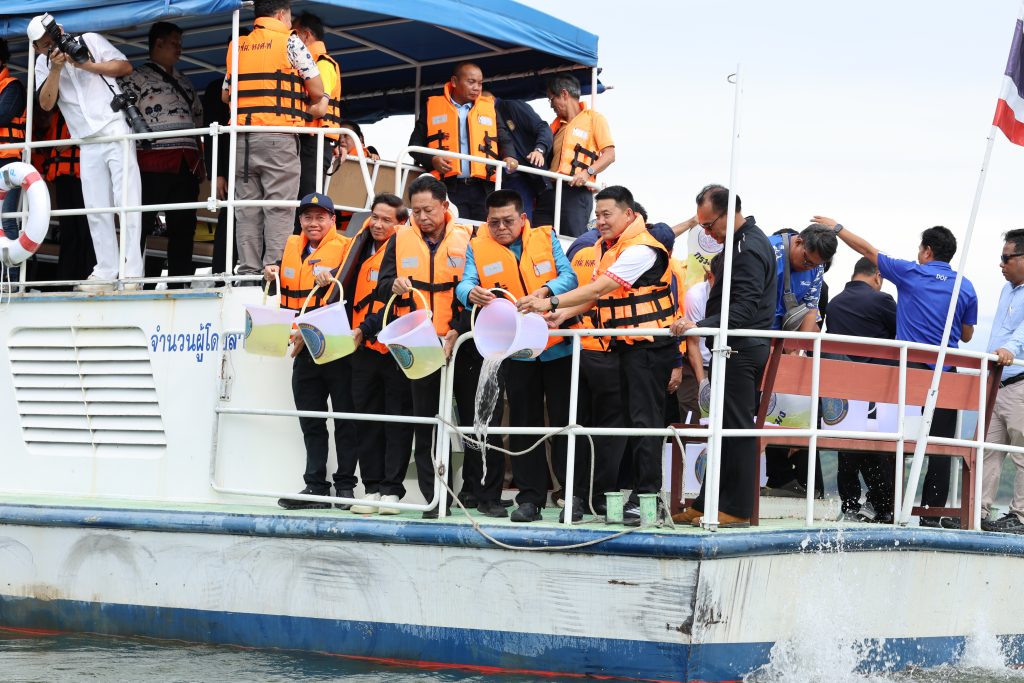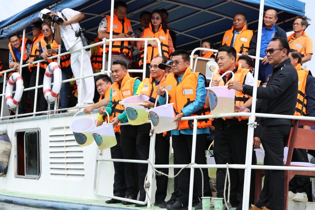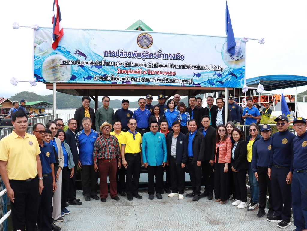วันพฤหัสบดีที่ 7 สิงหาคม 2568 เวลา 16.00 น. ผศ.ดร.พจนีย์ สุขชาวนา อธิการบดีมหาวิทยาลัยราชภัฏกาญจนบุรี มอบหมายให้ ผศ.จรายุทธ ประทีปวรกาญจน์ รองอธิการบดี พร้อมด้วย อาจารย์วิยดา พลชัย รองคณบดีคณะวิทยาการจัดการ พร้อมนักศึกษาจิตอาสา ร่วมกิจกรรมปล่อยพันธุ์สัตว์น้ำทางเรือ