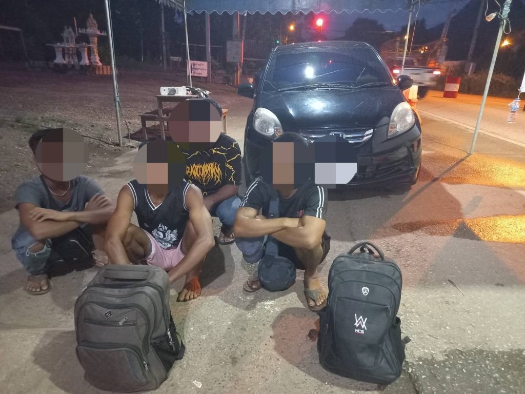 เมื่อเวลา 19.30 น. วันที่ 14 สิงหาคม 2568 ภายใต้การอำนวยการของ นาย อธิสรรค์ อินทร์ตรา ผู้ว่าราชการจังหวัดกาญจนบุรี ที่จุดตรวจสามแยกทองผาภูมิ อำเภอทองผาภูมิ จังหวัดกาญจนบุรี นายชาคริต ตันพิรุฬห์ นายอำเภอทองผาภูมิ มอบหมายให้นายวัลลภ จินดา ปลัดอำเภอฝ่ายความมั่นคง พร้อมสมาชิก อส.อำเภอทองผาภูมิที่ 9 ปฏิบัติการจับกุมแรงงานต่างด้าวหลบหนีเข้าเมือง 4 ราย และผู้กระทำผิดฐานนำพา 1 ราย ทราบชื่อคือนายลิน โกโก่ อายุ 31 ปี สัญชาติเมียนมา พักอยู่หมู่ 10 ตำบลแพงพวย อำเภอดำเนินสะดวก จังหวัดราชบุรี พร้อมของกลางรถยนต์เก๋งฮอนด้า บริโอ สีดำ ทะเบียนจังหวัดสมุทรสาคร