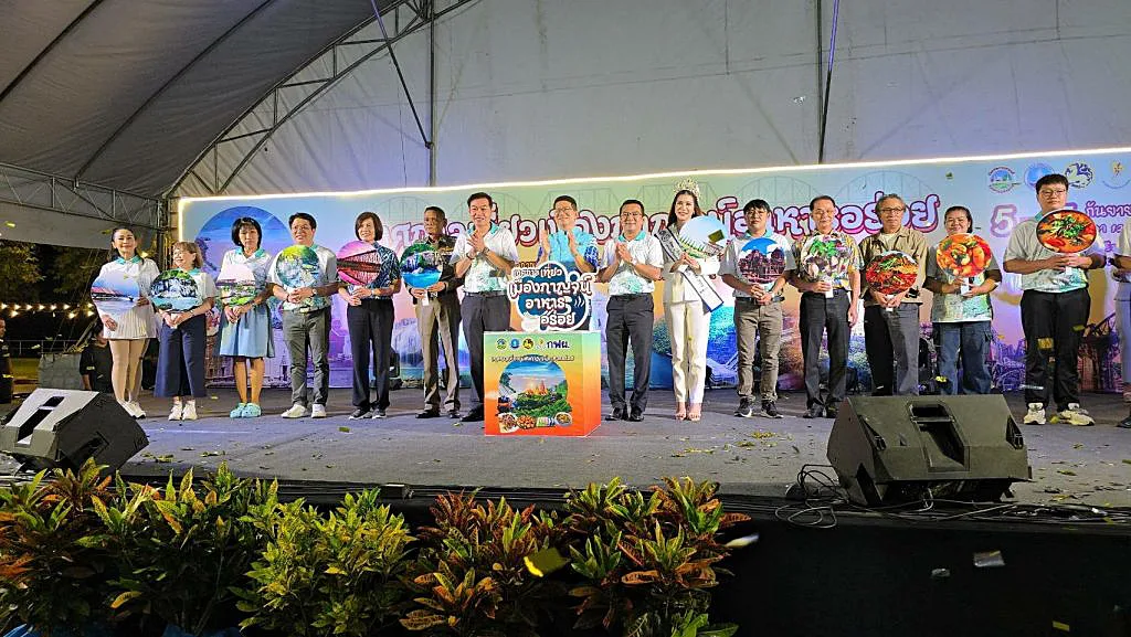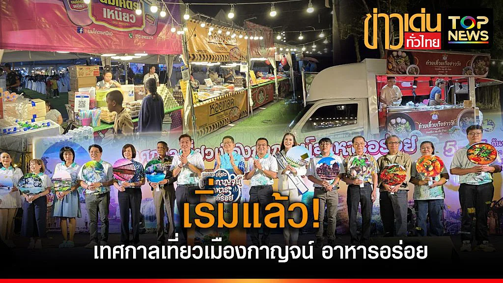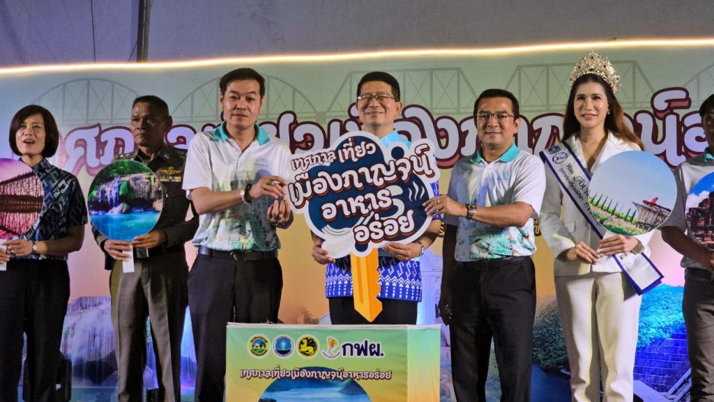วันที่ 5 กันยายน 2568 ที่บริเวณสันเขื่อนศรีนครินทร์ อำเภอศรีสวัสดิ์ จังหวัดกาญจนบุรี นายสิทธิวีร์ วรรณพฤกษ์ รองผู้ว่าราชการจังหวัดกาญจนบุรี เป็นประธานเปิดงาน “เทศกาลเที่ยวเมืองกาญจน์ อาหารอร่อย” ซึ่งจัดขึ้นภายใต้โครงการส่งเสริมการตลาดด้านการท่องเที่ยว มีนายประสิทธิ์ ปิ่มบุญ ท่องเที่ยวและกีฬาจังหวัดกาญจนบุรี กล่าวรายงาน และนายศิริรัตน์ บำรุงเสนา นายอำเภอศรีสวัสดิ์ กล่าวต้อนรับ ท่ามกลางการเข้าร่วมของหัวหน้าส่วนราชการ ภาคเอกชน ผู้นำท้องถิ่น และนักท่องเที่ยวจำนวนมาก