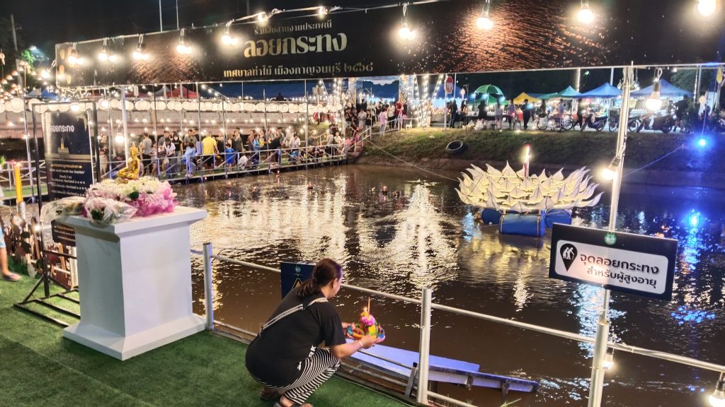 เมื่อวันที่ 5 พฤศจิกายน 2568 ที่บริเวณวัดคร้อพนัน และวัดกระต่ายเต้น ตำบลท่าไม้ อำเภอท่ามะกา จังหวัดกาญจนบุรี เทศบาลตำบลท่าไม้ นำโดย นายพรรษา สายทอง นายกเทศมนตรีตำบลท่าไม้ จัดงานประเพณี “ลอยกระทง ประจำปี 2568” ขึ้นอย่างอบอุ่นและงดงาม โดยได้ปรับรูปแบบงานใหม่ เพื่อถวายความอาลัยแด่ สมเด็จพระนางเจ้าสิริกิติ์ พระบรมราชินีนาถ พระบรมราชชนนีพันปีหลวง