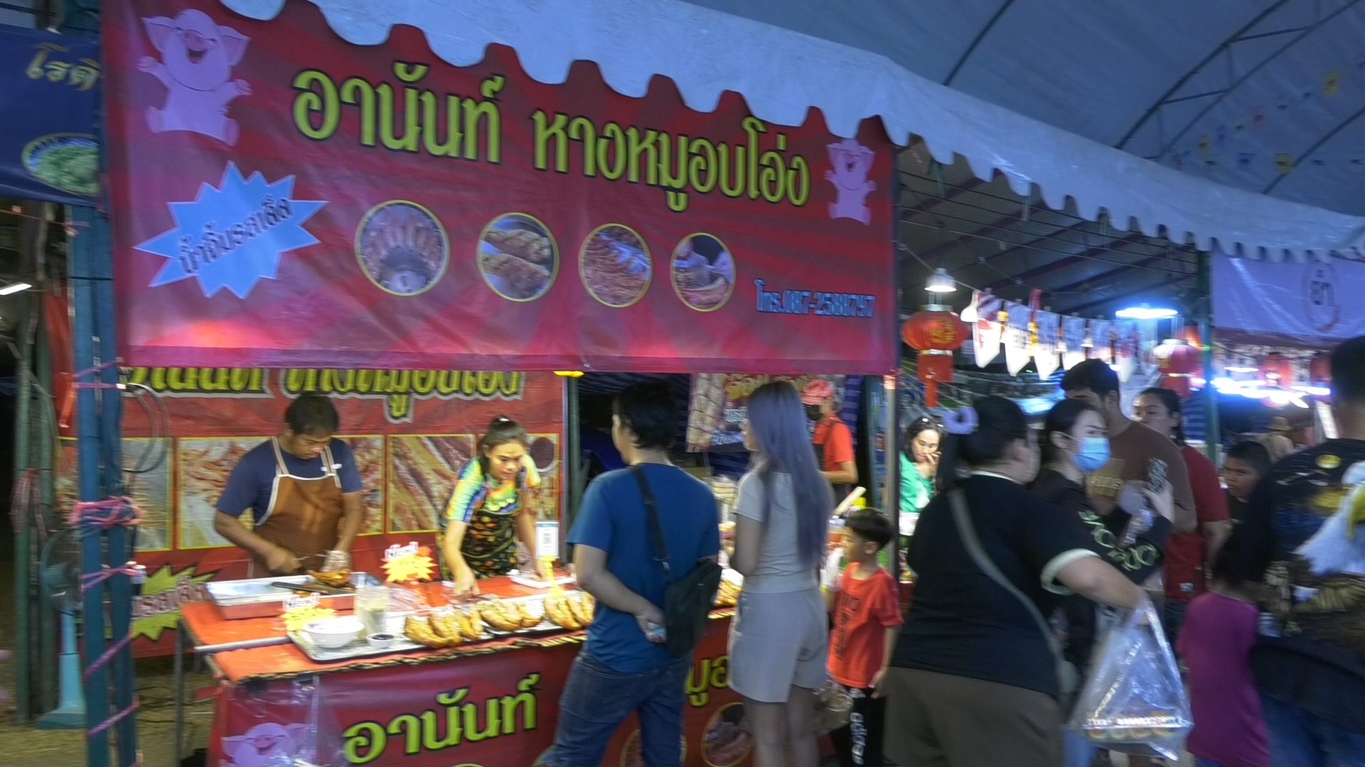 โดยเฉพาะในช่วงค่ำของทุกวัน จะพบว่ามีประชาชนและนักท่องเที่ยวหลั่งไหลเดินทางไปเที่ยวซื้อสินค้าเกษตร และสินค้าทั่วไป รวมทั้งอาหารคาวหวานต่างๆซึ่งส่วนใหญ่เป็นอาหารจากร้านที่มีชื่อเสียง รสชาติอร่อยและแปลกตาจากภูมิภาคต่างๆที่นำมาขายจำนวนมาก ซึ่งได้รับความสนใจจากประชาชนที่พากันซื้อไปรับประทานอย่างคึกคัก โดยเฉพาะหางหมูอบโอ่ง ชื่อร้าน”อานันท์ หางหมูอบโอ่ง”ซึ่งเป็นร้านของนายอานันท์ หรือเล็ก ตุ้มนาค อายุ 45 ปี หนุ่มใหญ่ชาวบ้านตาแตรว ต.เทพรักษา อ.สังขะ จ.สุรินทร์ ที่พาภรรยาชาวโคราช มาขายหางหมูอบโอ่ง สูตรหมักที่ดัดแปลงและคิดค้นขึ้นด้วยตนเอง จนมีรสชาติที่หอมกรอบอร่อยไม่เหมือนใคร มาจำหน่าย ซึ่งก็พบว่ามีลูกค้าให้ความสนใจแวะอุดหนุนวันละไม่ต่ำกว่า 100-150 หางขึ้นไป โดยจำหน่ายในราคาหางละ 120-160 บาท สร้างรายได้ให้กับครอบครัวได้เป็นอย่างดี ทำให้สองสามีภรรยายึดอาชีพขายหางหมูอบโอ่งเป็นหลัก ส่วนลูกชาย 2 คน ก็อยู่ดูแลกันเอง ที่ จ.นครราชสีมา เพราะต้องเรียนหนังสือ