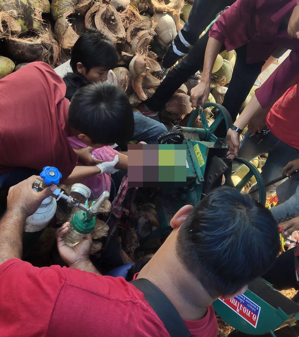 เมื่อถึงที่เกิดเหตุเป็นโรงงานเปลือกมะพร้า พื้นที่ ต.ไชยมนตรี อ.เมือง พบคนเจ็บเป็นหญิงทราบชื่อนางสาวสาคร ขุนคณะ อายุ 52 ปี สภาพมือข้างขวาติดอยู่ในเครื่องบดเปลือกมะพร้าว ท่าทางอิดโรย จึงรีบช่วยเหลือให้ออกซิเจน เพื่อรักษาระดับอ็อกซิเจนในเลือดให้คงที่ ก่อนจะช่วยกันถอดชิ้นส่วนเครื่องบดเปลือกมะพร้าว ท่ามกลางความลุ้นระทึกของชาวบ้าน