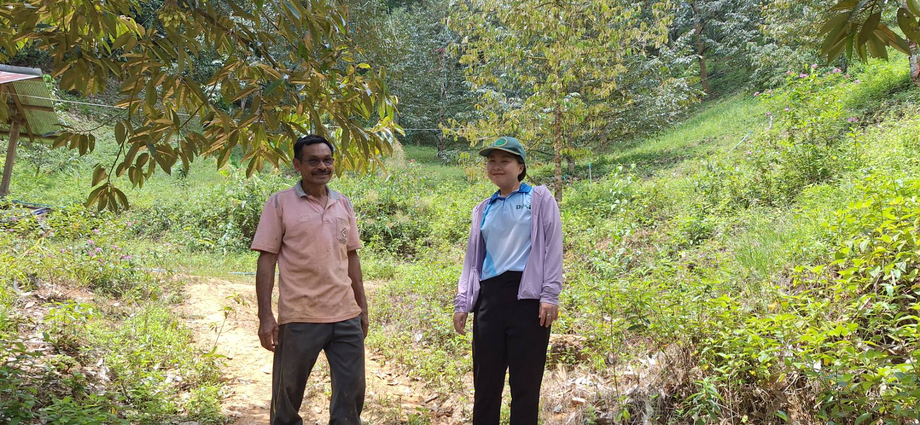 วันที่ 22 เม.ย. 2567 นางสาวอาภรณ์ รัตนพิบูลย์ รักษาราชการแทนเกษตรอำเภอเบตง พร้อมด้วยนางสาวพรพรรณ มณีโชติ นักวิชาการส่งเสริมการเกษตรชำนาญการ ลงพื้นที่ติดตามแปลงต้นแบบการใช้แสงไฟไล่ผีเสื้อกลางคืน เพื่อป้องกันและลดการระบาดของหนอนเจาะเมล็ดทุเรียน พร้อมทั้งติดตามสถานการณ์การติดดอกของไม้ผล พบดอกทุเรียนส่วนใหญ่อยู่ในระยะหางแย้ ณ แปลงของนายวาจิ วาแม หมู่ที่ 9 ตำบลอัยเยอร์เวง อำเภอเบตง จังหวัดยะลา