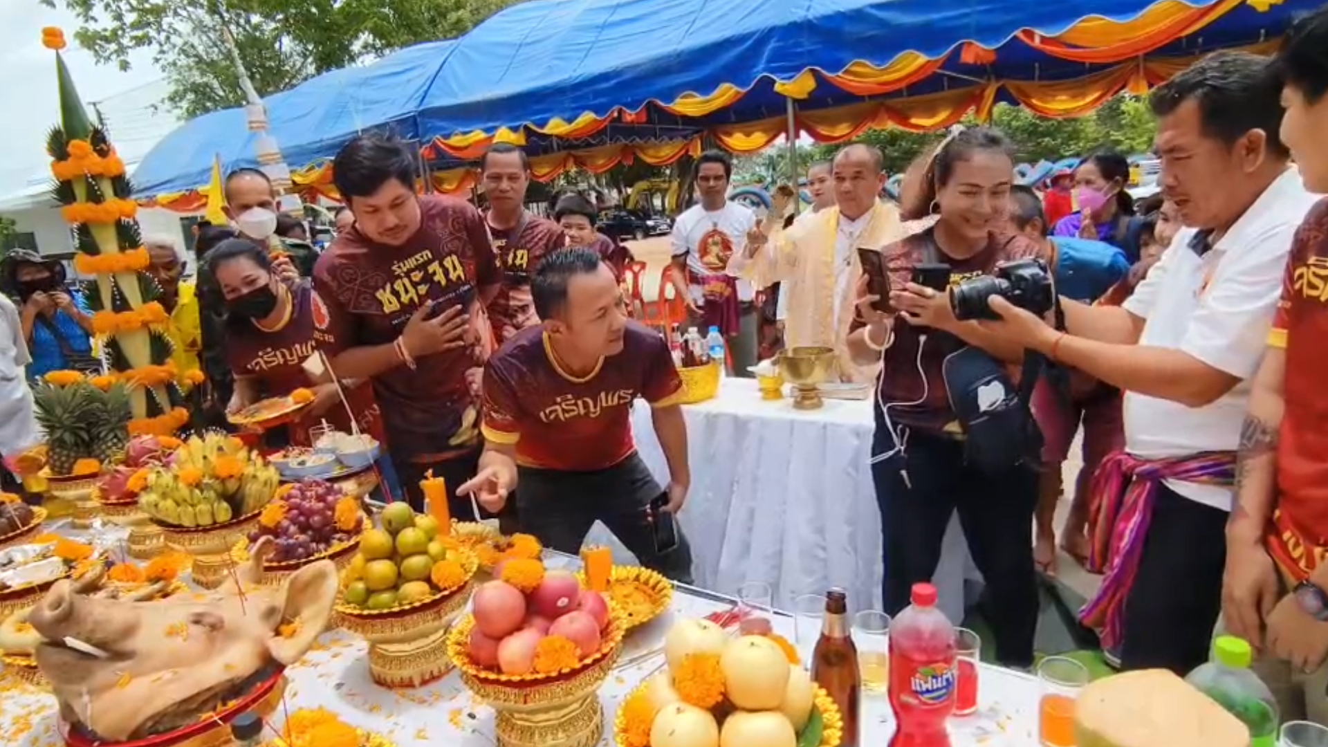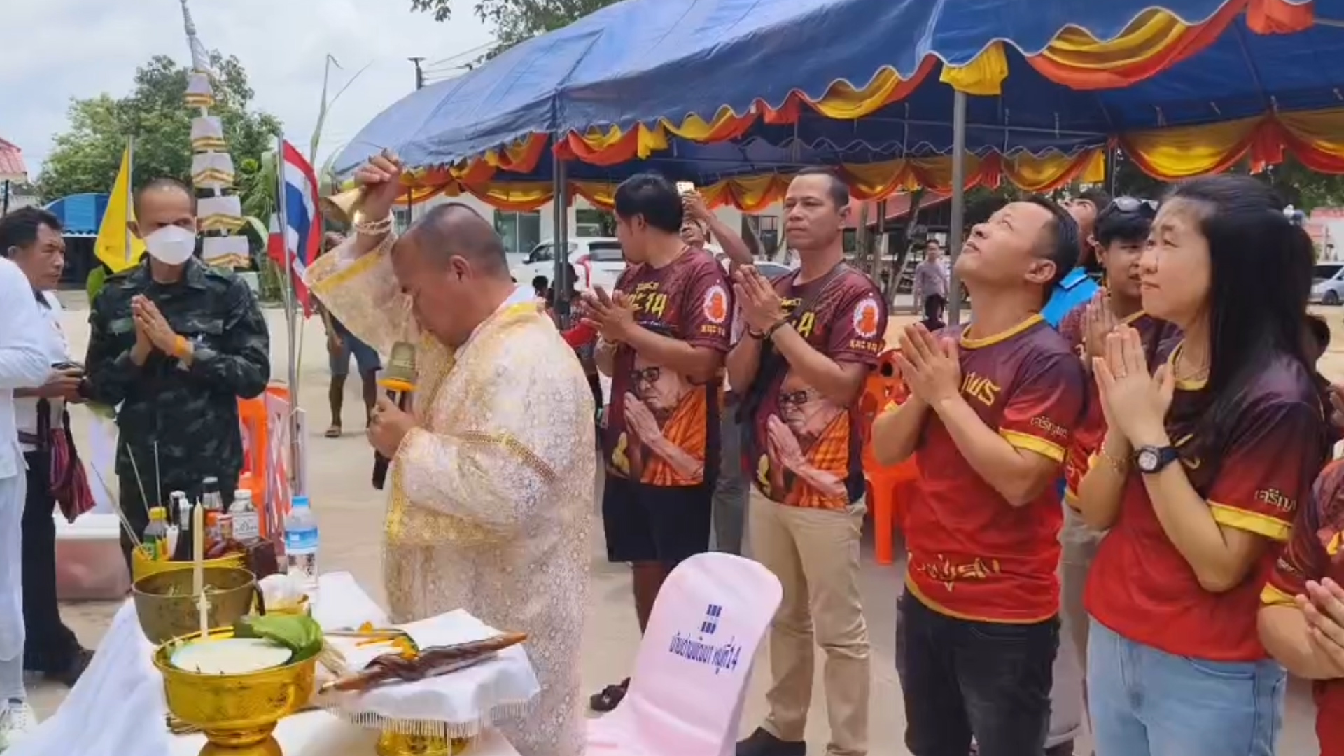 หลังจากนั้นในช่วงบ่าย หลวงปู่เฮง ปภาโส เจ้าอาวาสวัดพัฒนาธรรมาราม เป็นประธานฝ่ายสงฆ์ และหลวงตาแก่น คัมภีรมุนี เจ้าอาวาสวัดสุวรรณรัตน์โพธิยาราม ร่วมในพิธีพุทธาภิเษก นั่งปรกอธิษฐานจิตปลุกเสก เหรียญพระเครื่องรุ่น”เจริญพร ”(ล่าง) นั่งปรกอธิษฐานจิตอย่างเข้มขลังค์ ท่ามกลางประชาชนพุทธศาสนิกชนในพื้นที่ชายแดนไทย-กัมพูชาและจากต่างจังหวัดที่มาร่วมพิธีและรอรับแจกเหรียญพระเครื่องนับพันคน