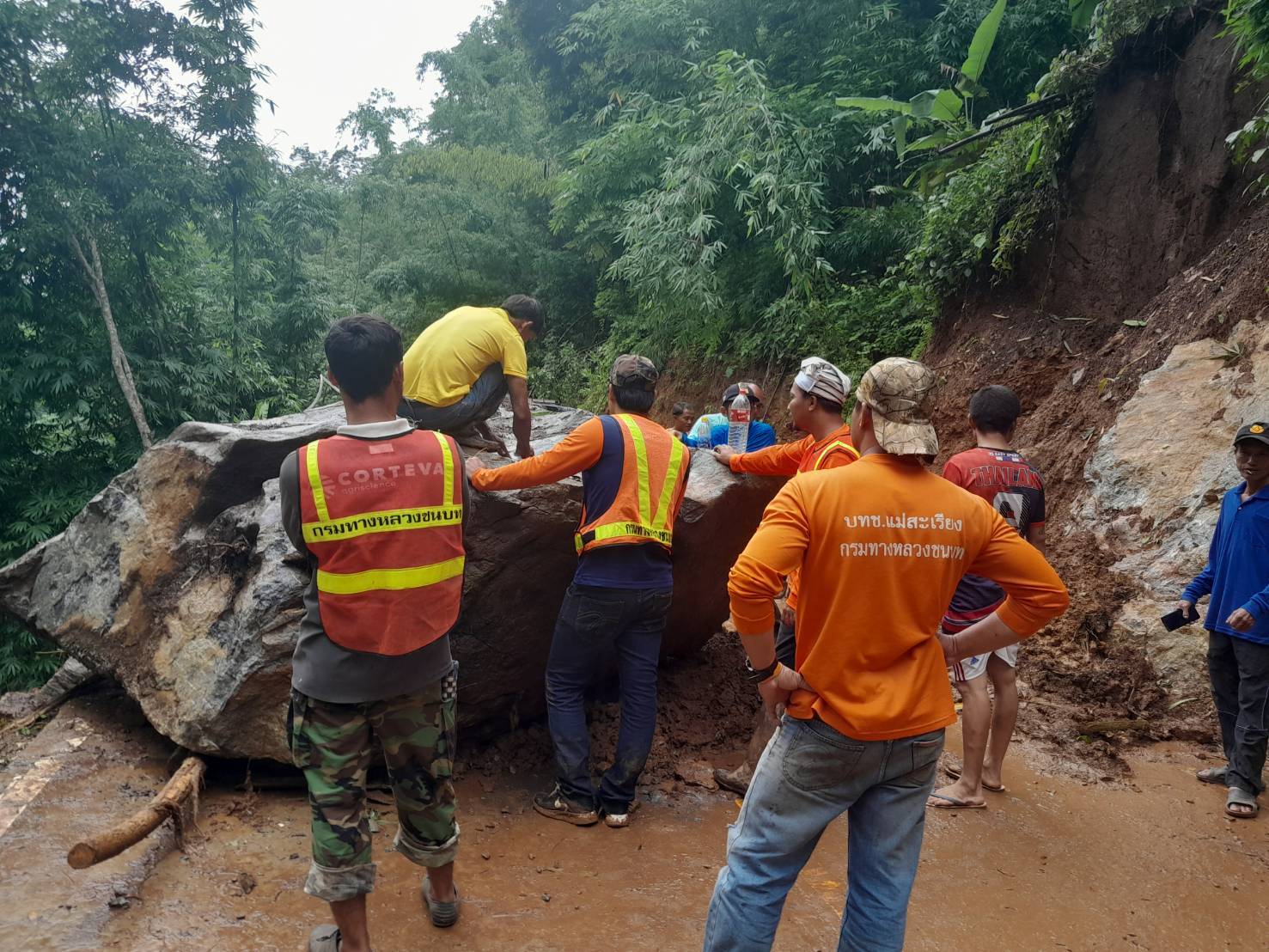 วันนี้( 07 ส.ค. 2566)ผู้สื่อข่าวรายงานว่า นายเชษฐา โมสิกรัตน์ ผู้ว่าราชการจังหวัดแม่ฮ่องสอน สั่งการให้หน่วยงานที่เกี่ยวข้อง ให้การช่วยเหลือประชาชน ที่ได้รับความเดือดร้อนจากกรณีดินสไลด์ ก้อนหินใหญ่ปิดเส้นทางถนนสาย มส.3017 แยกทางหลวงหมายเลข 105 – บ้านสบโขง อำเภอสบเมย จังหวัดแม่ฮ่องสอน โดยสำนักงานป้องกันและบรรเทาสาธารณะภัยจังหวัดแม่ฮ่องสอน ร่วมกับที่ทำการปกครองอำเภอสบเมย องค์การบริหารส่วนตำบลแม่สวด และประชาชนในพื้นที่ ร่วมกันระดมกำลังทั้งเครื่องจักร และเจ้าหน้าที่ เคลียร์ดินและก้อนหินที่ปิดทับเส้นทาง ซึ่งขณะนี้สามารถนำก้อนหินออกได้แล้ว รถสามารถสัญจรได้ตามปกติ