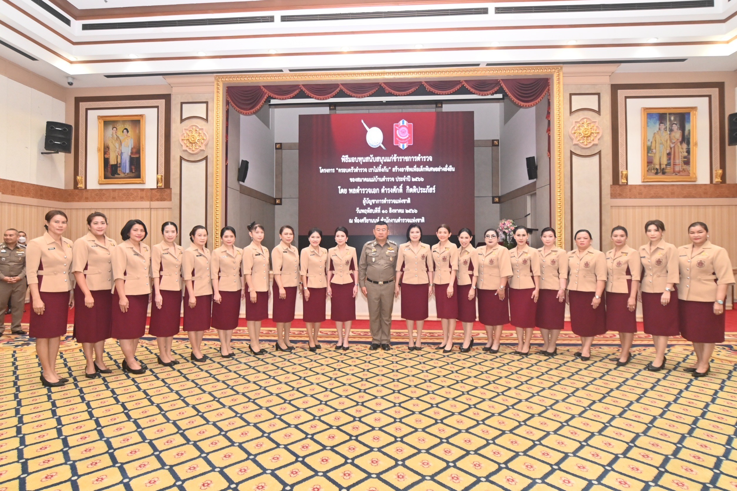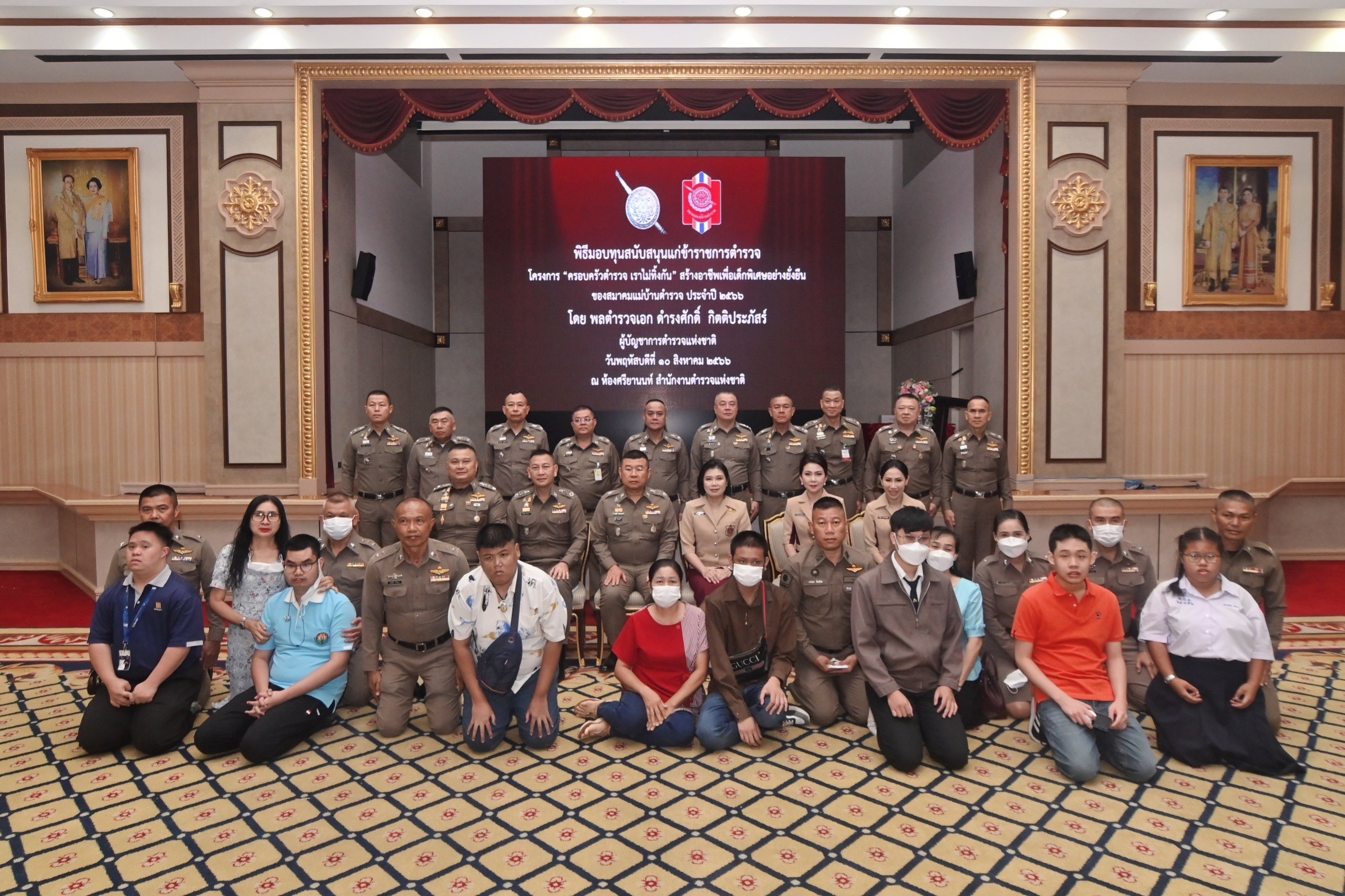 วันที่ 10 สิงหาคม 2566 เวลา 10.30 น. พล.ต.อ.ดำรงศักดิ์ กิตติประภัสร์ ผู้บัญชาการตำรวจแห่งชาติ (ผบ.ตร.) เป็นประธานมอบความช่วยเหลือ ครอบครัวข้าราชการตำรวจที่มีบุตรเป็นเด็กพิเศษ ตามโครงการ “ครอบครัวตำรวจ เราไม่ทิ้งกัน” เพื่อสร้างอาชีพเพื่อเด็กพิเศษอย่างยั่งยืน ของสมาคมแม่บ้านตำรวจ ประจำปี 2566 ณ ห้องศรียานนท์ ชั้น 2 อาคาร 1 สำนักงานตำรวจแห่งชาติ โดยมีคุณสุมนา กิตติประภัสร์ นายกสมาคมแม่บ้านตำรวจ , พล.ต.อ.กิตติ์รัฐ พันธุ์เพ็ชร รอง ผบ.ตร. และคณะผู้บังคับบัญชาของสำนักงานตำรวจแห่งชาติ และสมาคมแม่บ้านตำรวจ ร่วมพิธีการดำเนินโครงการ “ครอบครัวตำรวจ เราไม่ทิ้งกัน” เพื่อสร้างอาชีพเพื่อเด็กพิเศษอย่างยั่งยืน ของสมาคมแม่บ้านตำรวจ ประจำปี 2566 เป็นหนึ่งในโครงการพัฒนาคุณภาพชีวิตข้าราชการตำรวจของสมาคมแม่บ้านตำรวจ ตามนโยบายผู้บัญชาการตำรวจแห่งชาติที่ให้ความสำคัญด้านสวัสดิการกำลังพล ซึ่งสมาคมแม่บ้านตำรวจได้ดำเนินโครงการนี้ต่อเนื่องมาเป็นปีที่ 2 แล้ว มีวัตถุประสงค์ เพื่อพัฒนาคุณภาพชีวิตของครอบครัวตำรวจที่มีบุตรเป็นเด็กพิเศษ โดยส่งเสริมให้เด็กพิเศษได้ประกอบอาชีพที่มีรายได้ประจำ ซึ่งจะช่วยแบ่งเบาค่าใช้จ่ายในครอบครัวได้ โดยในการดำเนินโครงการ ได้มอบหมาย คุณลภัทธิตา จินตกานนท์ กรรมการบริหารสมาคม เป็นที่ปรึกษาโครงการ และได้รับความร่วมมือจากประธานชมรมแม่บ้านตำรวจแต่ละกองบัญชาการ หน่วยงานภาครัฐและเอกชน มีกองบัญชาการที่มีครอบครัวตำรวจเข้าร่วมโครงการ 18 กองบัญชาการ จำนวน 491 ครอบครัว รวมเงินทุนสนับสนุน เป็นจำนวนเงิน 5,888,700 บาท