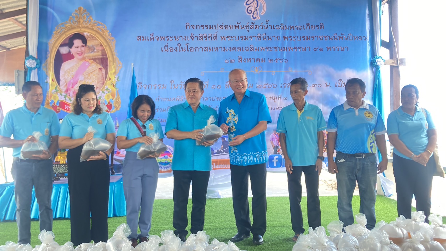 วันที่ 11 ส.ค.66 ที่บริเวณหน้าศาลเจ้าชายทะเลบ้านโรงโป๊ะ จ.ชลบุรี นายพิสิษฐ สิริสวัสดินุกูล นายอำเภอบางละมุง เป็นประธานเปิดกิจกรรมปล่อยพันธุ์สัตว์น้ำเฉลิมพระเกียรติ สมเด็จพระนางเจ้าสิริกิติ์ พระบรมราชินีนาถ พระบรมราชชนนีพันปีหลวง เนื่องในโอกาสมหามงคลเฉลิมพระชนมพรรษา 91 พรรษา 12 สิงหาคม 2566