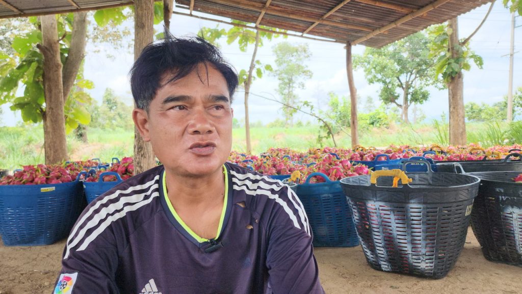 วันที่ 11 สิงหาคม 2566 เกษตรกรชาวสวนปลูกแก้วมังกร ต.ร่องจิก อ.ภูเรือ จ.เลย ที่ปลูกมากที่สุดในประเทศไทย โอดครวญปีนี้ราคาแก้วมังกรไม่ดี หน้าสวนขายอยู่ที่ 3-5 บาท วันหนึ่งขายได้ 3-4 ตัน หรือ 3,000-4,000 กิโล ส่วนแม่ค้าที่ขายริมทางถนนสาย อ.ด่านซ้าย-อ.ภูเรือ กลับขายดีกิโลละ 10 บาท จนรถที่ผ่านสัญจรไปมาแวะซื้อไปฝากญาติมิตร