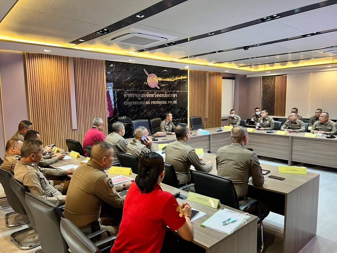 เพื่อกำชับการปฏิบัติหน้าที่ของเจ้าหน้าที่ ให้กวดขันจับกุมผู้ที่กระทำผิดกฎหมายจราจร เน้นการจับกุมความผิดกฎหมายจราจร ในข้อหาที่เป็นปัจจัยที่ส่งผลให้เกิดอุบัติเหตุใน 10 ข้อหาหลัก และความผิดอื่นที่เกี่ยวข้อง โดยมีผู้เข้าร่วมประชุม ประกอบด้วย หน.งานจราจร และเจ้าหน้าที่ผู้เกี่ยวข้องจาก 18 โรงพัก เข้าร่วมประชุม ณ ห้องประชุม CCOC ภ.จว.ฉะเชิงเทรา