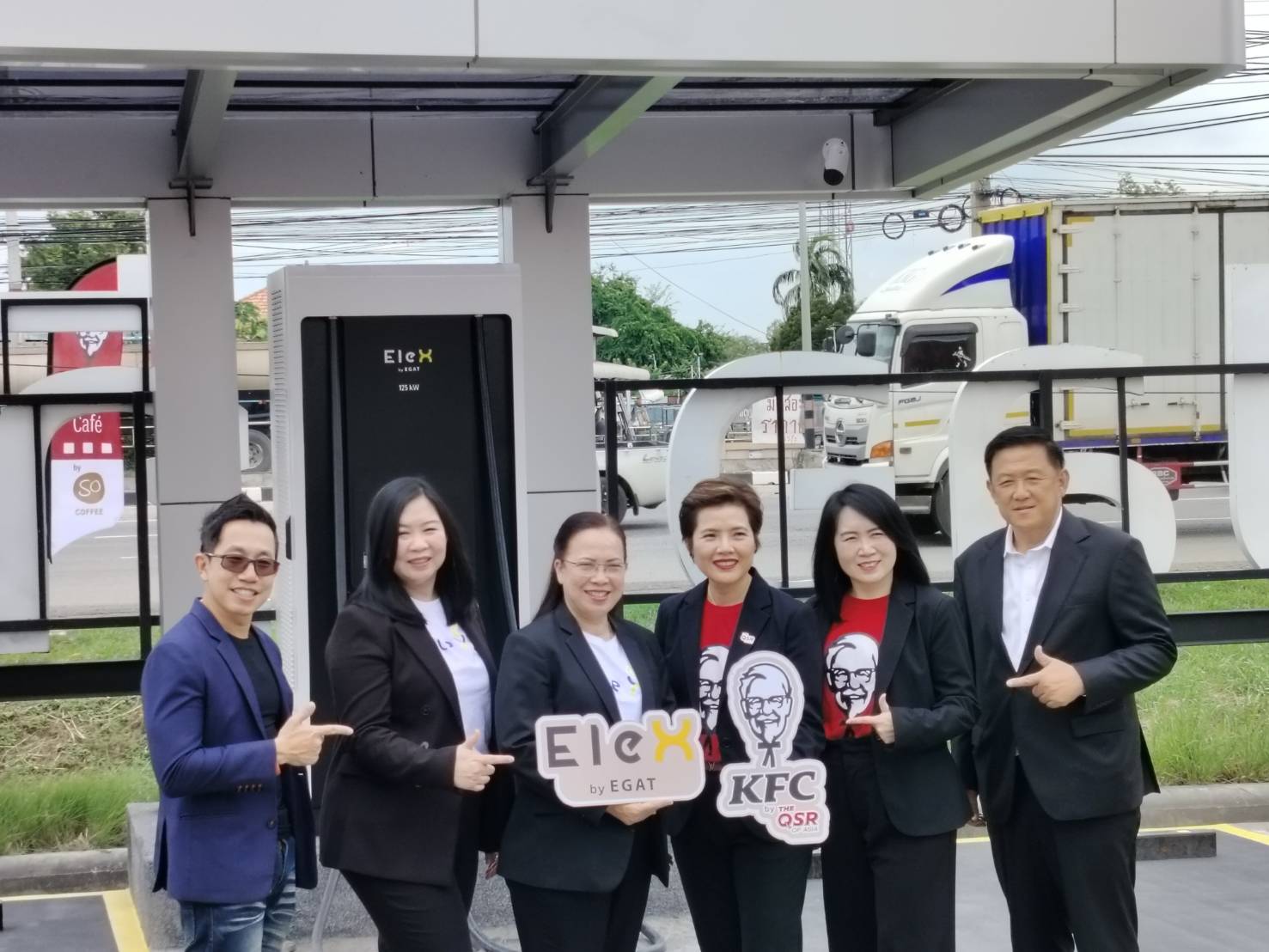 วันนี้ (8 กันยายน 2566) นางสาวศสัย ตังเดชะหิรัญ กรรมการผู้จัดการ บริษัท เดอะ คิว เอส อาร์ ออฟ เอเชีย จำกัด พร้อมด้วย นางสาวจิราพร ศิริคำ รองผู้ว่าการธุรกิจเกี่ยวเนื่อง การไฟฟ้าฝ่ายผลิตแห่งประเทศไทย (กฟผ.) และแขกผู้มีเกียรติ ร่วมพิธีเปิดให้บริการสถานีชาร์จ “EleX by EGAT” ณ KFC Green Store สาขา ดีโป บาย วนชัย อำเภอบ้านโพธิ์ จังหวัดฉะเชิงเทรา ร่วมสนับสนุนทุกก้าวสีเขียว เพิ่มความมั่นใจให้ผู้ใช้ EV เดินทางได้ทั่วไทย