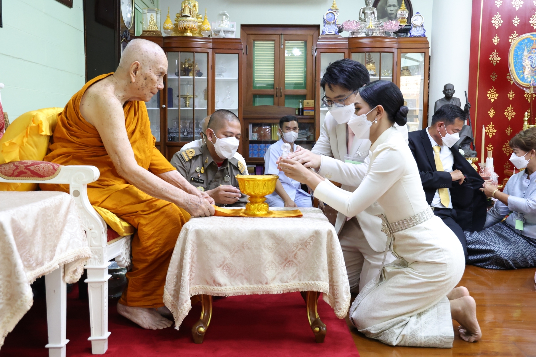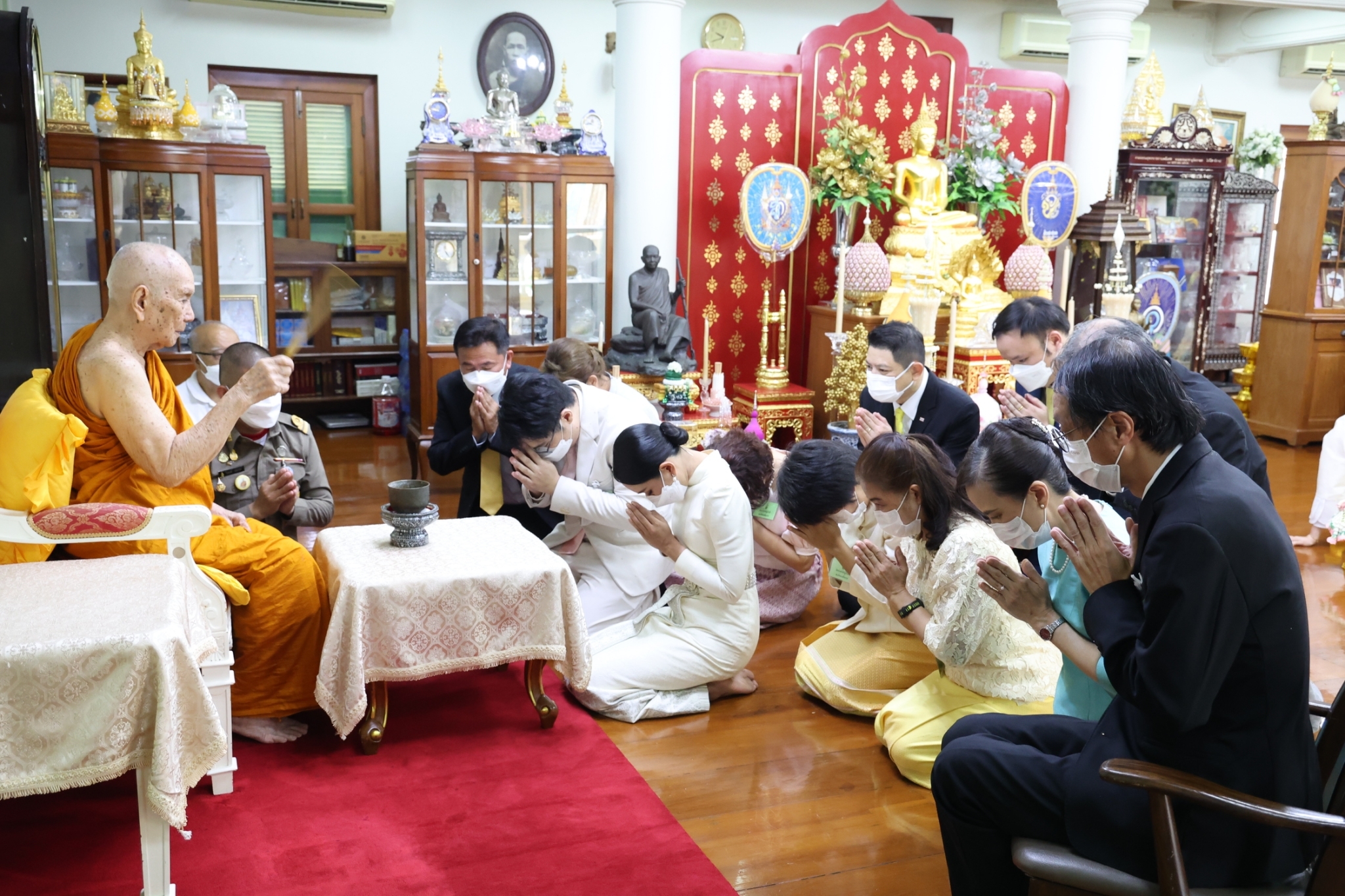 วันที่ 8 กันยายน ที่วัดราชบพิธสถิตมหาสีมารามราชวรวิหาร นายอภินนท์ สุชีวบริพนธ์ รองกรรมการผู้จัดการใหญ่ บริษัท โตโยต้า ไดฮัทสุ เอ็นจิเนียริ่ง แอนด์ แมนูแฟคเจอริ่ง จำกัด นำ นายวีรภัทร์ สุชีวบริพนธ์ บุตรชาย และ นส.ทิพวรรณ กานต์เจนภพ เข้าเฝ้ากราบขอประทานพรและรับน้ำพระพุทธมนต์จาก สมเด็จพระอริยวงศาคตญาณ สมเด็จพระสังฆราช สกลมหาสังฆปริณายก เพื่อความเป็นสิริมงคลสูงสุดของชีวิตคู่ ก่อนที่ทั้งคู่จะจูงมือเข้าประตูวิวาห์ ฉลองมงคลสมรส วันอังคารที่ 5 ธันวาคม 2566 ณ โรงแรมมิลเลนเนียม ฮิลตัน กรุงเทพฯ
