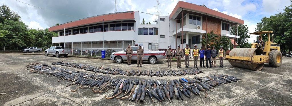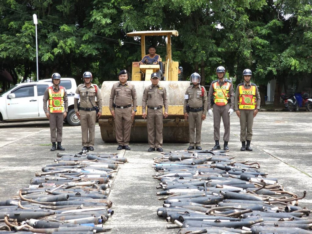 เมื่อวันนี้ 18 ก.ย.2566 เวลา 11.30 น.พ.ต.อ.ธีระศักดิ์ เจริญศรี ผกก.สภ.รัตนบุรี, พ.ต.ต.พรชัย สุขดี สวป.สภ.รัตนบุรี พร้อมด้วยเจ้าหน้าที่ตำรวจ สภ.รัตนบุรี ได้ร่วมกันทำลายท่อไอเสียรถจักรยานยนต์ที่ผิดกฎหมาย และยินยอมให้ตรวจยึดจำนวน 300 ท่อ ตรวจยึดจากรถดัดแปลงสภาพ เปลี่ยนท่อไอเสียให้เกิดเสียงดัง สร้างความเดือดร้อนให้กับประชาชน เพื่อป้องกันไม่ให้มีการกระทำผิดซ้ำอีกต่อไป.