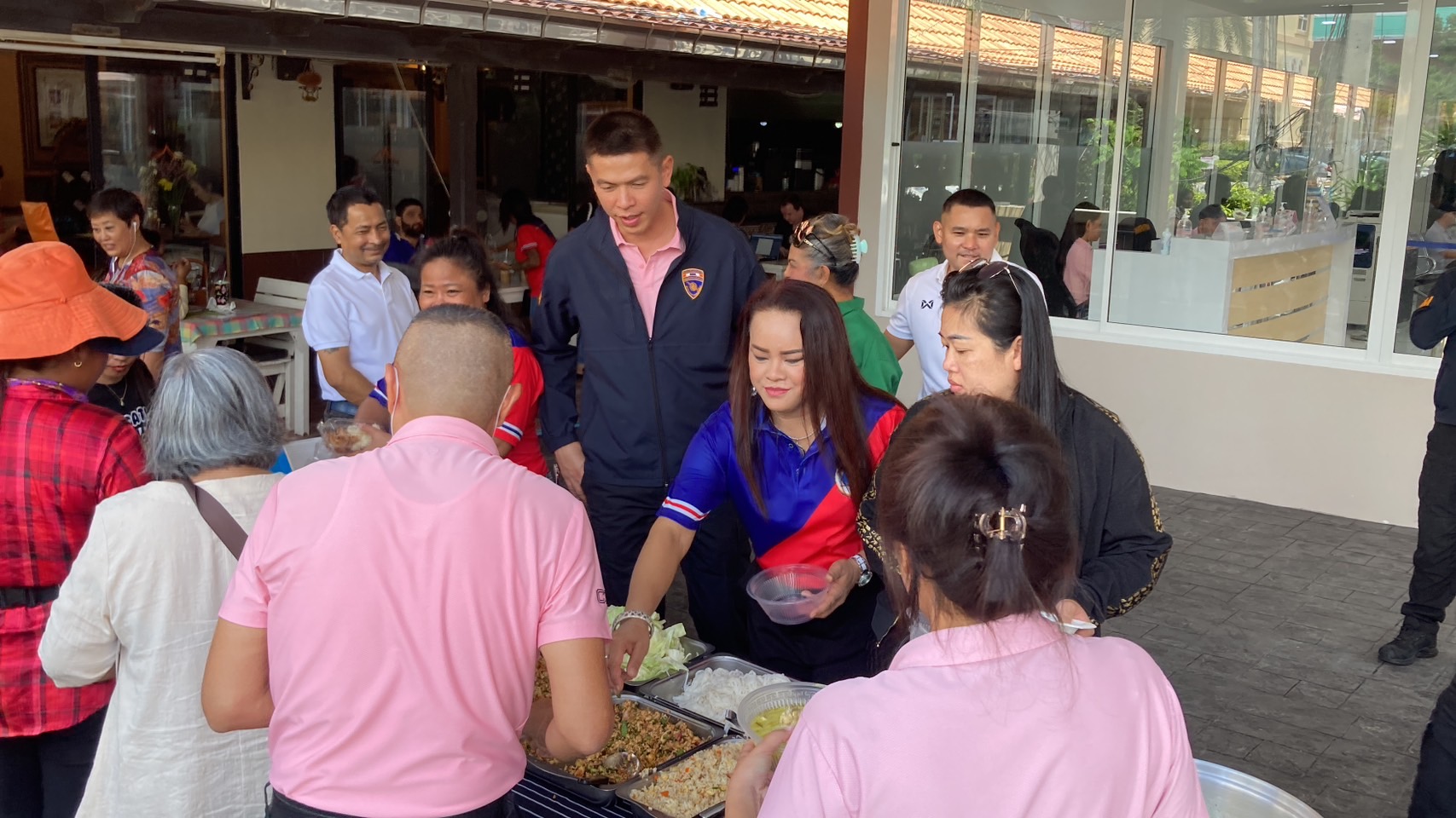 วันที่ 10 ต.ค.66 นางลำพึง แฮมิลตัน นายกสมาคมผู้ประกอบการธุรกิจกลางคืนเมืองพัทยา ร่วมกับนายบุญอนันต์ พัฒนสิน นายกสมาคมนักธุรกิจและการท่องเที่ยวเมืองพัทยา และนางอำพร แก้วแสง ประธาน กกต.ตร.สภ.เมืองพัทยา พร้อมด้วยพี่น้องสมาชิกผู้ประกอบการร่วมนำอาหารกลางวันมาจัดเลี้ยงให้เจ้าหน้าที่ตำรวจ ตม. บุคคลากร รวมทั้งประชาชนและนักท่องเที่ยวที่มาติดต่อราชการฟรีไม่มีค่าใช้จ่าย โดยมี พ.ต.อ.ปริญญา กลิ่นเกษร ผกก.ตม.ชลบุรี ร่วมให้การต้อนรับ