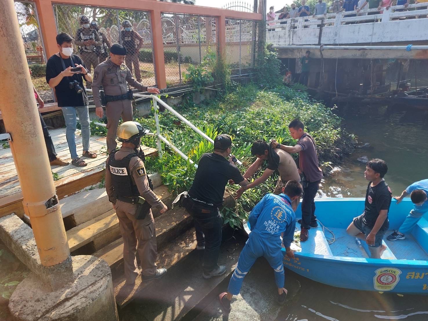 ล่าสุดในเวลา 08.15 นาที สามารถจับตัวคนร้ายได้แล้ว หลังจากพบว่า คนร้ายหลบซ่อนอยู่บริเวณซอกป่าริมคลองห่างไปจากสะพานบางพระหน้าวัดโยธานิมิตประมาณ 30-40 เมตร ซึ่งพ.ต.ท.ประเสริญ ฤทธิราช พร้อมเข้าหน้าที่กู้ภัย และตำรวจสายสืบ รวม 4 คนที่นำเรือท้องแบบอีกลำเข้าค้นหา และพบได้นำตัวขึ้นมา และพบว่า ตามร่างกายมีบาดเเผลจากการต่อสู้กันหลายแห่งจึงนำตัวไปส่งโรงพยาบาลตราดเพื่อปฐมพยาบาลก่อนนำตัวไปทำการสอบสวนถึงสาเหตุการทำร้ายร่างกายจนเสียชีวิตครั้งนี้ต่อไป