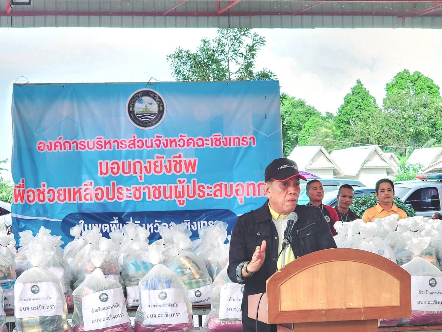 วันที่ 30 ตุลาคม 2566 นายกิตติ เป้าเปี่ยมทรัพย์นายกองค์การบริหารส่วนจังหวัดฉะเชิงเทรา มอบหมายให้ นายธนพัฒน์ เจียรสถิต รองนายก อบจ.ฉะเชิงเทรา นายสุนทร พานแก้ว นายสุเทพ ศิริจำรัส สมาชิกสภา อบจ. นางนุชนารถ ยุววรรณ ปลัด อบจ. พร้อมด้วยหัวหน้าส่วนราชการ และเจ้าหน้าที่ ร่วมลงพื้นที่มอบถุงยังชีพให้กับพี่น้องประชาชนในพื้นที่ 3 ตำบล ได้แก่ ตำบลหมอนทอง 300 ชุด ตำบลหนามแดง 200 ชุด และตำบลคลองหลวงแพ่ง 150 ชุดรวมถุงยังชีพ จำนวน 650 ชุด