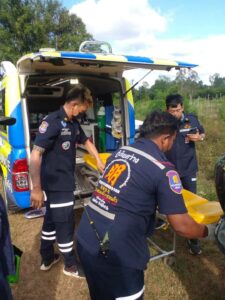 โดยเร็ว ด้านผู้ใหญ่บ้าน หมู่ที่ 3 บ้านท่าตาสี ต.ตาหลังใน อ.วังน้ำเย็น จ.สระแก้ว ได้รับรายงานว่ามีช้างป่าเข้า ทำร้ายเจ้าหน้าที่ป่าไม้ ซึ่งทราบว่า เป็นชุดเจ้าหน้าที่ ผลักดันช้างป่า ของเขตรักษาพันธ์สัตว์ป่า ได้รับบาดเจ็บ 1 นาย เป็นชาย อายุประมาณ 26 ปี ทางฝ่ายปกครอง จึงประสานเจ้าหน้าที่หน่วยกู้ภัย สว่างสระแก้วจุดวังน้ำเย็น พร้อมเจ้าหน้าที่ชุดกู้ชีพกู้ภัย จุดวังน้ำเย็น เดินทางลงพื้นที่เกิดเหตุทันที และเข้าให้การช่วยเหลือปฐมพยาบาล เบื้องต้น และรีบนำตัวผู้ได้รับบาดเจ็บส่ง รพ.วังน้ำเย็น ด่วน เจ้าหน้าที่กู้ภัยเปิดเผยกับผู้สื่อข่าวว่าขณะ เข้าไปช่วยผู้บาดเจ็บ เป็นไปด้วย ความ อันตราย เพราะขณะนั้น ช้างป่าตัวดังกล่าว ยังซุ่ม อยู่บริเวณ ใกล้ๆ ซึ่งห่างจากตัวคนเจ็บ ประมาณ 20 เมตร จึงมีเจ้าหน้าที่ป่าไม้ ยืนล้อมรอบ ผู้บาดเจ็บไว้ และคอย ยิงปืน ลงพื้นดินเพื่อสกัด ไม่ให้ช้างป่า ที่กำลังหวาดกลัว เข้ามาใกล้ขณะกำลัง ปฐมพยาบาล เบื้องต้น ให้กับผู้บาดเจ็บ และจึงรีบ นำตัวผู้บาดเจ็บออกจาก ที่เกิดเหตุ และเจ้าหน้าที่ รีบ ถอนกำลัง ออกมาจากจุด เกิดเหตุ ดังกล่าว เพื่อป้องกัน อันตราย