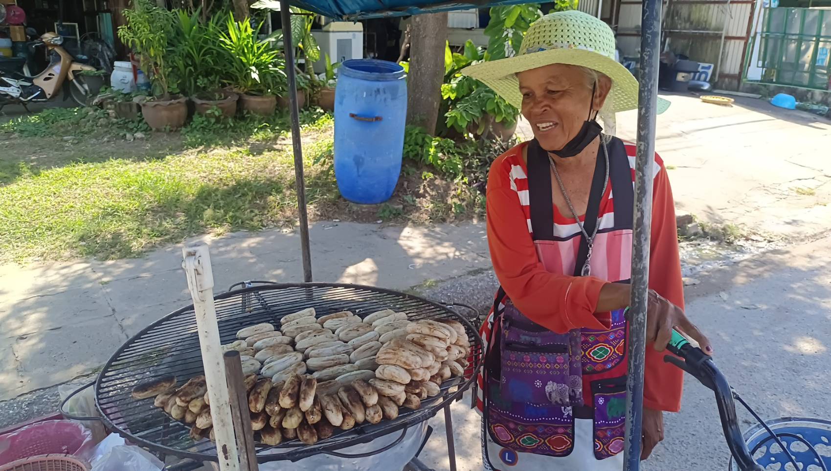เมื่อวันที่ 6 พ.ย. 2566 ที่อำเภอบำเหน็จณรงค์ จ.ชัยภูมิ ผู้สื่อข่าวราบยงานว่าพบ คุณป้าวัย 62 ปี สู้ชีวิตได้ปั่นรถจักรยานสามล้อพ่วงข้างออกตะเวนขายกล้วยปิ้งสูตรโบราณ น้ำจิ้มรสเด็ด ไปตามถนน และจอดประจำที่บริเวณหน้าเซเว่น อ.บำเหน็จณรงค์ ทำเงินสร้างรายได้ไม่น้อยกว่าวันละ 600-1,000บาท ต่อวัน ขายมานานกว่า10ปี โดยขายในราคาห่อล่ะหรือถุงละ 20 บาท ใช้เวลาขายเพียงวันละ 4-5 ชั่วโมงก็กลับเข้าบ้านไปทำภารกิจอื่นต่อที่บ้านได้อีกด้วย