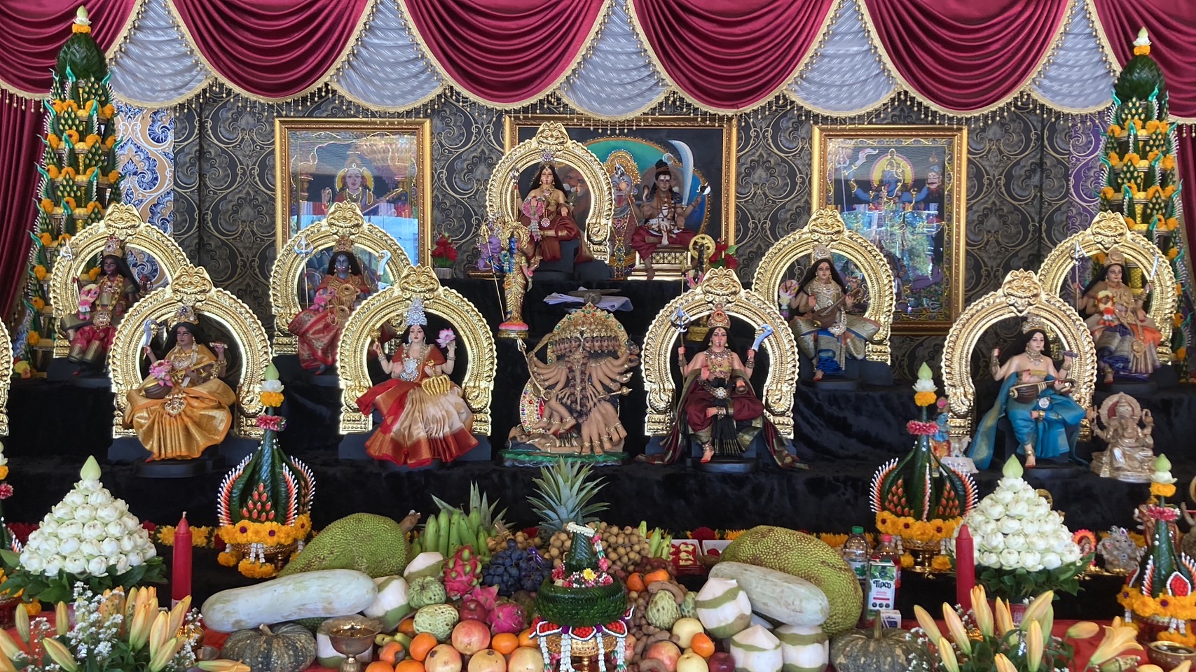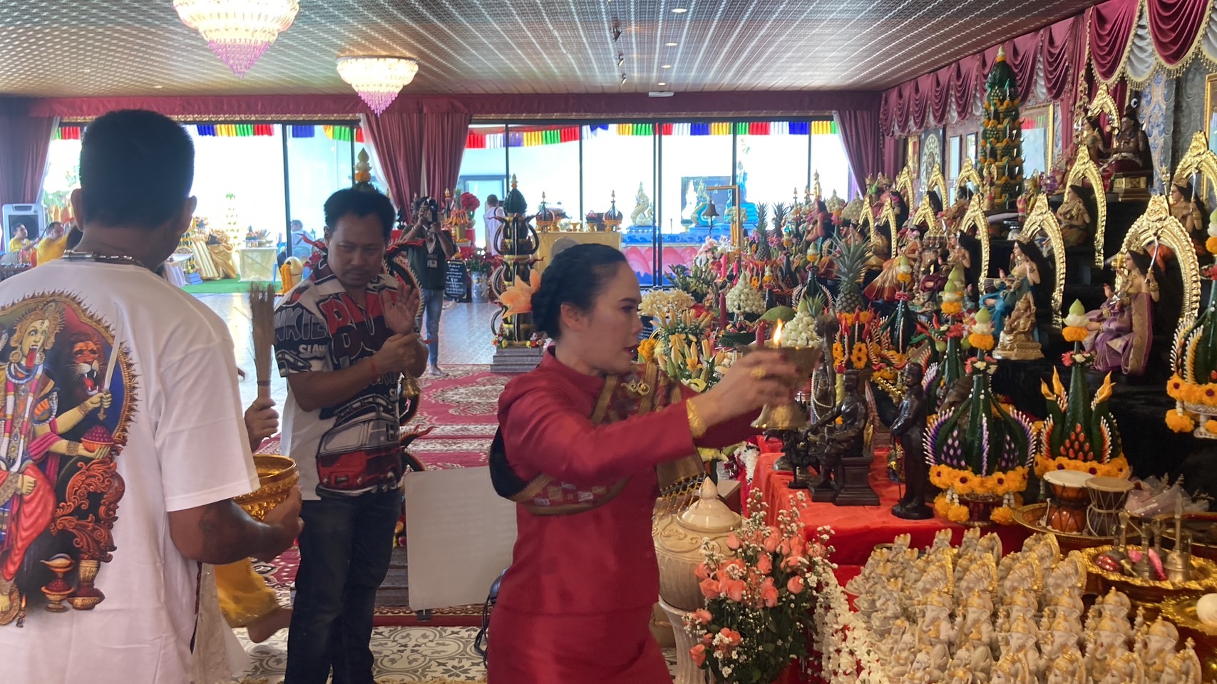 ในพิธีได้จัดขณะปี่พาทย์ลาดตะโพน โดยครูแม่แดง นวมินทร์ พิธีถวายสักการะชุมนุมเทพ และพิธีนาฎยัม สรงน้ำ ‘เทวีมหากาลีอวตารจักรวาลชนนี’ พิธีก่อกองกูล พิธีดูเซร่าโซฮาอารตี โดยคณะพราหมณ์โซฮาบารมี และพิธีปิดธรณีตามลำดับพิธีการ