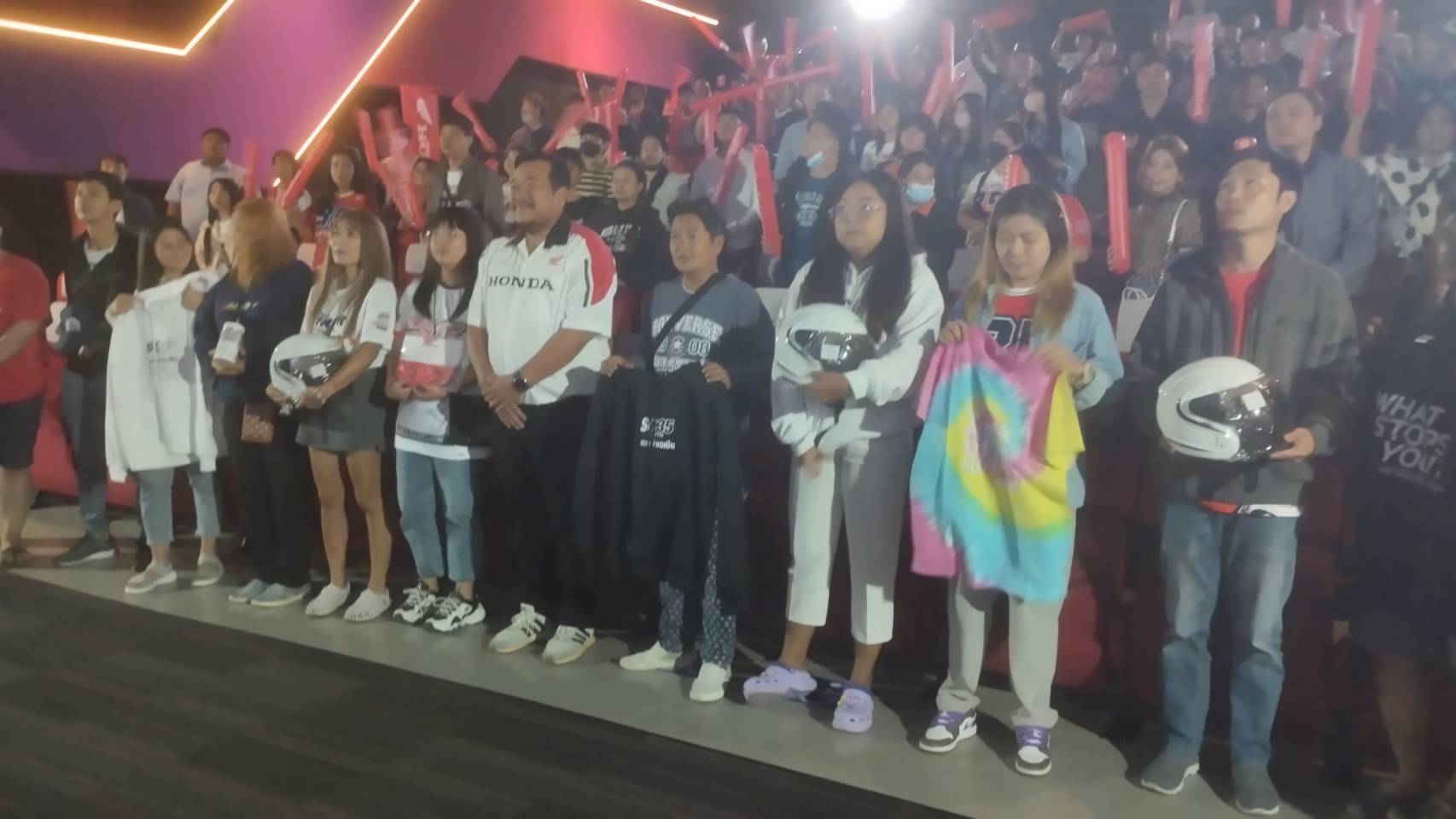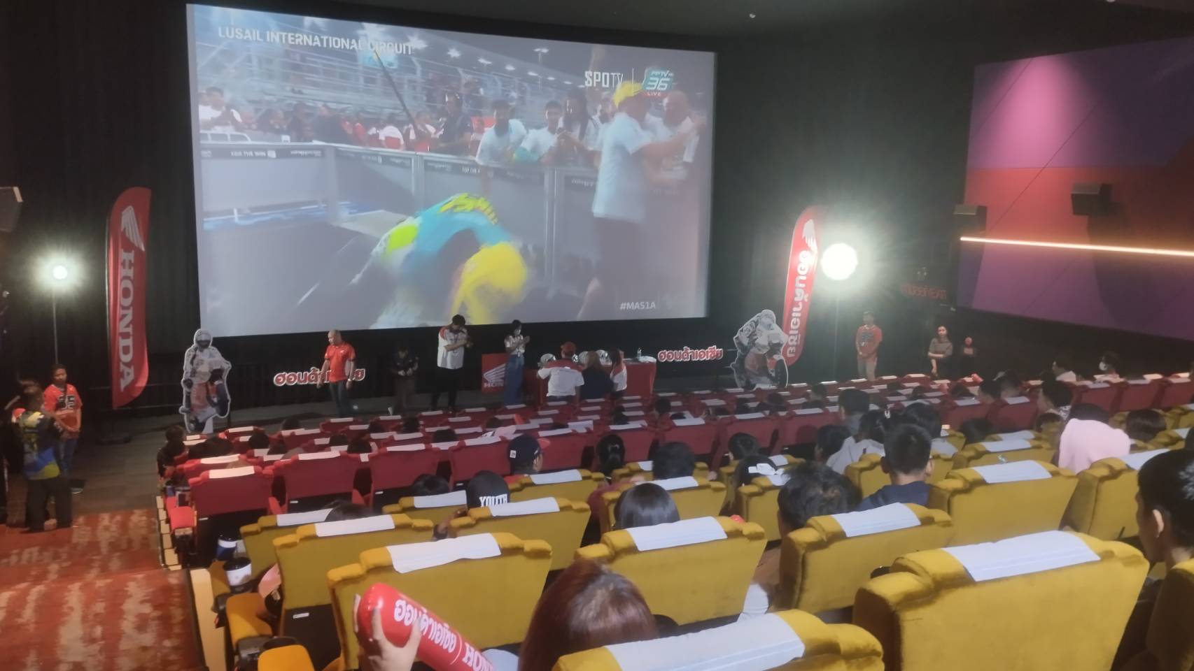 เมื่อเวลา19.00 น.ของวันที่ 19 พ.ย.ที่โรงภาพยนตร์ SF Cinema ศูนย์การค้าโรบินสันไลฟ์สไตล์บ่อวิน บริษัทเอเชียซิตี้มอเตอร์ มอไซค์ฮอนด้าชลบุรี โดยคุณธนากร พงษ์อุปถัมภ์ ผู้บริหารฮอนด้าเอเชียซิตี้ มอเตอร์ไซค์ ฮอนด้าชลบุรี จัดกิจกรรมให้กลุ่มลูกค้าที่ใช้รถจักรยานยนต์ Honda รับชมหนังรอบพิเศษเรื่อง”The Marvels” เดอะ มาร์เวลส์ “พร้อมกันร่วมเชียร์ ก้อง สมเกียรติ จันทรา หนึ่งเดียวของไทย ในศึก MOTOGTรายการ QATAR GRAND PRIX 2023 รอบ NIGHT RACE ถ่ายสดจากประเทศจากสนามโลเซล อินเตอร์เนชั่นแนล เซอร์กิต ประเทศกาตาร์บนจอยักษ์ จำนวน 150 ที่นั่งที่โรงภาพยนตร์ SF Cinema พร้อมแจกของรางวัลให้กับผู้โชคดี สำหรับ ก้อง สมเกียรติ จันทรานั้นเป็นนักบิดดาวรุ่ง! ผู้สร้างประวัติศาสตร์ให้ชาติไทยในศึก Moto2 เส้นทางความสำเร็จของ “ก้อง” สมเกียรติ จันทรา หมายเลข 35 นักบิดดาวรุ่งจากโครงการ “ฮอนด้า เรซ ทู เดอะ ดรีม” ซึ่งก้องเป็นคนไทยคนแรกที่สร้างประวัติศาสตร์กีฬามอเตอร์สปอร์ตให้ชาวไทย โดยการคว้าโพเดียมอันดับ 1 ได้ถึง 2 ครั้ง ในเวิลด์ กรังด์ปรีซ์ รายการโมโตจีพี รุ่นโมโตทู ครั้งแรกในประเทศอินโดนีเซีย ปี 2022 และอีก 1 โพเดียมจากสนามโมเตกิ ประเทศญี่ปุ่นที่เพิ่งผ่านมา