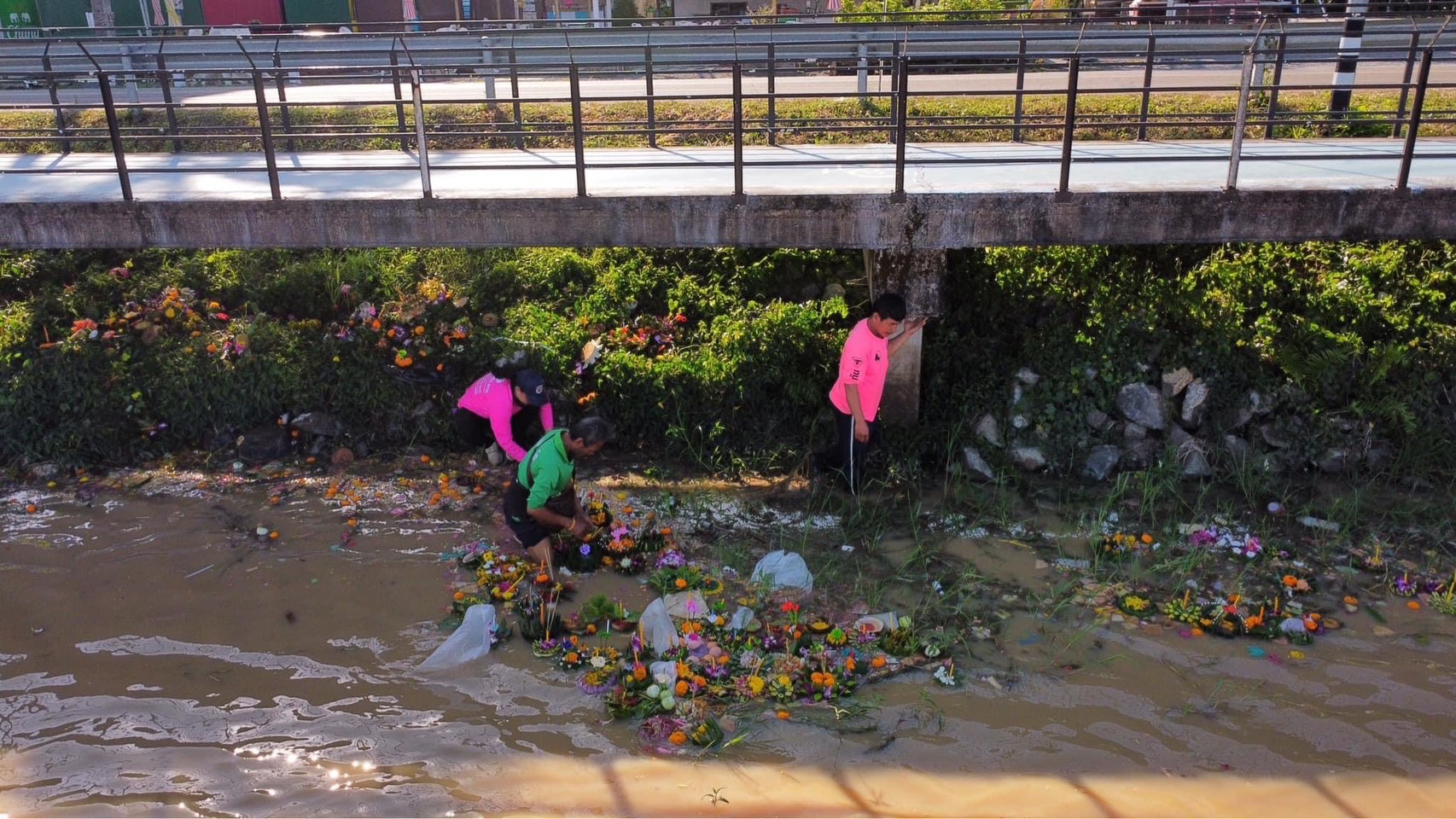 จ.ตราด/นายสุรศักดิ์ ภูติภัทร์ นายกเทศมนตรีเมืองตราดสั่งการให้พนักงาน เจ้าหน้าที่เทศบาลเมืองตราด จำนวน 10นาย เร่งเก็บกระทงรอบสระสวนพุทธธรรมวัดไผ่ล้อม ตำบลบางพระ อำเภอเมือง จังหวัดตราดที่จัดลอยกระทง พบมีขยะจำนวนมากที่ประชาชนชาวตราดและแรงงานต่างด้าวที่มาทำงานในพื้นที่จังหวัดตราด นำกระทงมาลอย เก็บใส่ ตะกร้า นำรถหกล้อเทศบาล มาใส่ขยะเพื่อเอาไปทิ้ง พบว่าปีนี้ ใช้กระทงใบตองจำนวนมาก กระทงขนมปังประมาณร้อยละ 20 ส่วนกระทงโฟมไม่พบเลย โดยคาดว่าขยะกระทงใกล้เคียงกับปีที่ผ่านมา
