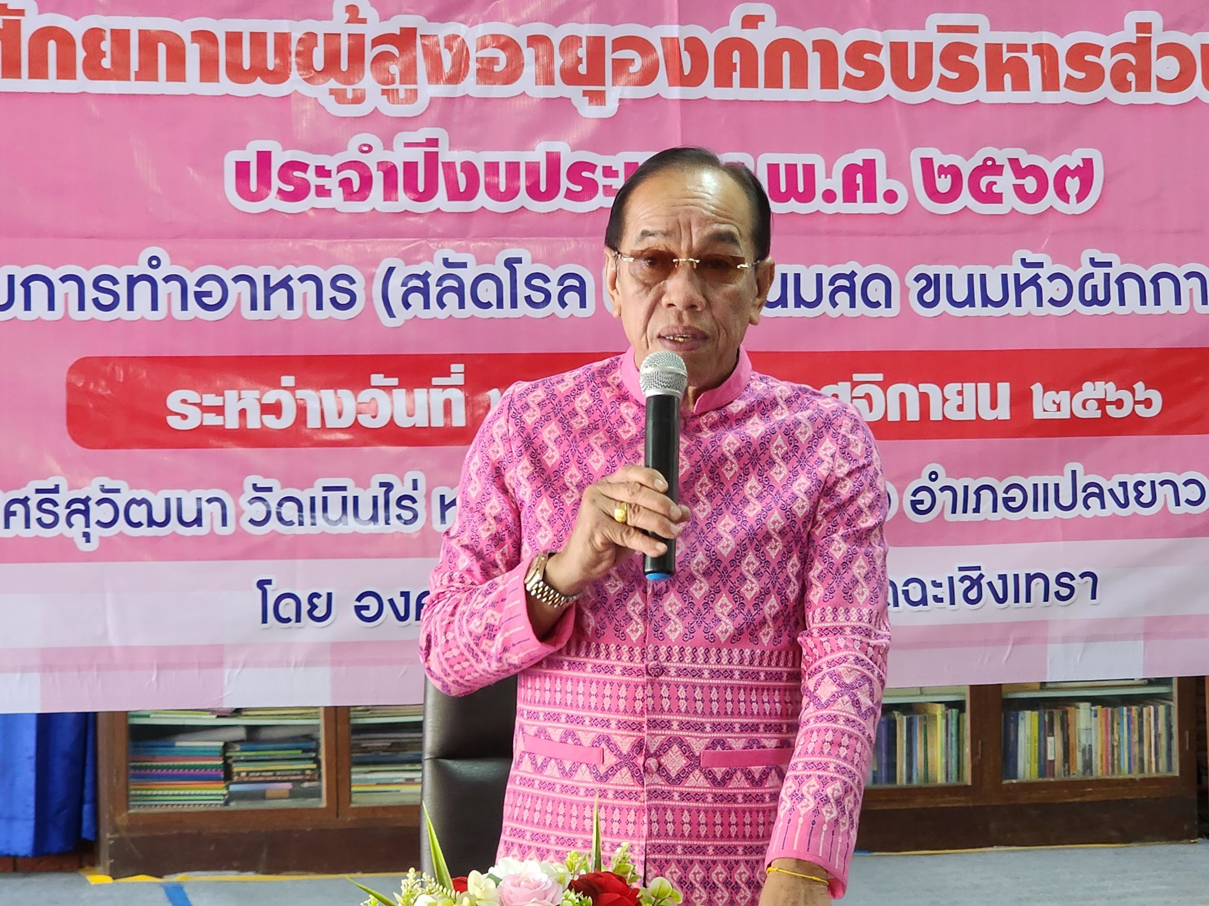 วันที่ 28 พฤศจิกายน 2566 นายกิตติ เป้าเปี่ยมทรัพย์ นายกองค์การบริหารส่วนจังหวัดฉะเชิงเทรา มอบหมายให้ นายธนพัฒน์ เจียรสถิต รองนายกองค์การบริหารส่วนจังหวัดฉะเชิงเทรา เป็นประธานเปิดโครงการพัฒนาศักยภาพผู้สูงอายุองค์การบริหารส่วนจังหวัดฉะเชิงเทรา ประจำปีงบประมาณ พ.ศ.2567