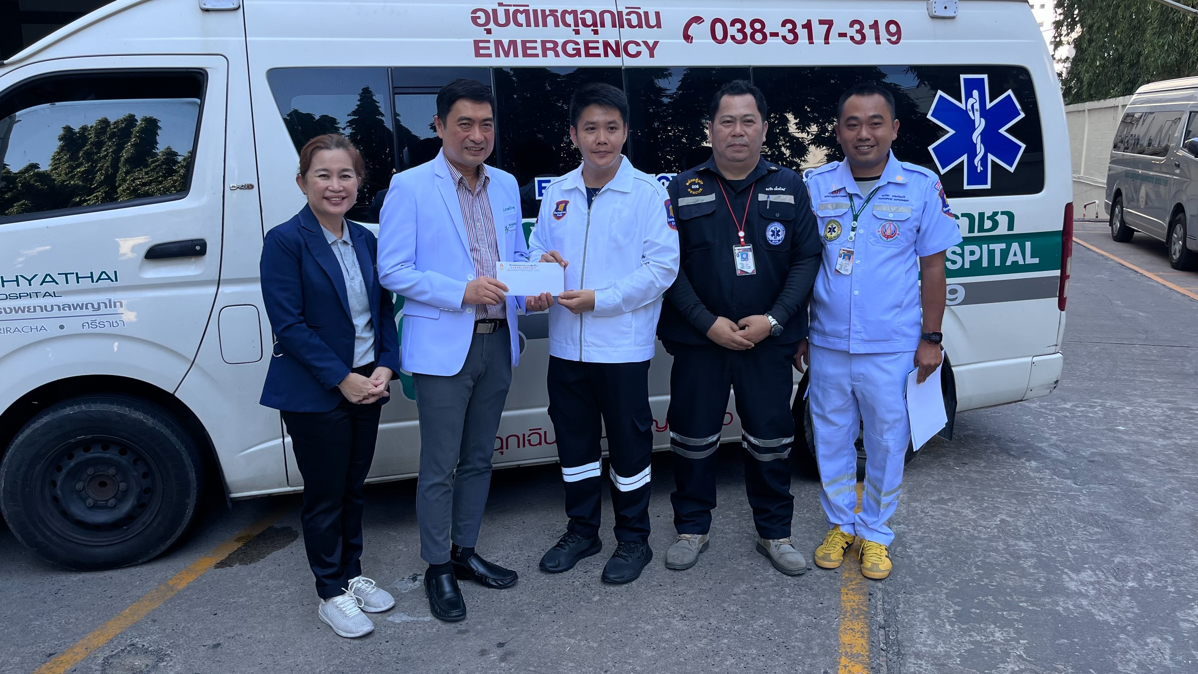 เมื่อเวลา 11.00 น. วันที่ 8 ธันวาคม ที่โรงพยาบาลพญาไท ศรีราชาโดย นพ.ชาญชัย ลี้สมประสงค์ ผู้อำนวยการ โรงพยาบาลมอบหมายให้ ผู้อำนวยการแพทย์ นพ.มาโนชย์ พานทองวิริยะกุล คุณประวีณ คุณานุพันธ์ชัย รองหัวหน้าหน่วยกู้ภัยศีลธรรมสมาคมบ้านบึง(สำนักงานใหญ่)พร้อมด้วย คณะที่ปรึกษา คณะกรรมการ ศีลธรรมสมาคมบ้านบึงจุดบ่อวิน และ อาสาสมัครศีลธรรมสมาคมบ้านบึง จุดบ่อวิน รับมอบ รับมอบรถพยาบาลฉุกเฉิน (AMBULANCES) จำนวน 1 คัน