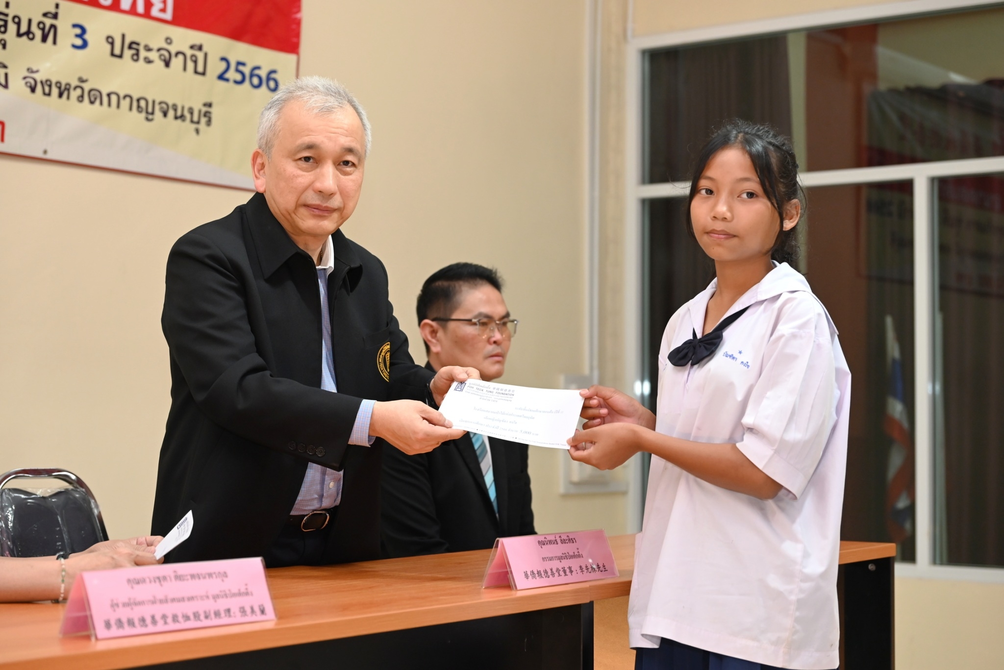 เมื่อวันพฤหัสบดีที่ 7 ธันวาคม 2566 มูลนิธิป่อเต็กตึ๊ง นำโดย นายนิพนธ์ ลีละศิธร กรรมการ พร้อมด้วย นางสาวดวงชุตา ติยะพจนพรกุล ผู้ช่วยผู้จัดการฝ่ายสังคมสงเคราะห์ นำทีมแผนกส่งเสริมการศึกษาและอาชีพลงพื้นที่จังหวัดกาญจนบุรี มอบทุนการศึกษาระดับมัธยมศึกษาสำหรับเยาวชนโรงเรียนตำรวจตระเวนชายแดน รุ่นที่ 3 (ครั้งที่ 1) ประจำปี 2566 ประกอบด้วย โรงเรียนราชประชานุเคราะห์ 45 อำเภอพนมทวน โรงเรียนร่มเกล้ากาญจนบุรี (ในพระราชดำริ) โรงเรียนทองผาภูมิวิทยาคม โรงเรียนสมาคมป่าไม้แห่งประเทศไทยอุทิศ โรงเรียนบ้านเกริงกระเวีย โรงเรียนบ้านห้วยเสือ อำเภอทองผาภูมิ และโรงเรียนอุดมสิทธิศึกษา อำเภอสังขละบุรี รวม 7 แห่ง จำนวน 60 ทุน รวมงบประมาณทั้งสิ้น 450,000 บาท (สี่แสนห้าหมื่นบาทถ้วน) นอกจากนี้ มูลนิธิฯ ยังได้มอบผ้าห่มกันหนาวพร้อมขนมให้กับนักเรียนที่เข้ารับมอบทุนฯ โดยจัดพิธีมอบทุนการศึกษา ณ หอประชุม โรงเรียนทองผาภูมิวิทยาคม อำเภอทองผาภูมิ จังหวัดกาญจนบุรี