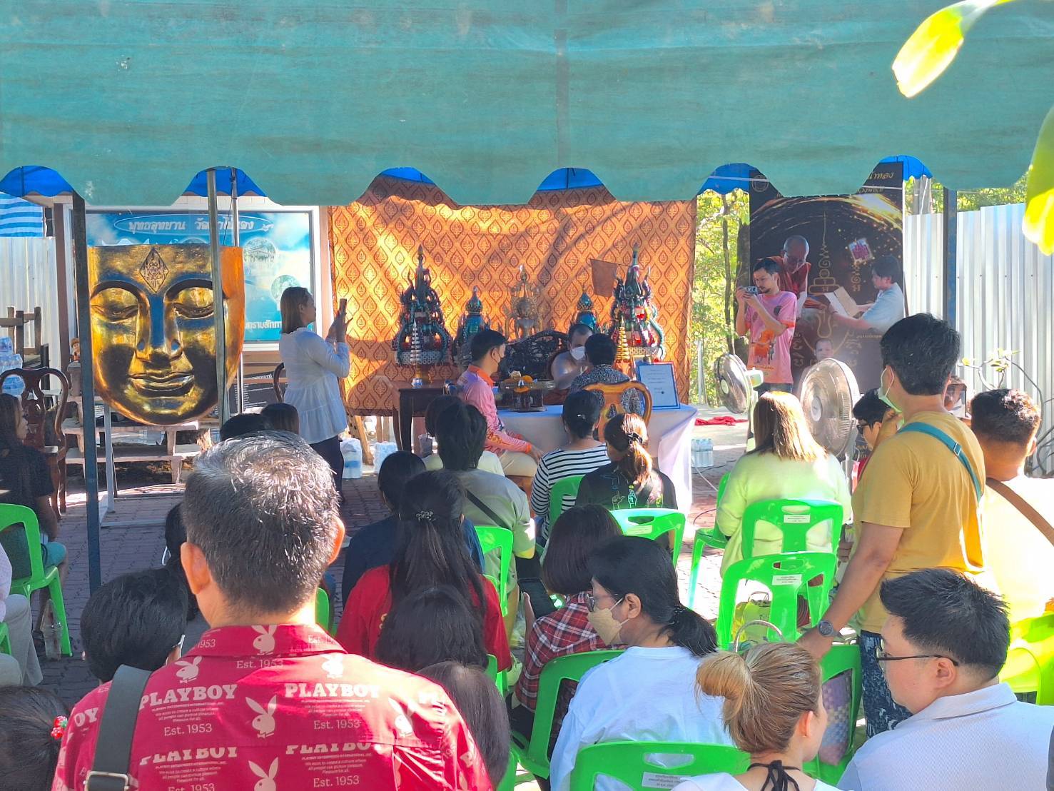 ตั้งแต่เวลา09.00น.( 9 ธ.ค.2566) ซึ่งเป็นวันหยุดและวันมหามงคลที่เชื่อกันว่าเป็นวันดีวันที่9 ของเดือนสิ้นปี ที่วัดเขาไม้แดง ตำบลบางพระ อำเภอศรีราชา ได้มีประชาชนพากันทยอยเดินทางมาเจิม“พระพุทธพักตร์หน้าทอง”กันอย่างไม่ขาดสายทั้งวัน โดยพากันมานั่งรอคิวและยืนรอคิวเพื่อเข้าเจิมหน้ากัน โดยวิชาเจิม“พระพุทธพักตร์หน้าทอง”พระครูปลัดนพภัณฑ์ ผู้ช่วยเจ้าอาวาสวัดเขาไม้แดง ศิษย์เอกหลวงพ่อสง่า ผู้รับครอบครูและครอบมือในการทำการเจิมยันต์พระพุทธพักตร์หน้าทอง กล่าวว่า ตัวยันต์พระพุทธพักตร์หน้าทอง นั้น ท่านหลวงพ่อสง่า ติกขวีโร ได้นำเข้าร่วมพิธีพุทธาภิเษกมา อย่างมากมายกว่า 30พิธี เกจิอาจารย์ชื่อดังกว่า999รูปทั่วประเทศไทย และทุกครั้งที่มีพิธีพุทธาภิเษกวัตถุมงคลที่ใดที่ได้รับนิมนต์ไป ทางหลวงพ่อสง่า ท่านจะนำไปเข้าลงคาถาพร้อมให้พระเกจิอาจารย์ชื่อดัง ทำพิธีปลุกเสกยันต์มาโดยตลอด พระเกจิอาจารย์ที่ร่วมปลุกเสกยันต์พระพุทธพักตร์หน้าทอง รวม 999 รูป พอดี