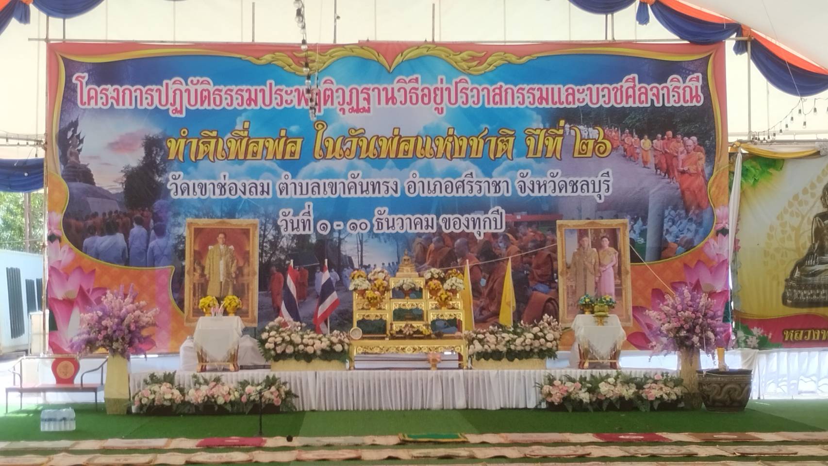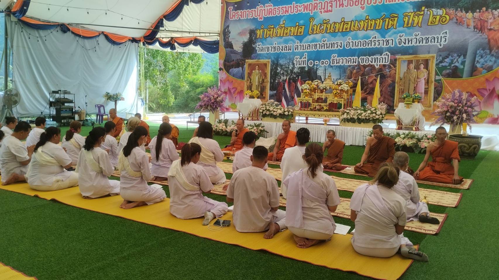 เมื่อเวลา 14.00 น. วันที่ 10 ธันวาคม 2566 ที่วัดเขาช่องลม ตำบลเขาคันทรง อำเภอศรีราชา พระครูปลัดวัณณวัฒน์ กิตฺติธโร เจ้าอาวาสวัดเขาช่องลม ได้เป็นองค์ประธานลาสิกขาในการที่อุบาสก-อุบาสิกา ร่วมบวชศีลจาริณี (ชีพราหมณ์) 25 คนได้ปฏิบัติธรรมทำดีเพื่อพ่อ ในวันพ่อแห่งชาติ สร้างบารมีถวายเป็นพระราชกุศลแด่ พระบาทสมเด็จพระบรมชนกาธิเบศร มหาภูมิพลอดุลยเดชมหาราช บรมนาถบพิตร ในหลวง รัชกาลที่ 9 โดยร่วมกันสวดมนต์ทำวัตรเย็น เจริญจิตภาวนา นั่งสมาธิ ด้วยการบำเพ็ญความดี รักษาศีล เจริญจิตภาวนาและปฏิบัติธรรม เพื่อเป็นการทำนุบำรุง ส่งเสริมพระพุทธศาสนาให้เจริญรุ่งเรืองสถาพรสืบไป และถวายเป็นพระราชกุศลแด่พระองค์ท่านมาตั้งแต่วันที่1-10ธันวาคม 2566
