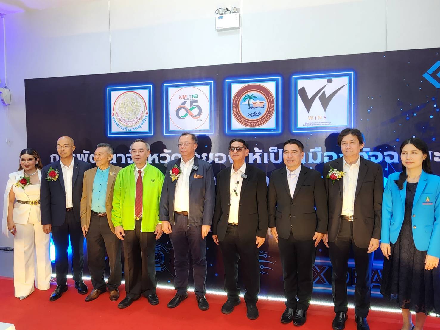 เมื่อเวลา 13.00 น.วันที่ 14 ธ.ค.ที่ห้องประชุม 302 ชั้น 3 อาคารคณะบริหารธุรกิจ มหาวิทยาลัยเทคโนโลยีพระจอมเกล้าพระนครเหนือ(มจพ.) วิทยาเขตระยอง ต.หนองละลอก อ.บ้านค่าย จ.ระยอง นศ.หลักสูตรบริหารธุรกิจดุษฎีบัณฑิต X-DBA รุ่นที่ 9 คณะบริหารธุรกิจ มหาวิทยาลัยเทคโนโลยีพระจอมเกล้าพระนครเหนือ(มจพ.) วิทยาเขตระยอง และ อบจ.ระยอง ได้จัดสัมมนา ‘การพัฒนาจังหวัดระยอง ให้เป็นเมืองอัจฉริยะ เพื่อรองรับการเติบโตของภาคอุตสาหกรรม’ และจัดนิทรรศการ EECi และโชว์เทคโนโลยีนวัตกรรมเมืองอัจฉริยะ มี ดร.จุฬา สุขมานพ เลขาธิการสำนักงานคณะกรรมการนโยบายเขตพัฒนาพิเศษภาคตะวันออก หรือ EEC ดร.ปิยะ ปิตุเตชะ นายก อบจ.ระยอง ดร.รัชพล กาญจนกูล รองเลขาธิการ สายงานนโยบายและแผน EEC ผศ.ดร.ณัฐพล นิมมานพัชรรินทร์ ผู้อำนวยการใหญ่ สำนักงานส่งเสริมเศรษฐกิจดิจิทัล และ น.ส.อังคนางค์ ชากีร่า บำรุงสรณ์ ปธ.กก.บ.รีเจน สมาร์ท ซิตี้ (ประเทศไทย) จก. ร่วมเป็นวิทยากรในการจัดสัมมนาดังกล่าวด้วย