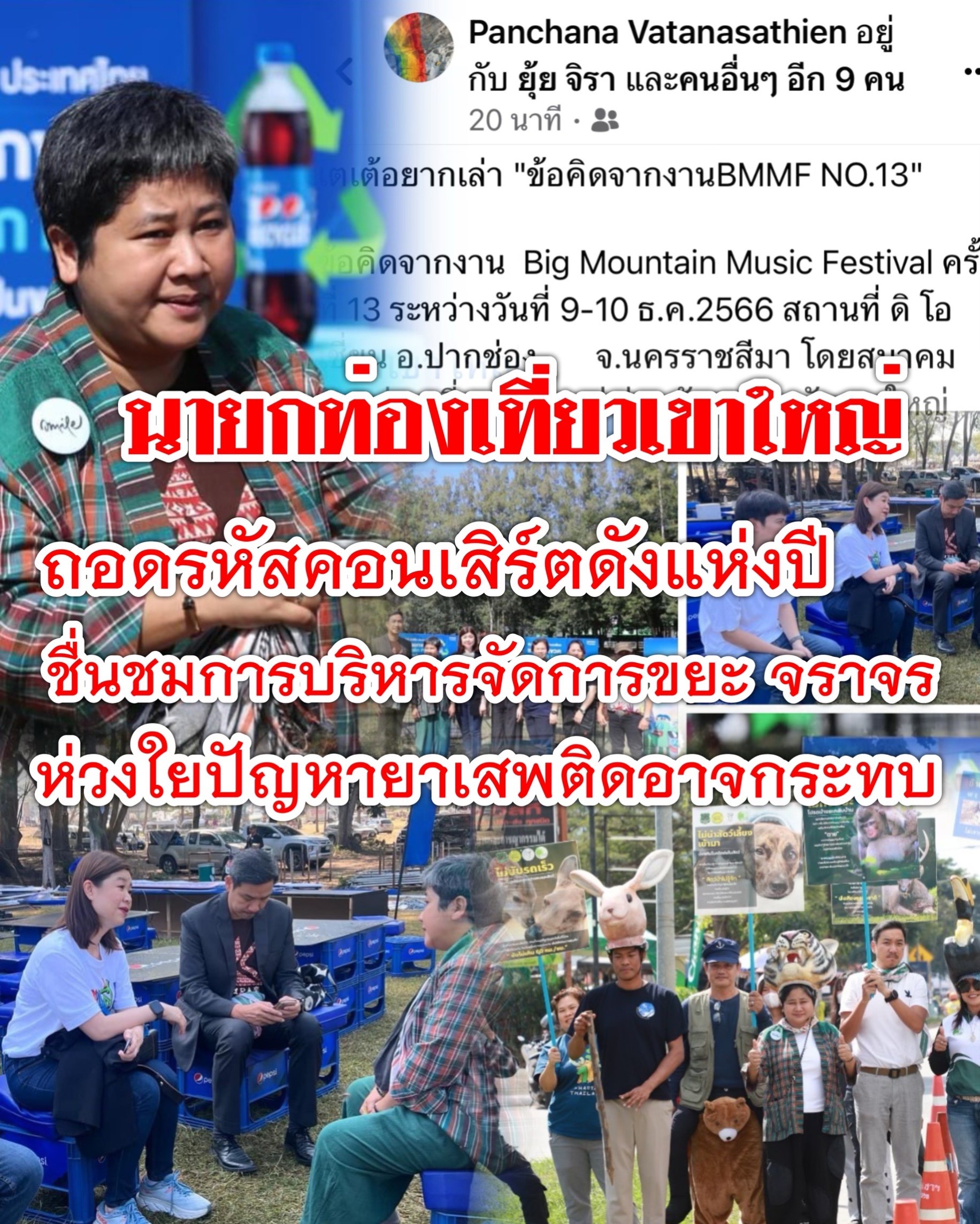 วันที่ 12 ธันวาคม 2566 เวลา 17.30 น. ผู้สื่อข่าวรายงานว่า เฟซบุ๊กที่ชื่อว่า พันชนะ วัฒนเสถียร นายกสมาคมการท่องเที่ยวเขาใหญ่ ได้เขียนข้อความเปิดผนึกถอดรหัสงานคอนเสิร์ตดังเขาใหญ่ บิ๊กเมาส์เทน 2023 ระบุว่า …..