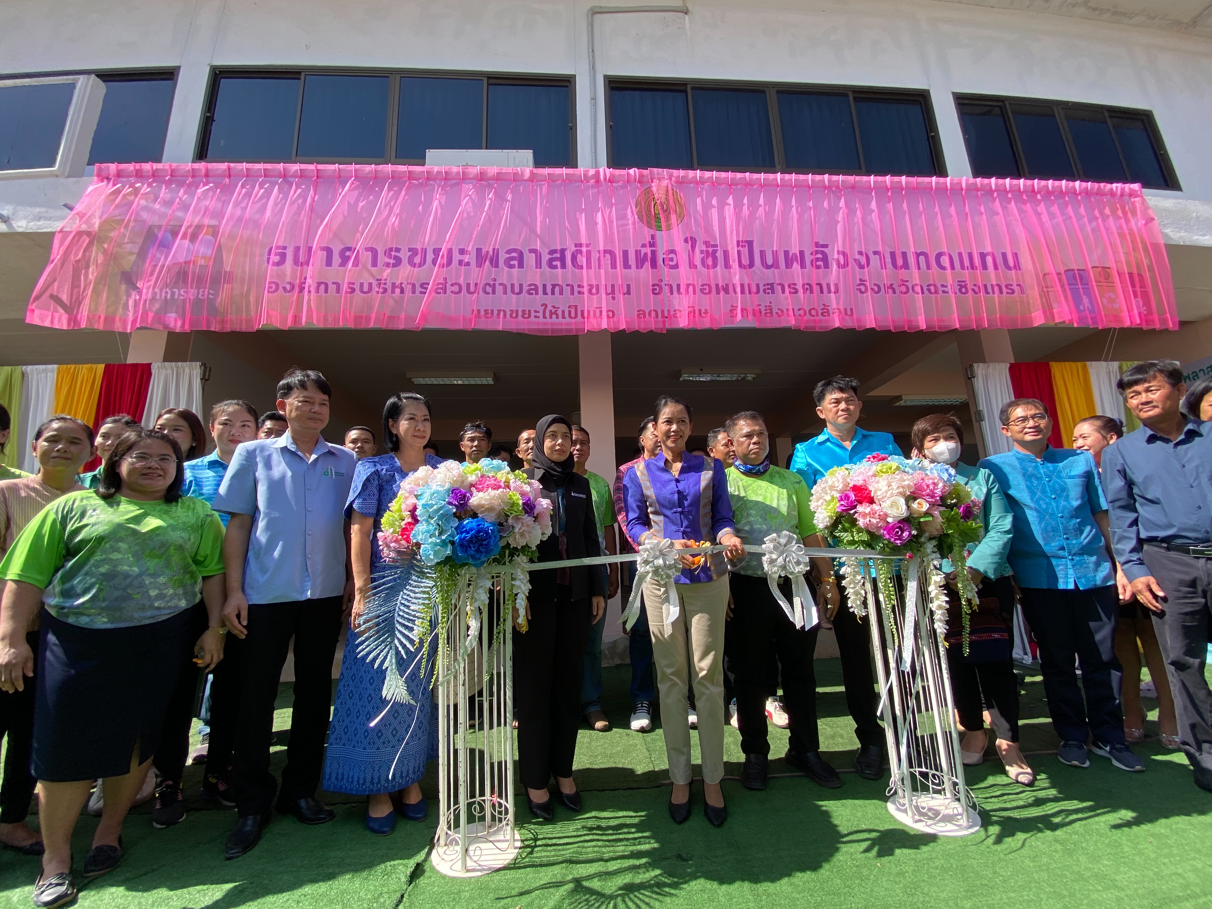 ด้านนายกฯ กัมปนาท ชูสุวรรณ นำกล่าวรายงาน มีนางปิณฑิรา เก่งการพานิช นายอำเภอพนมสารคาม ตัวแทนท่านผู้ว่าราชการจังหวัดฉะชิงเทรา เป็นประธาน บรรยากาศแสงแดดในฤดูหนาวที่ถึงกับต้องกางร่ม โดยมีการกล่าวขอบคุณที่ได้ให้เกียรติมาเป็นประธานในพิธีเปิดป้าย ธนาคารขยะพลาสติกเพื่อใช้เป็นพลังงานทดแทน ในวันนี้ที่ประเทศไทยมีขยะพลาสติกประมาณร้อยละ 12 ของปริมาณขยะที่เกิดขึ้นทั้งหมด หรือประมาณปีละ 2 ล้านตัน มีการนำกลับไปใช้ประโยชน์ประมาณปีละ 0.5 ล้านตัน (ร้อยละ 25) ส่วนที่เหลือ 1.5 ล้านตัน (ร้อยละ 75) ไม่สามารถนำไปใช้ประโยชน์ได้ ซึ่งพลาสติกส่วนใหญ่เป็นพลาสติกแบบใช้ครั้งเดียว อาทิ ถุงร้อน ถุงเย็น ถุงหูหิ้ว แก้วพลาสติก หลอดพลาสติก กล่องโฟมบรรจุอาหาร ไม่มีการนำกลับไปใช้ประโยชน์ใหม่