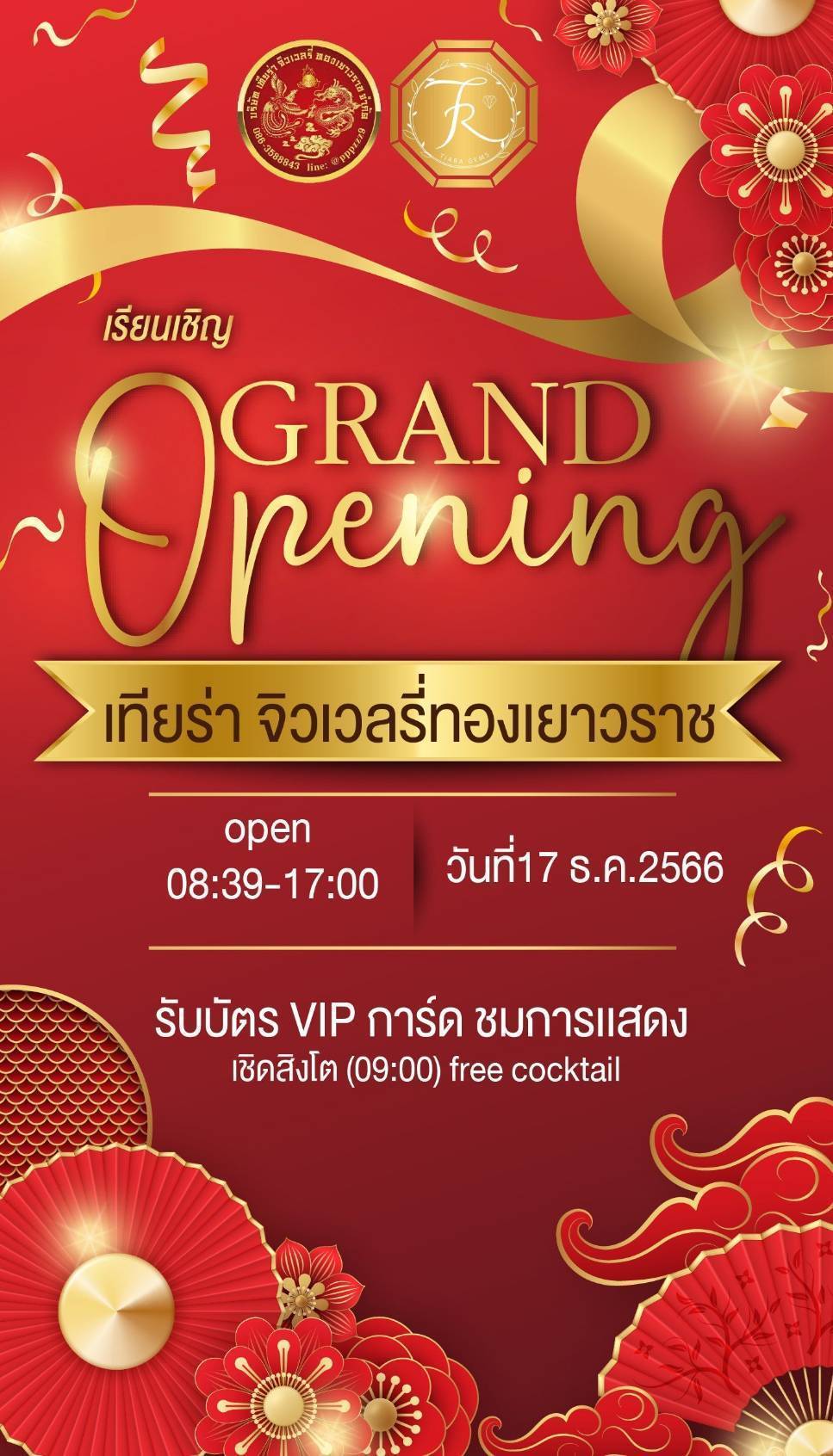 วันที่ 17 ธ.ค.66 คุณประสิทธิ์ โรจนพานุกร เป็นประธานตัดริบบิ้น เปิดห้างทองเทียร่า จิวเวลรี่ทองเยาวราช มีคุณวิโรจน์ โรจนภานุกร คุณอณัญญา คุณธีระบวร ร่วมแสดงความยินดีกับร้านทองโฉมใหม่ ทันสมัย บนถนนเทพคุณากร ต.หน้าเมือง อ.เมือง จ.ฉะเชิงเทรา