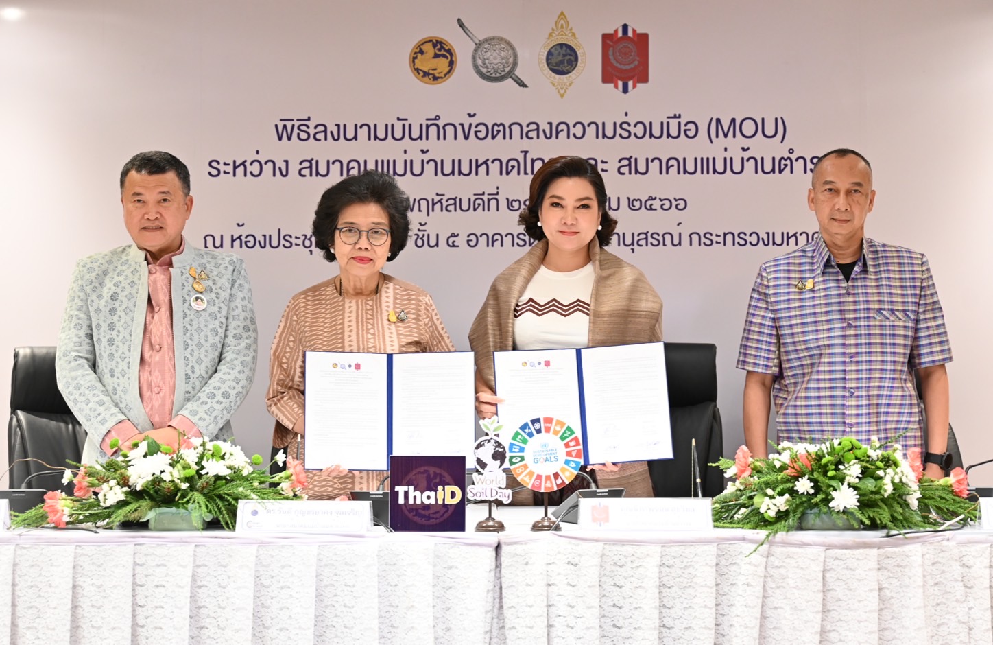 วันนี้ (21 ธ.ค.66) เวลา 12.30 น. คุณนิภาพรรณ สุขวิมล นายกสมาคมแม่บ้านตำรวจ และ ดร.วันดี กุญชรยาคง จุลเจริญ นายกสมาคมแม่บ้านมหาดไทย ร่วมลงนามบันทึกข้อตกลงความร่วมมือ (MOU) ระหว่างสมาคมแม่บ้านมหาดไทย กับสมาคมแม่บ้านตำรวจ ร่วมมือในหัวข้อ “รวมพลัง สร้างบ้าน อุ่นรัก ร่วมสวมผ้าไทย ใช้สินค้าไทย ใส่ใจสิ่งแวดล้อม น้อมนำความสุขอย่างยั่งยืน ร่วมคืนคนดีสู่สังคม” ณ ห้องประชุมราชบพิธ ชั้น 5 อาคารดำรงราชานุสรณ์ กระทรวงมหาดไทยโดยมี พล.ต.อ.ต่อศักดิ์ สุขวิมลและ นายสุทธิพงษ์ จุลเจริญ ปลัดกระทรวงมหาดไทย ร่วมเป็นสักขีพยาน