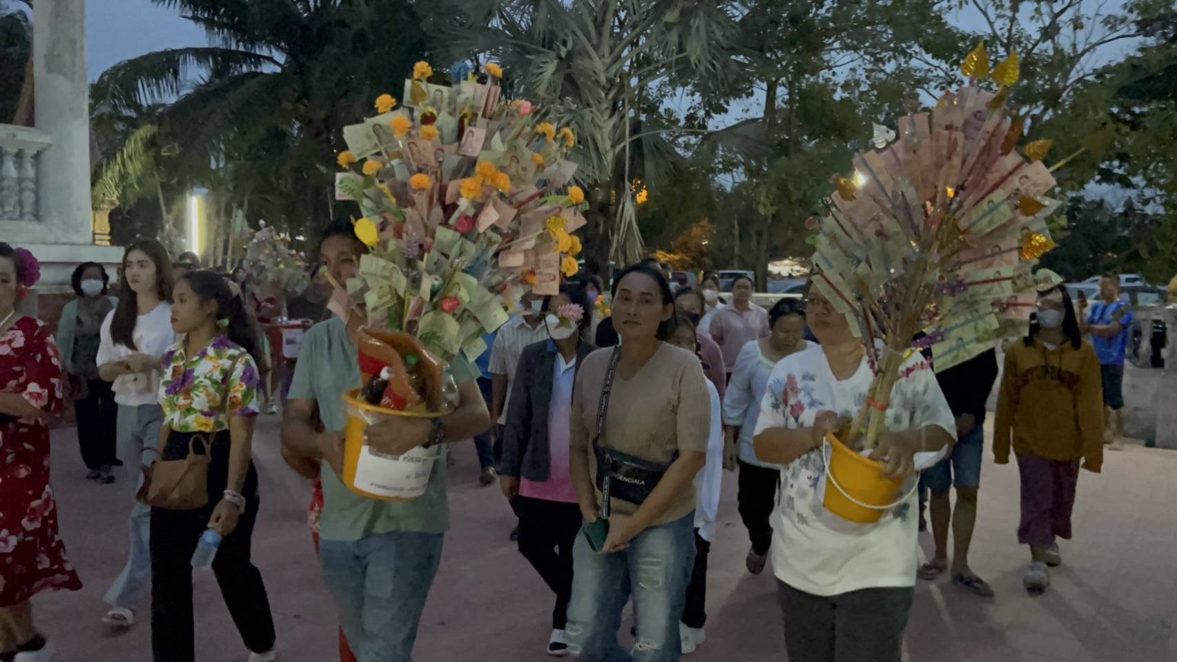 ที่ชุมชนวัดบ้านงิ้ว ต.หนองกะขะ อ.พานทอง จ.ชลบุรี นายบุญยัง ไพรวัลย์ นายก อบต.พานทอง-หนองกะขะ พร้อมด้วยชาวบ้านกว่า2พันคนร่วมกันแห่ขบวนผ้าป่ามืดจากหลายหมู่ของชุมชนและใกล้เคียงเพื่อมาวัดบ้านงิ้ว ต.หนองกะขะ อ.พานทอง จ.ชลบุรี ในขบวนมีชาวบ้านแต่งตัวกันแบบย้อนยุคและมีทั้งเงาะป่าเป็นสีสันสร้างความสนุกครึกครื้นตลอดเส้นทางจนกระทั้งขบวนมาถึงวัดและได้มีการแห่รอบโบสถ์ 3 รอบซึ่งบรรยากาศเป็นไปด้วยความสนุกสนานก่อนจะนำต้นผ้าป่าขึ้นมาช่วยกันนับยอดของผ้าป่าจากยอดที่ได้เป็นเงินจำนวน 563,100 บาท ทำเอาชาวบ้านและคอหวยที่มาร่วมงานต่างพากันรอคอยช่วงสำคัญเพื่อจะได้เอายอดผ้าป่าไปเสี่ยงโชคในงวดวันที่ 1 ม.ค.2567 นี้ด้วย