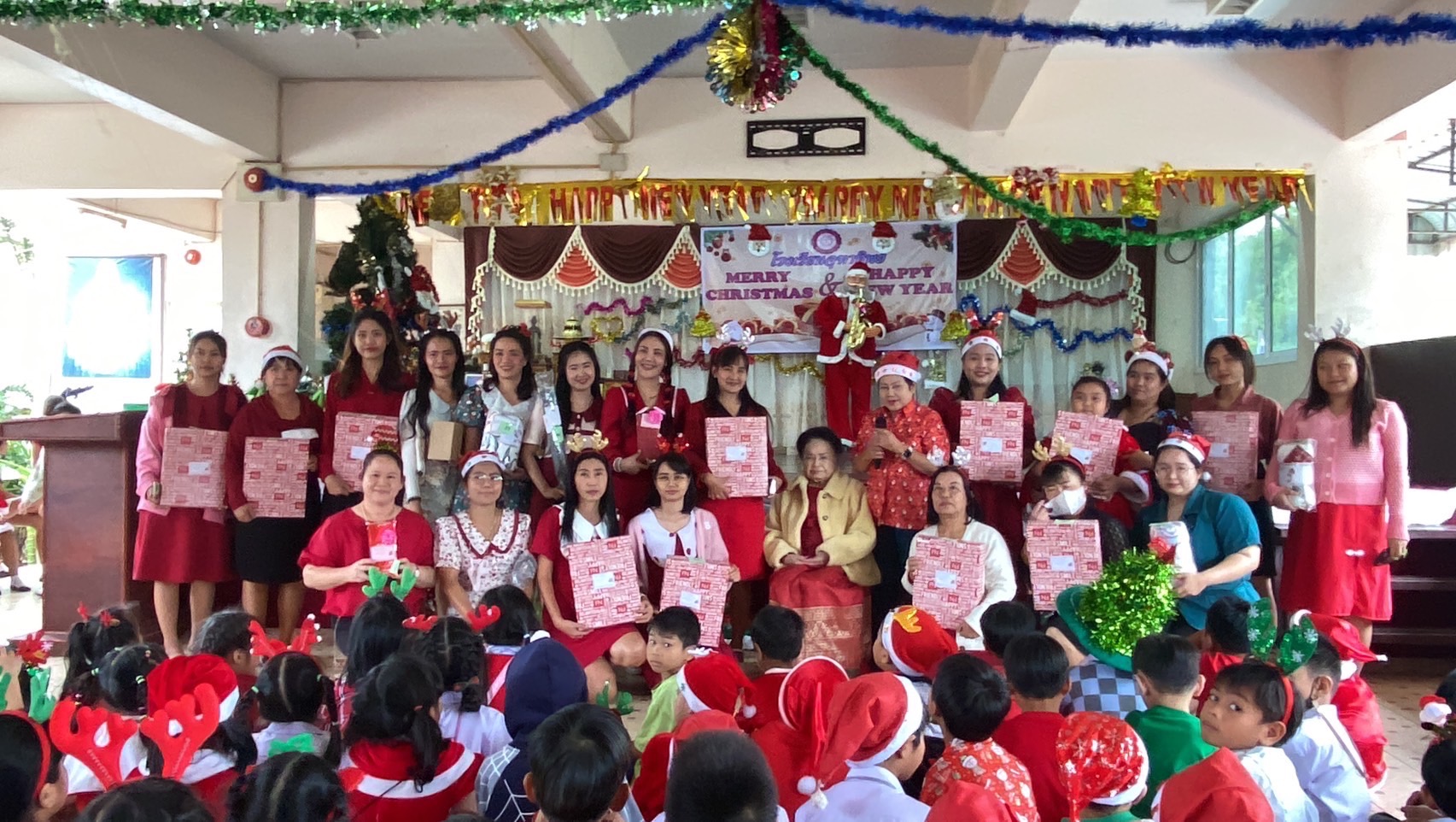 วันจันทร์ที่ 25 ธันวาคม พ.ศ. 2566 บรรยากาศที่อาคารหอประชุมโรงเรียนจุฑาทิพย์ อ.พนมสารคาม จ.ฉะเชิงเทรา กับอุณหภูมิลมหนาวที่ 18 องศา ดูช่างเป็นใจในการจัดกิจกรรมวันคริสต์มาส ดร.จุฑาทิพย์ พาลพ่าย ผู้อำนวยการโรงเรียนจุฑาทิพย์ นำคณะครูร่วมเนรมิตสถานที่ให้เป็นเสมือนภาพในเทพนิยาย คณะครู หนูๆ น้องๆ นักเรียนพากันแต่งกายเป็นซานตาคลอส แซนตี้ แดงฉ่ำไปทั้งหอประชุม มี การจัดกิจกรรมมากมาย การแสดงประกอบเพลงคริสต์มาส เกมส์ถามตอบภาษาอังกฤษ เพราะถือว่าวันนี้เป็นวันภาษาอังกฤษไปในตัว