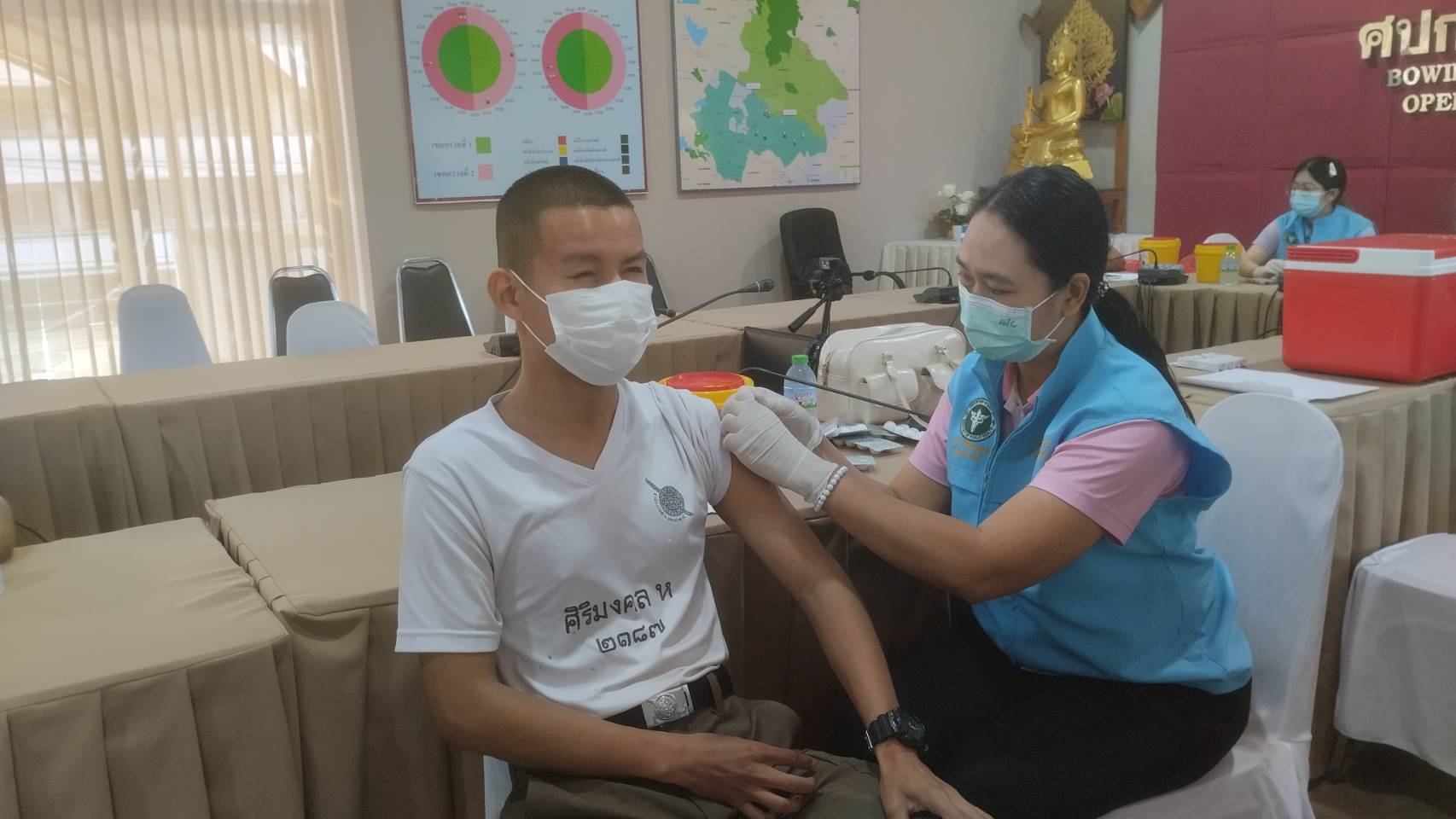 เมื่อเวลา09.30น.(26ธ.ค.2566) ที่ห้องประชุมชั้นสองภายใน สภ.บ่อวิน พ.ต.อ.เอนก สระทองอยู่ ผกก.สภ.บ่อวิน นำข้าราชการตำรวจในสังกัดและประชาชนทั่วไปที่มาติดต่อราชการ ฉีดวัคซีนป้องกันไข้หวัดใหญ่ฟรี โดยทั้งนี้ได้รับร่วมมือจากสำนักงานสาธารณสุขอำเภอศรีราชา นำเจ้าหน้าที่แพทย์ประจำสำนักงานสาธารณสุขอำเภอศรีราชามาออกหน่วยบริการ ฉีดวัคซีนไข้หวัดใหญ่ฟรีให้กับข้าราชการตำรวจและประชาชนที่มาใช้บริการ