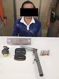 วันที่ 26 ธ.ค. 66 ผู้สื่อข่าวรายงานว่า พ.ต.อ.จุมพฏ มัณยาภา ผกก.สภ.สนามชัยเขต จ.ฉะเชิงเทรา นำกำลังตำรวจชุดสืบสวน และตำรวจสายตรวจประจำตำบลบ้านนายาว ร่วมกับ เจ้าหน้าที่ตำรวจ EOD กก.2บก.กฝ.บช.ตชด. จับกุมผู้ต้องหาชื่อ นายเจ๋ง (นามสมมุติ) พร้อมตรวจยึดของกลาง ระเบิดลูกเกลี้ยง M67 จำนวน 1 ลูก อาวุธปืนลูกซอง 1 กระบอก กระสุนเบอร์ 12 จำนวน 4 นัด กระสุนปืนขนาด .22 จำนวน 46 นัด นำไปตรวจปัสสาวะพบสารเสพติด